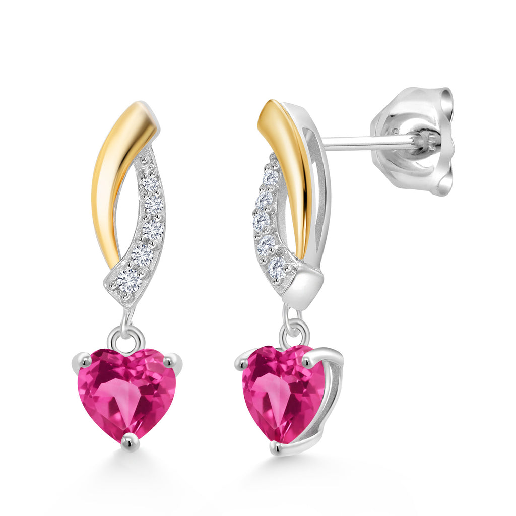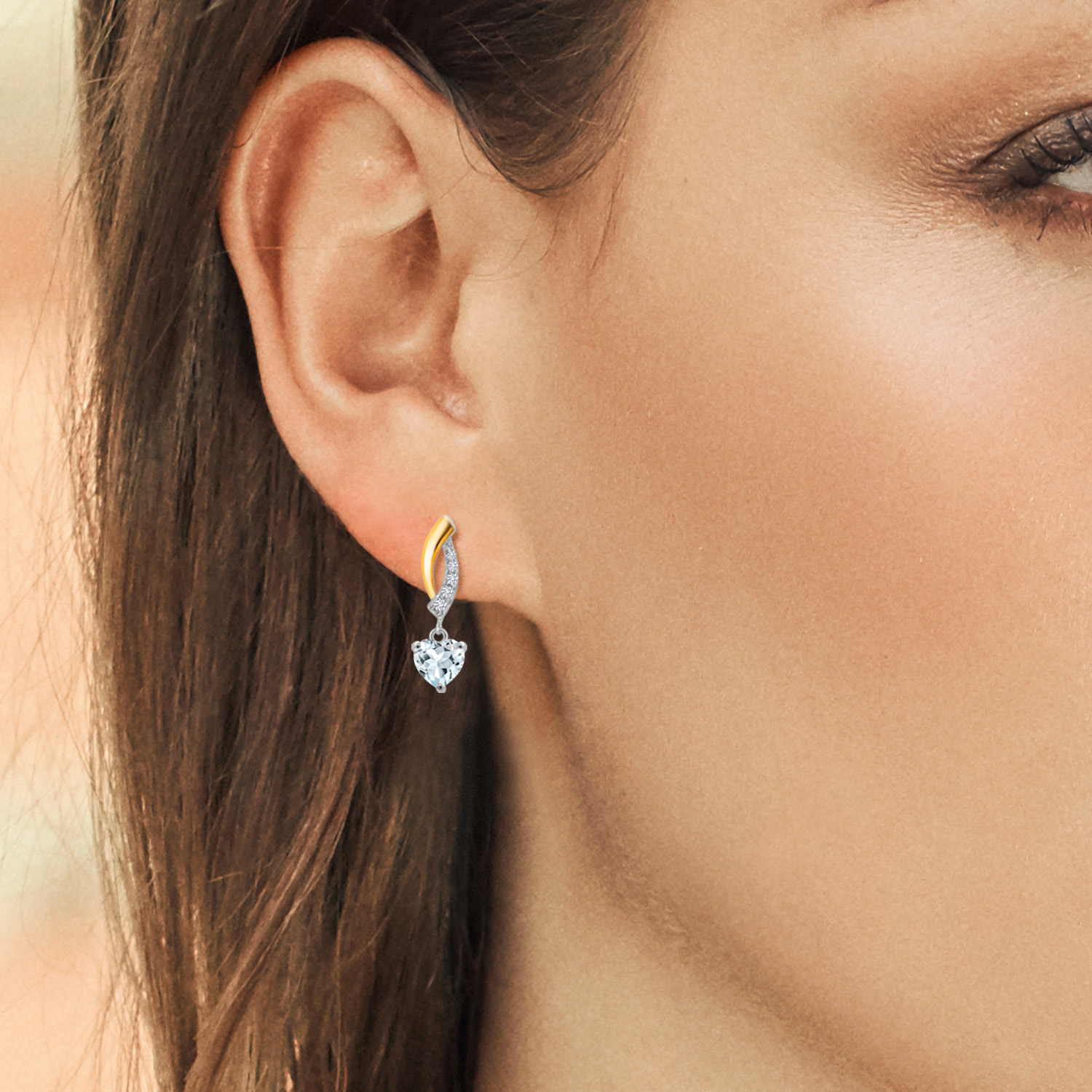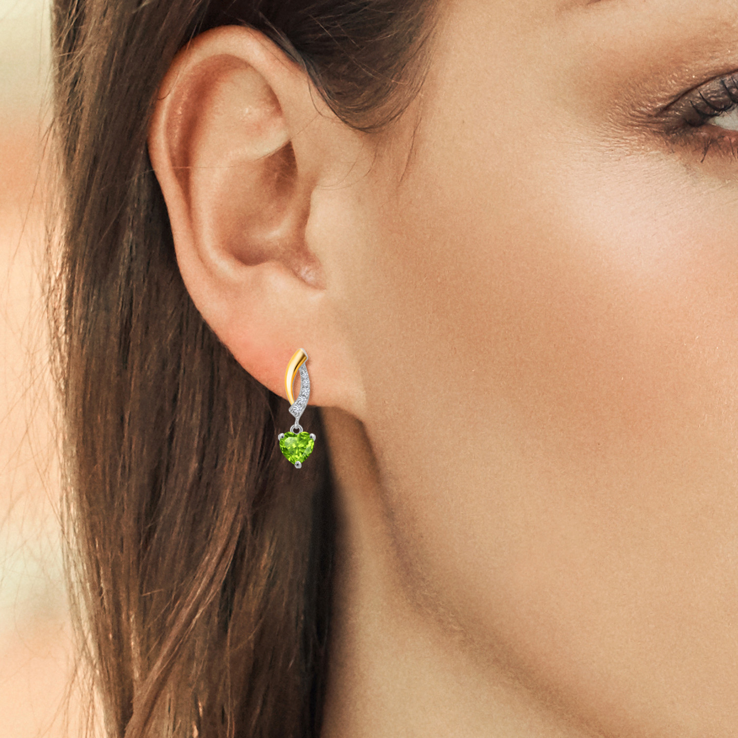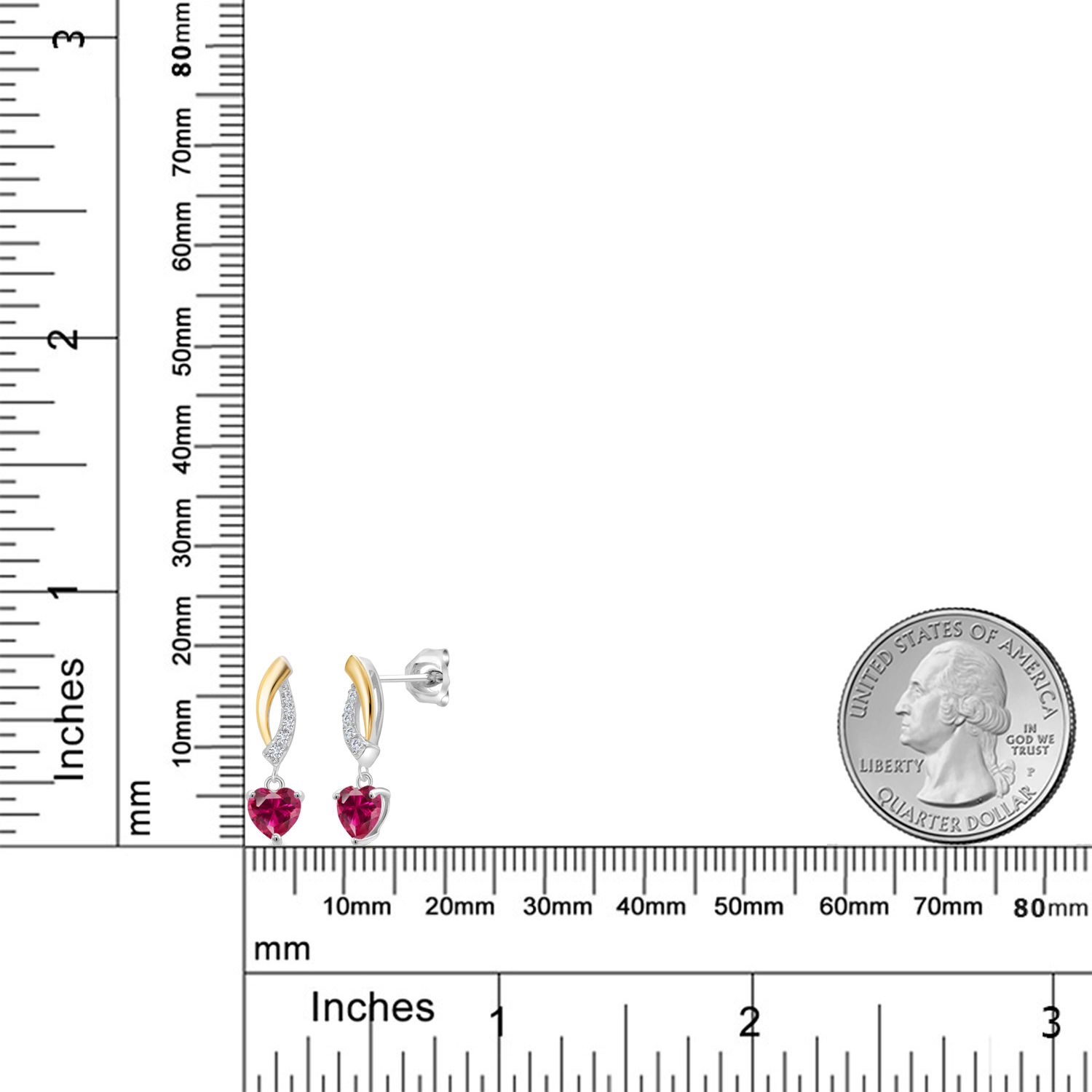 5MM Heart Shape Gemstone Birthstone and Lab Grown Diamond Dangle Earrings for Women | 925 Silver and 10K Yellow Gold | Fine Jewelry Gifts for Her Mom Women Wife