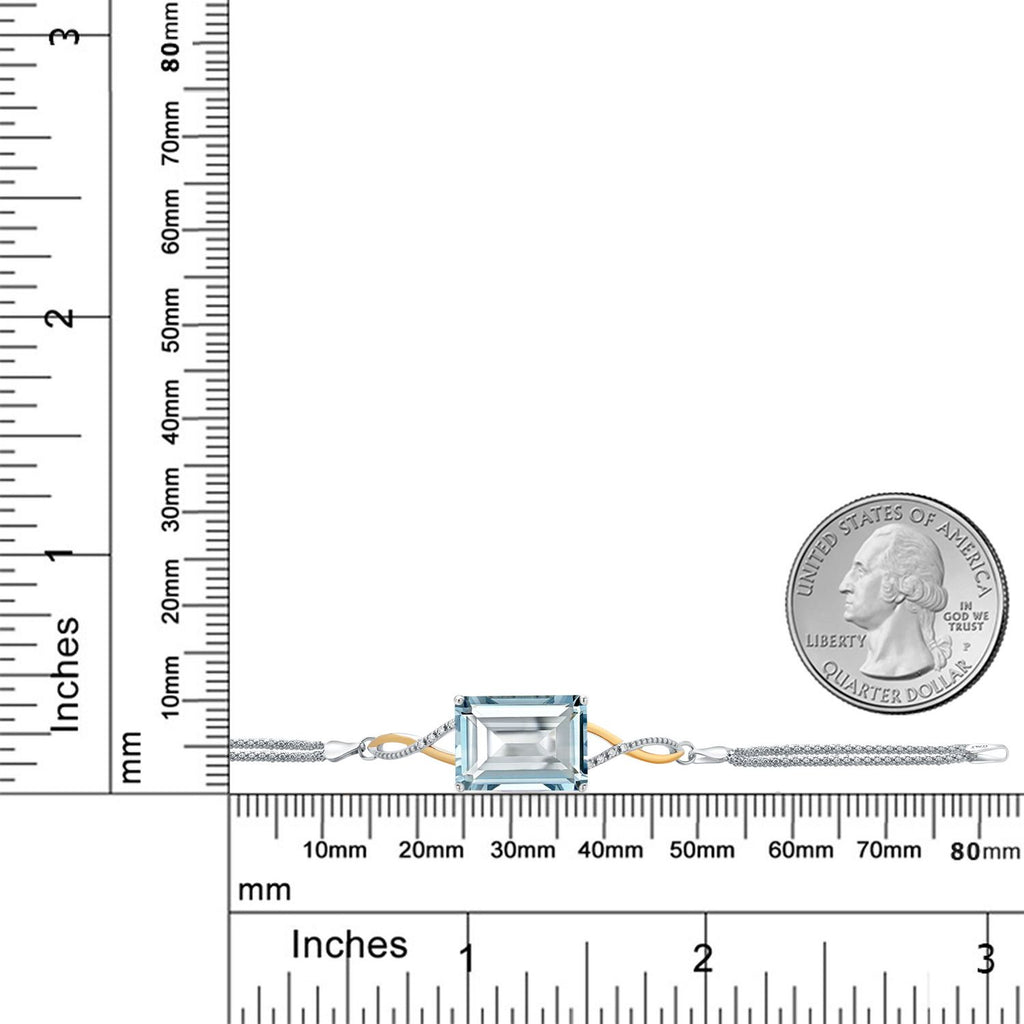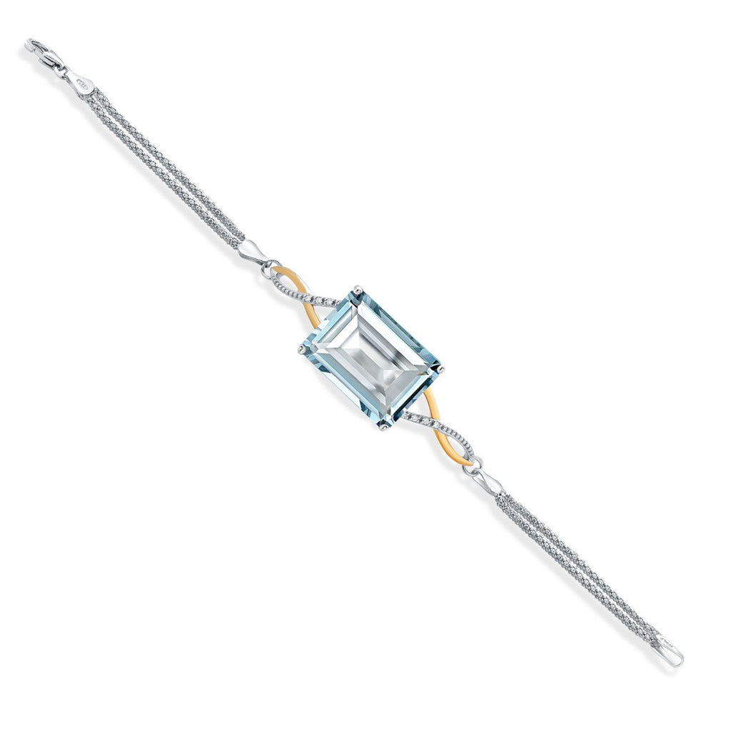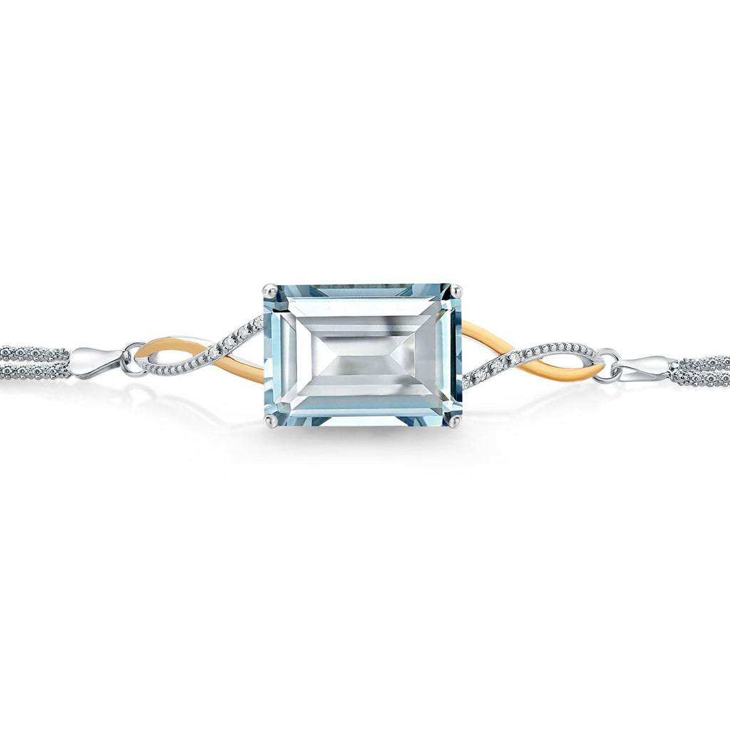 925 Silver and 10K Yellow Gold Sky Blue Simulated Aquamarine and Lab Grown Diamond Bracelet For Women | 15.86 Cttw | Gemstone March Birthstone | Octagon 18X13MM | 6.5/7/7.5 Inch | Made In Italy