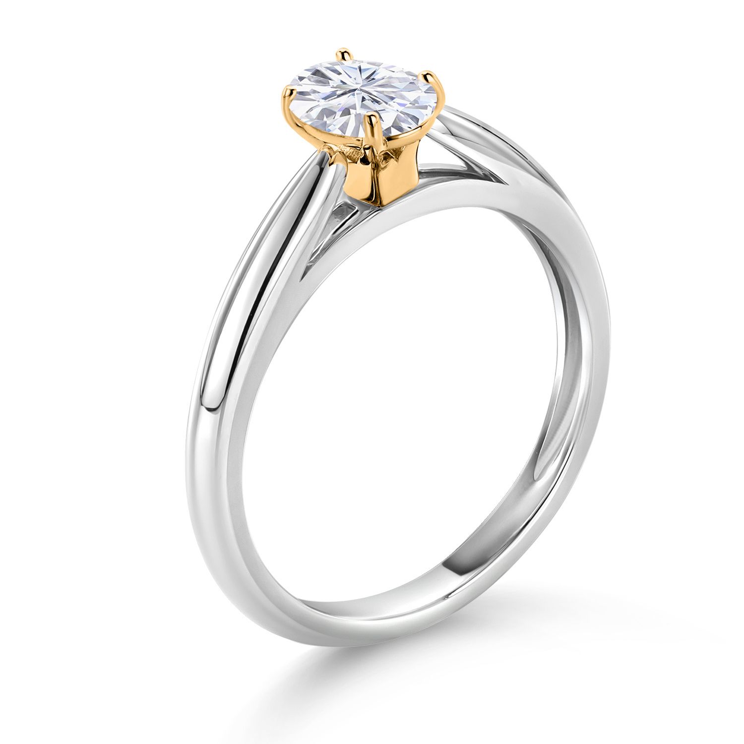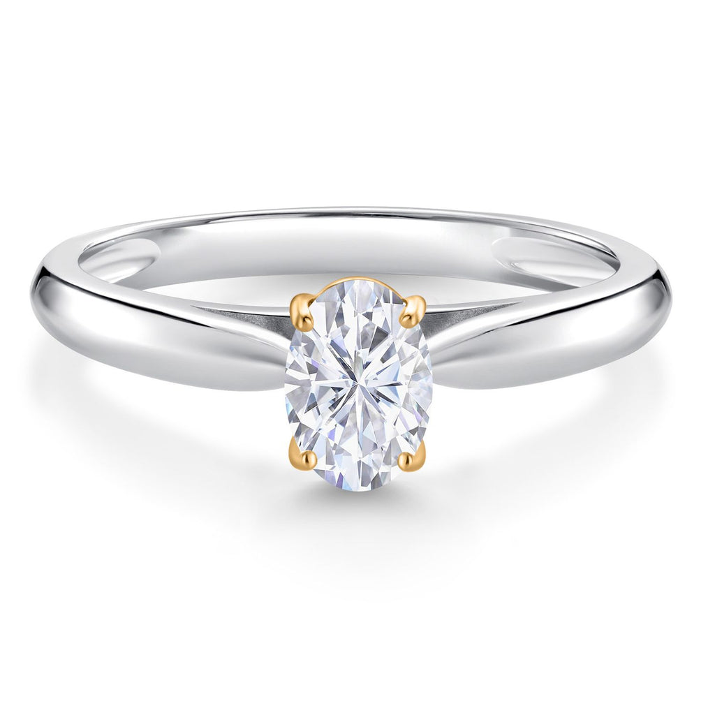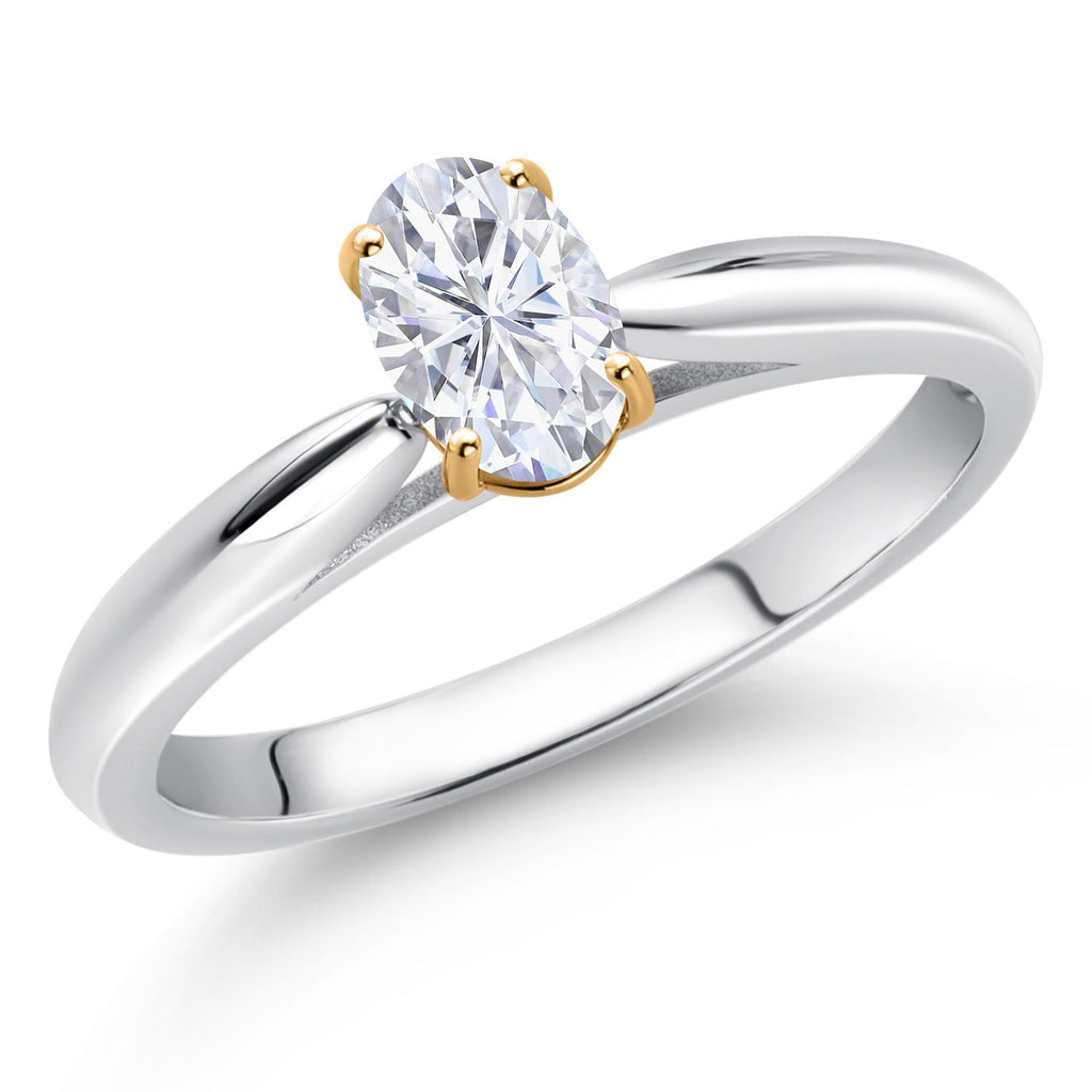 925 Silver and 10K Yellow Gold Solitaire Engagement Ring Oval Moissanite (0.50 Cttw)