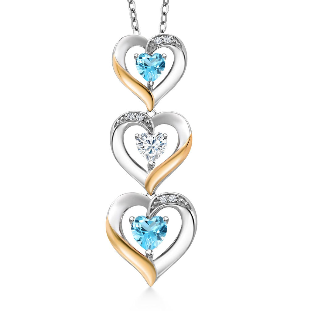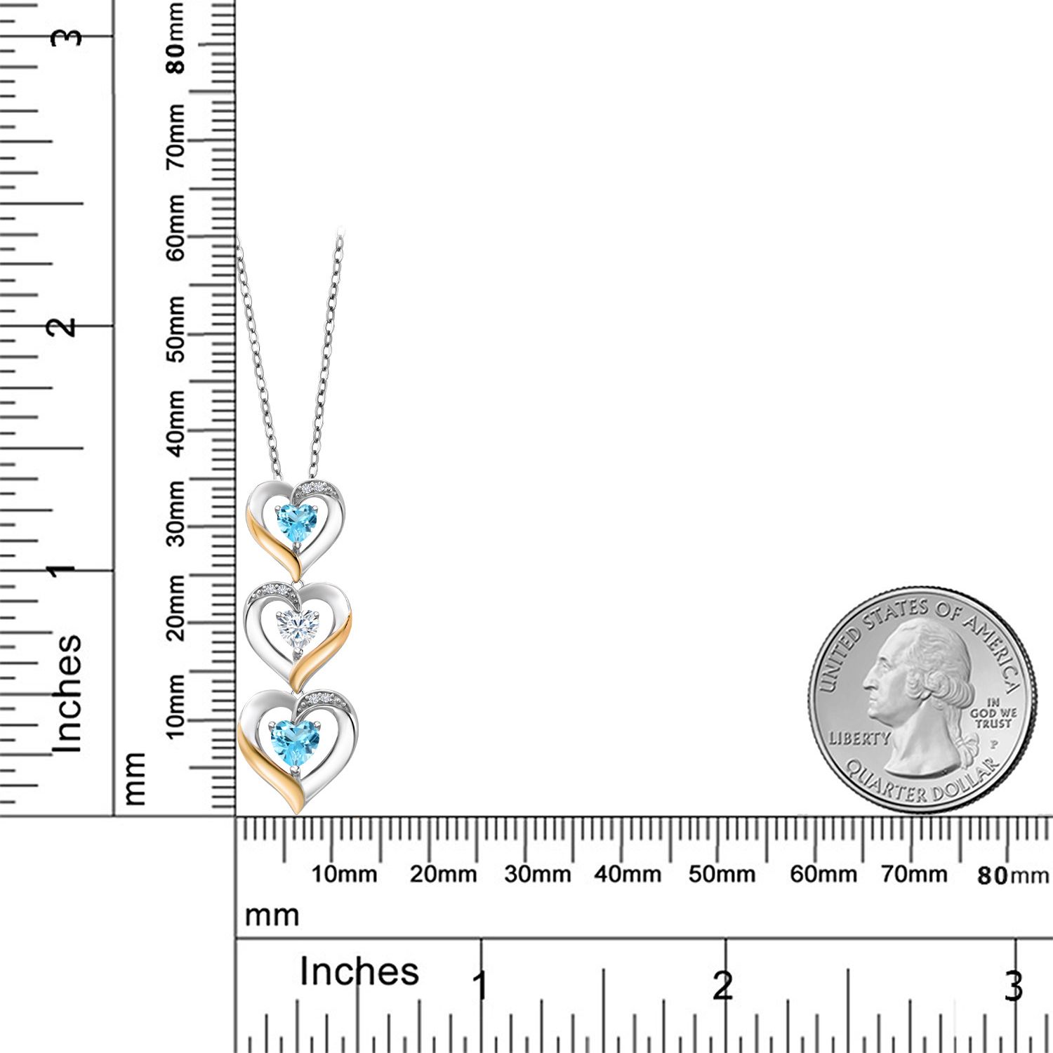 925 Silver and 10K Yellow Gold Triple 3-Heart Pendant Necklace for Women | 5MM Heart Shape Gemstone Birthstone with White Moissanite and Lab Grown Diamond Accents | Includes 18 Inch Chain
