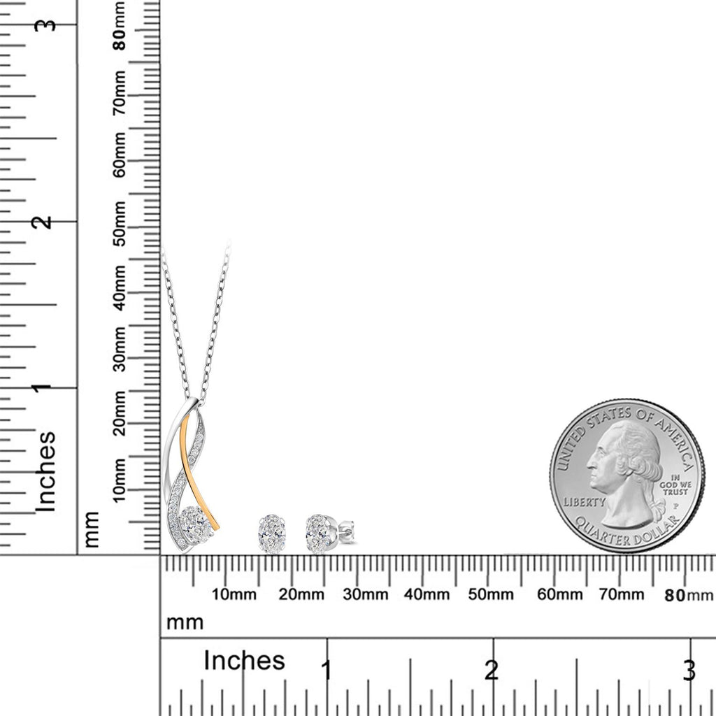 925 Silver and 10K Yellow Gold White Lab Grown Diamond Pendant Earrings Jewelry Set For Women | 1.28 Cttw | Gemstone April Birthstone | Oval 6X4MM | with 18 Inch Chain