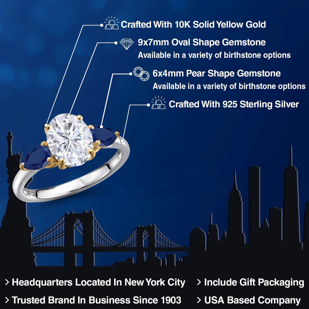 2-Tone Engagement Ring For Women | 925 Silver and 10K Yellow Gold | Gemstone Birthstone | 6MM Cushion Cut | Wedding Anniversary Promise Ring | Available In Size 5, 6, 7, 8, 9