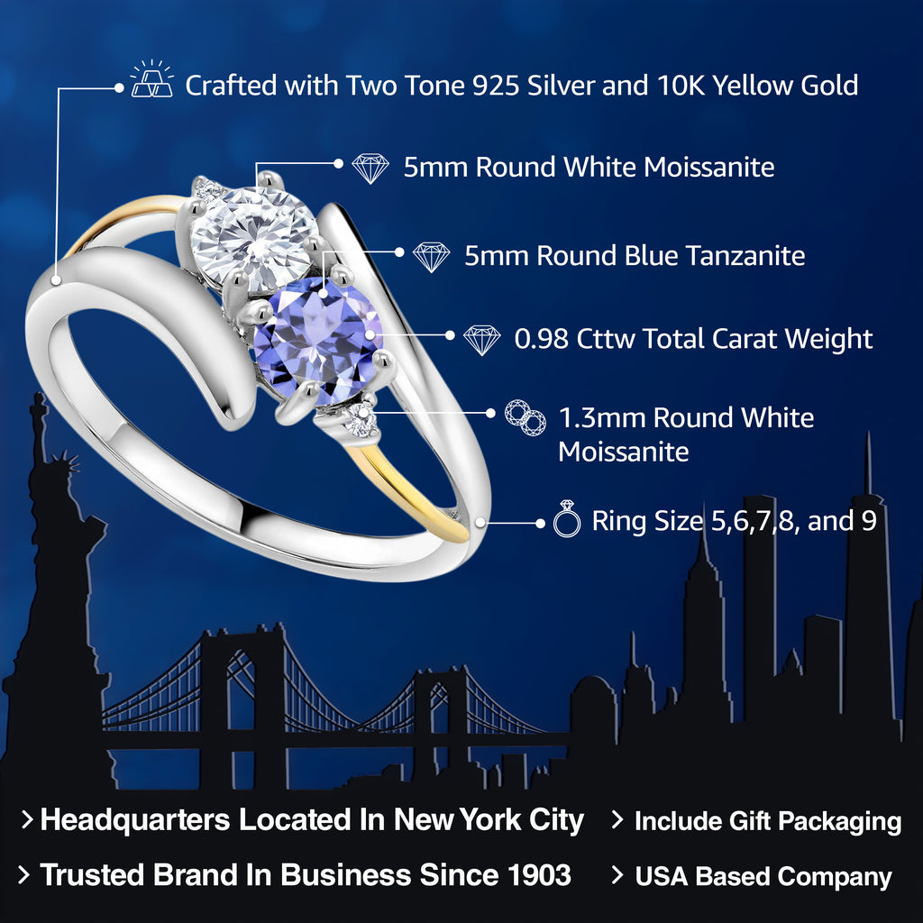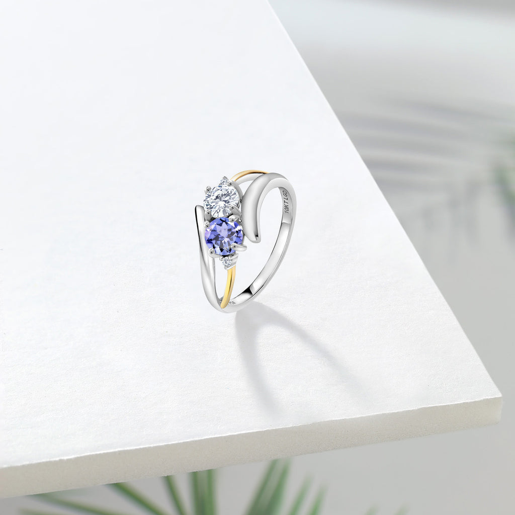 0.98 CARAT TOTAL WEIGHT: With a total carat weight of 0.98, this ring showcases a beautiful display of tanzanite and white moissanite, creating a dazzling and eye-catching piece.