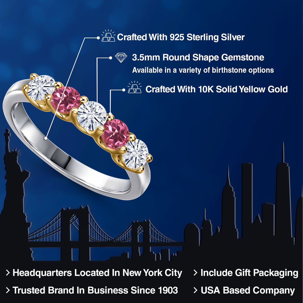 2-Tone Engagement Ring For Women | 925 Silver and 10K Yellow Gold | Gemstone Birthstone | 6MM Cushion Cut | Wedding Anniversary Promise Ring | Available In Size 5, 6, 7, 8, 9
