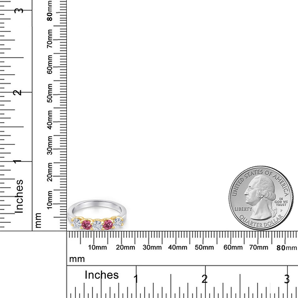 MEASUREMENTS: 3.5x3.5mm Round Near Colorless (GH) Moissanite, 3.5x3.5mm Round Heat-Treated Pink Tourmaline. Total Carat Weight is 0.78 cttw