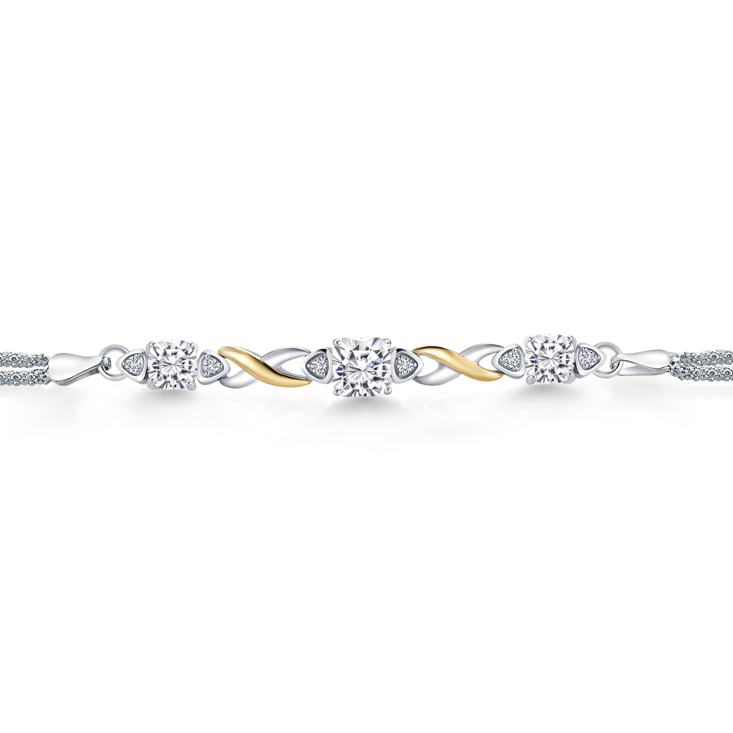 925 Silver and 10K Yellow Gold White Moissanite and White Lab Grown Diamond Bracelet For Women (2.45 Cttw, Gemstone, Cushion 6MM , 6.5/7/7.5 Inch, Made in Italy)
