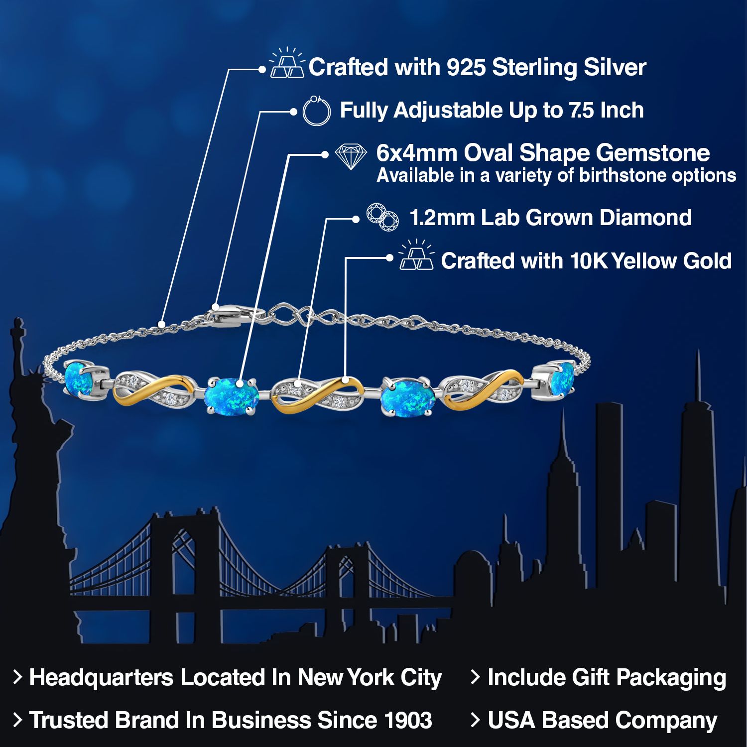 ACCENT LAB GROWN DIAMONDS: The bracelet is adorned with round 1.2MM lab grown diamonds, renowned for their exceptional performance and brilliance. These diamonds serve as an exquisite contrast to the main gemstone, enhancing the overall aesthetic appeal of the bracelet. The combination of fine craftsmanship and elegant style exudes a sense of sophistication and luxury.