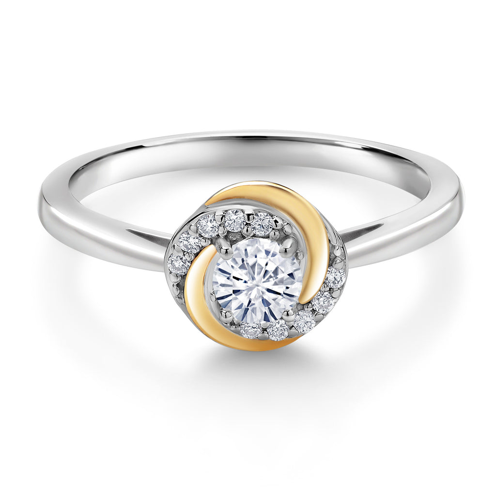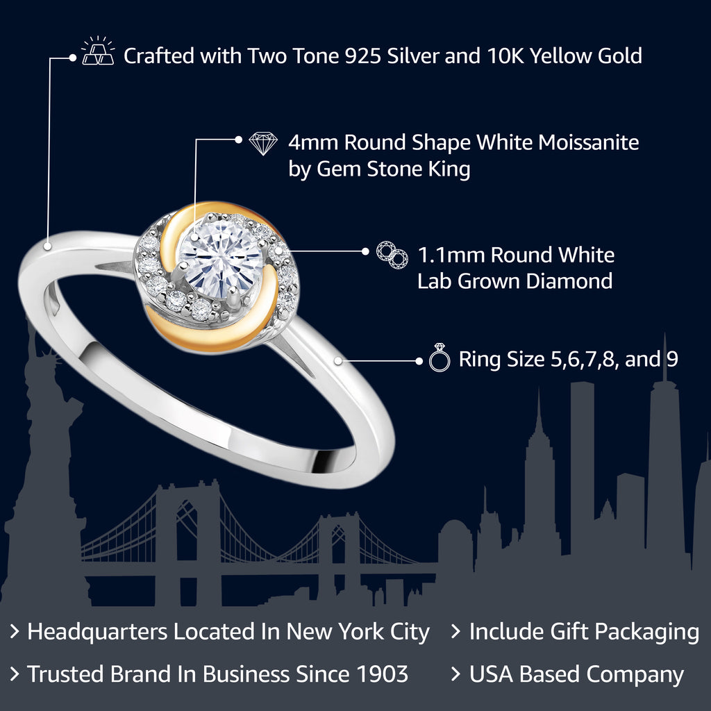 White Moissanite and White Lab Grown Diamond Solitaire Engagement Ring For Women | 925 Silver and 10K Yellow Gold | 0.30 Cttw | Round 4MM | Wedding Anniversary Promise Ring