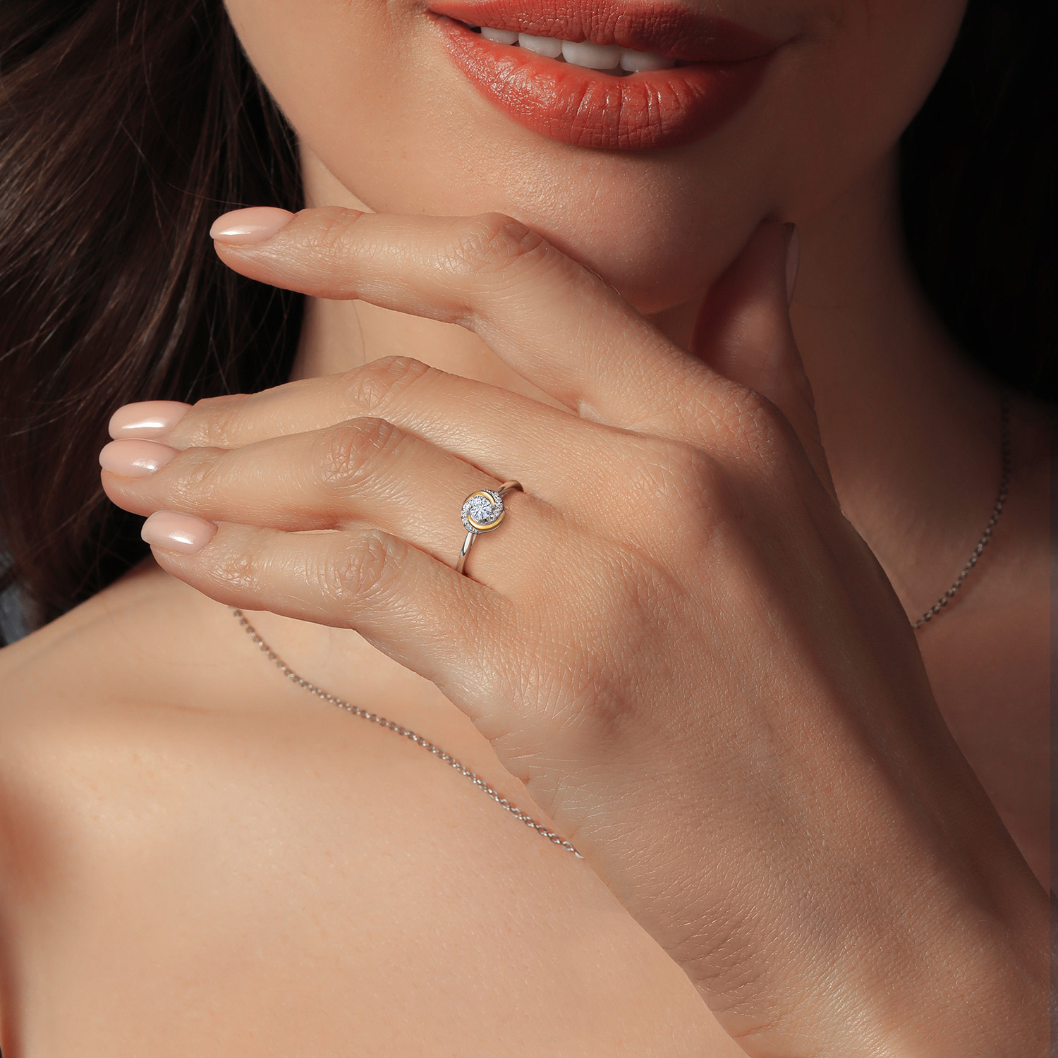 EXQUISITE CRAFTSMANSHIP: This stunning engagement ring features a unique combination of 925 sterling silver and 10k yellow gold, expertly crafted for a two-tone aesthetic that is both elegant and timeless.