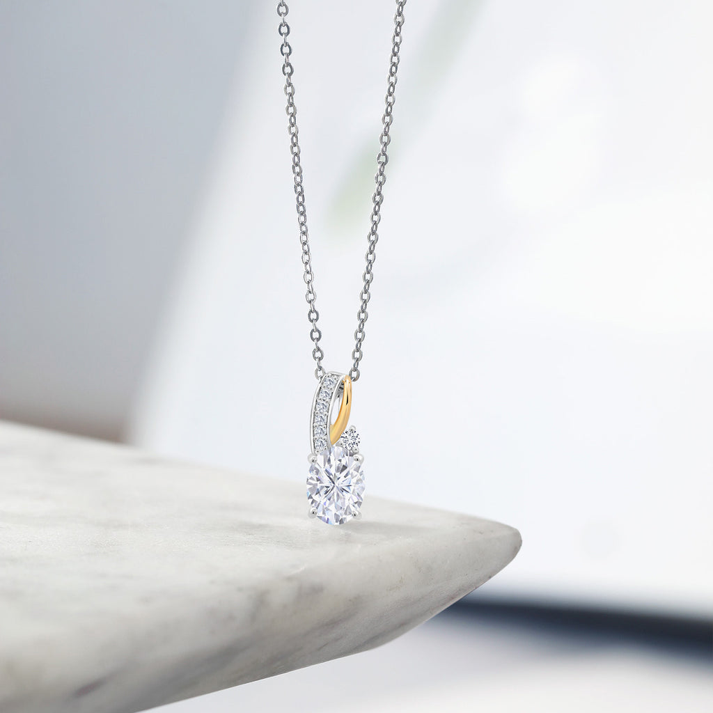 CRAFTED FROM 925 SILVER AND 10K YELLOW GOLD: Combining durable 925 Sterling Silver with luxurious 10K Yellow Gold, this necklace offers a timeless two-tone design that enhances the brilliance of the Moissanite, perfect for both formal and everyday wear.