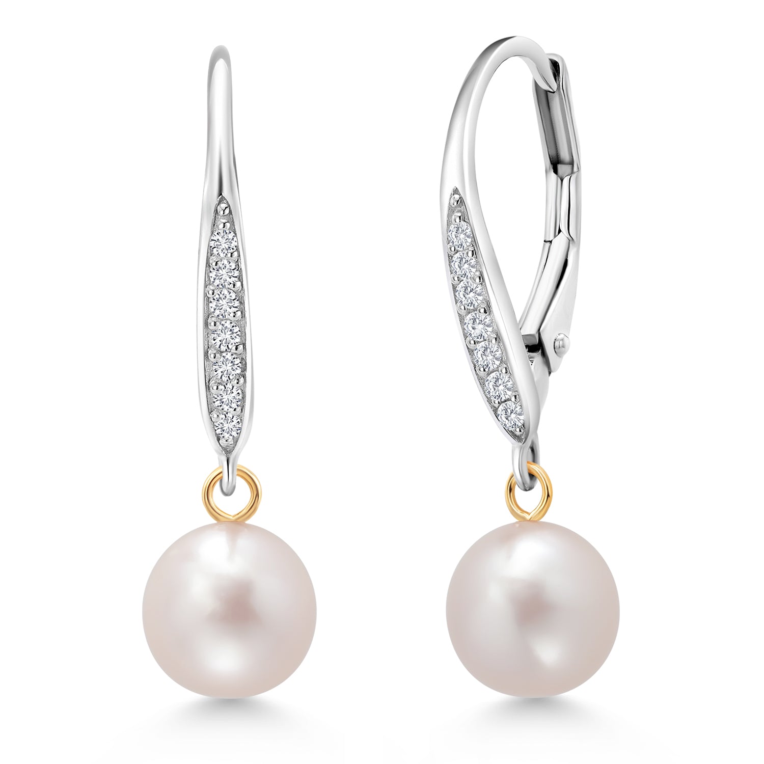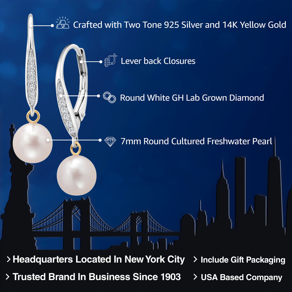 HIGH-QUALITY 925 SILVER AND 14K YELLOW GOLD: Crafted from premium 925 Silver and 14K Yellow Gold, these earrings offer a luxurious and durable setting for the pearls and diamonds. The gold adds a warm and radiant tone to the design.