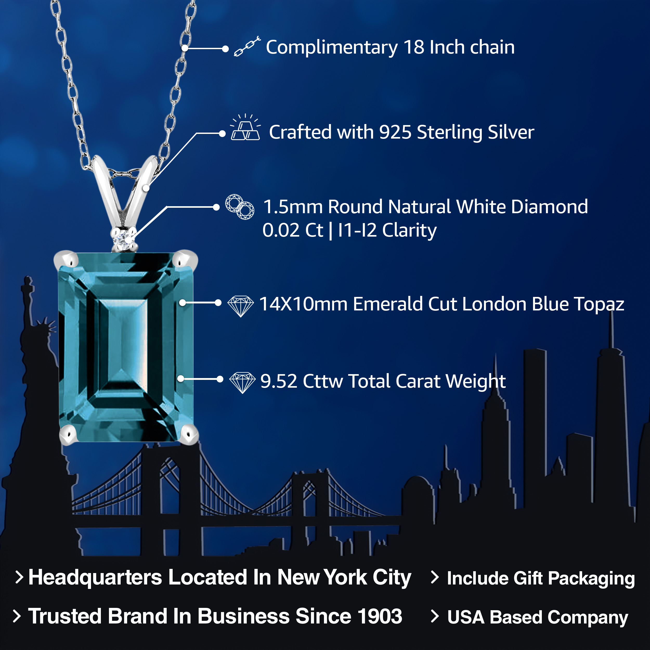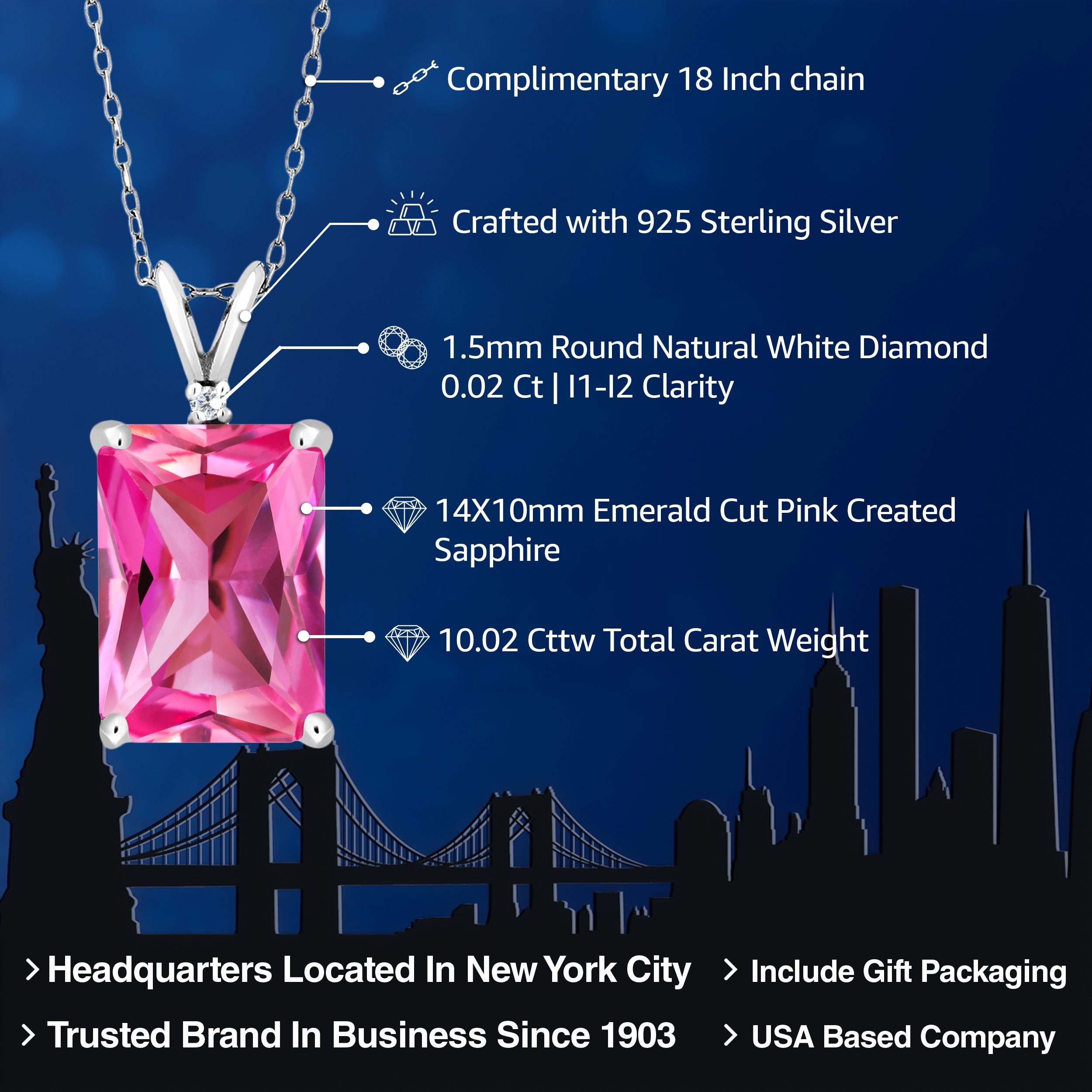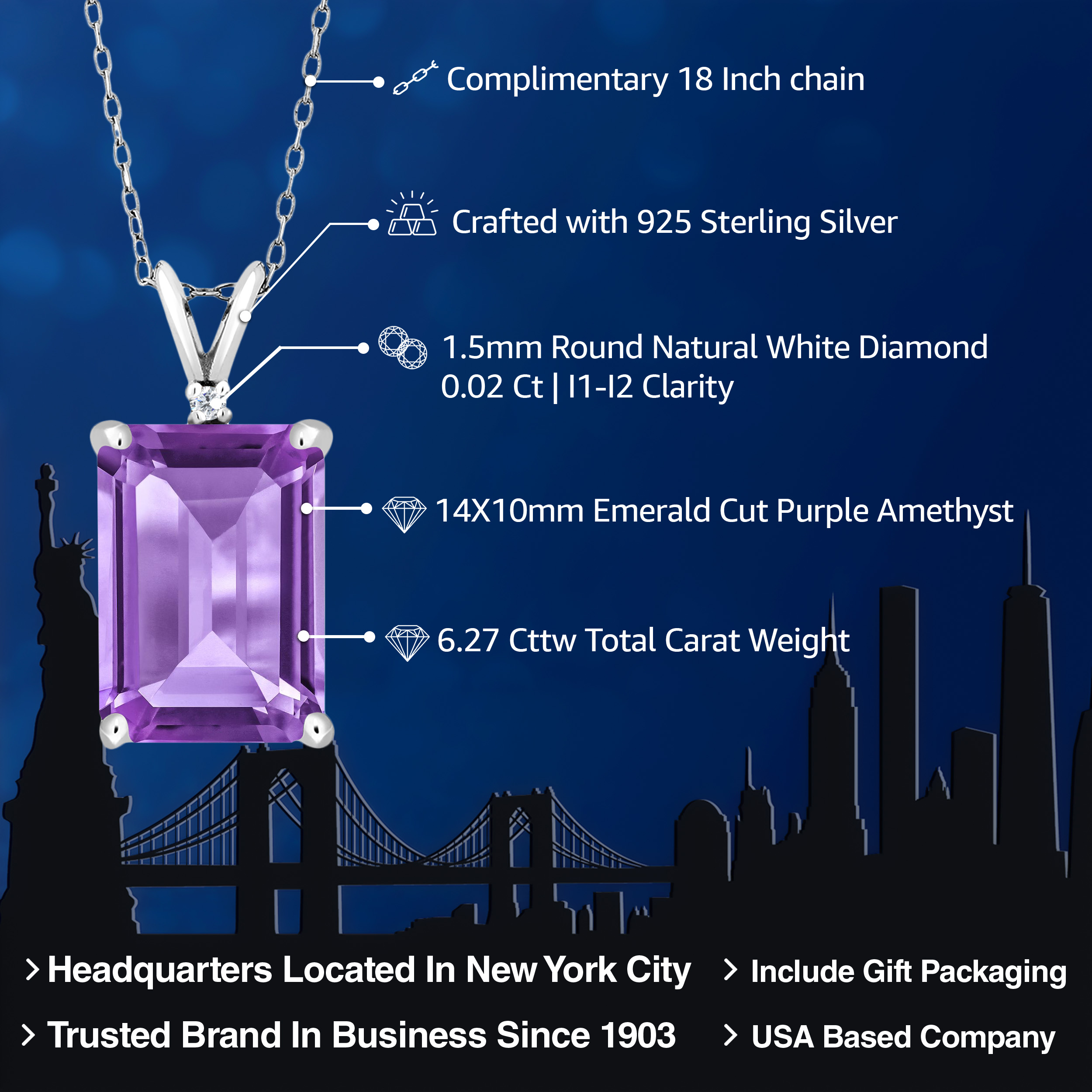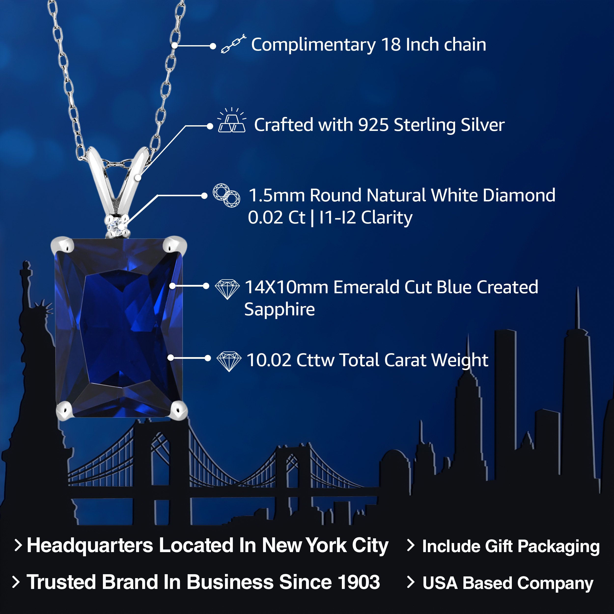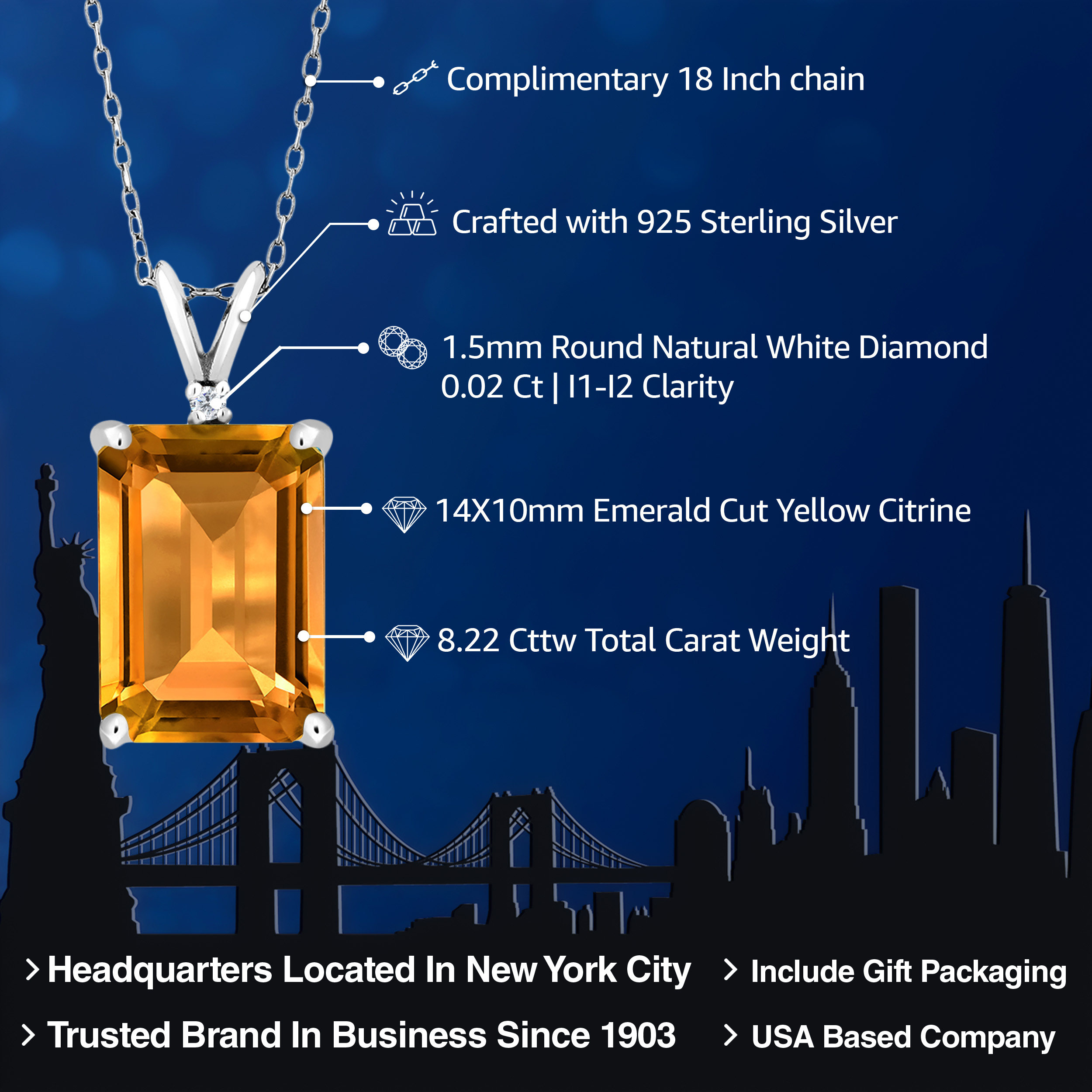 5-10 Cttw Gemstone Birthstone and Round Accent White Diamond Necklace | 14X10MM Emerald Cut | 925 Sterling Silver | Pendant Necklace for Women | With 18 Inch Silver Chain