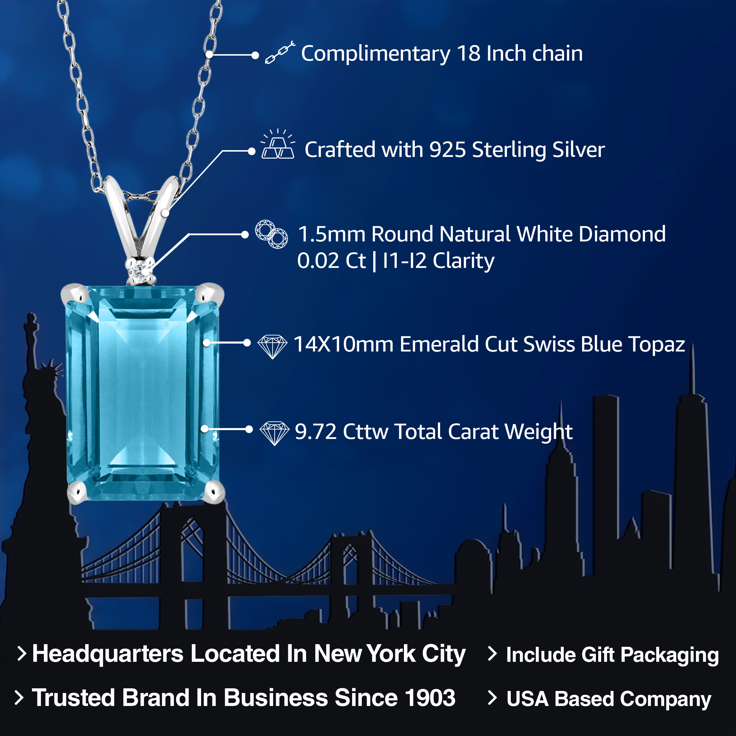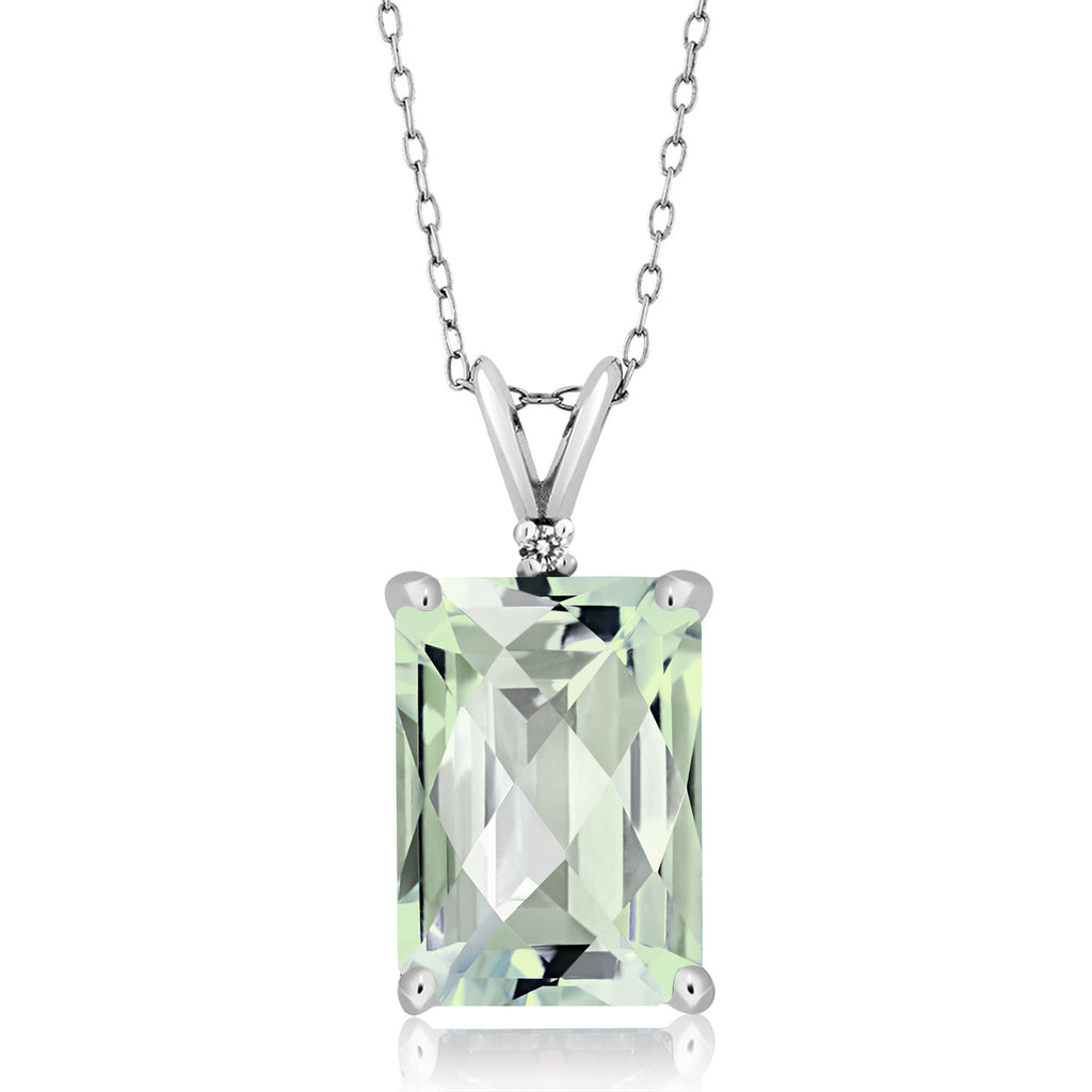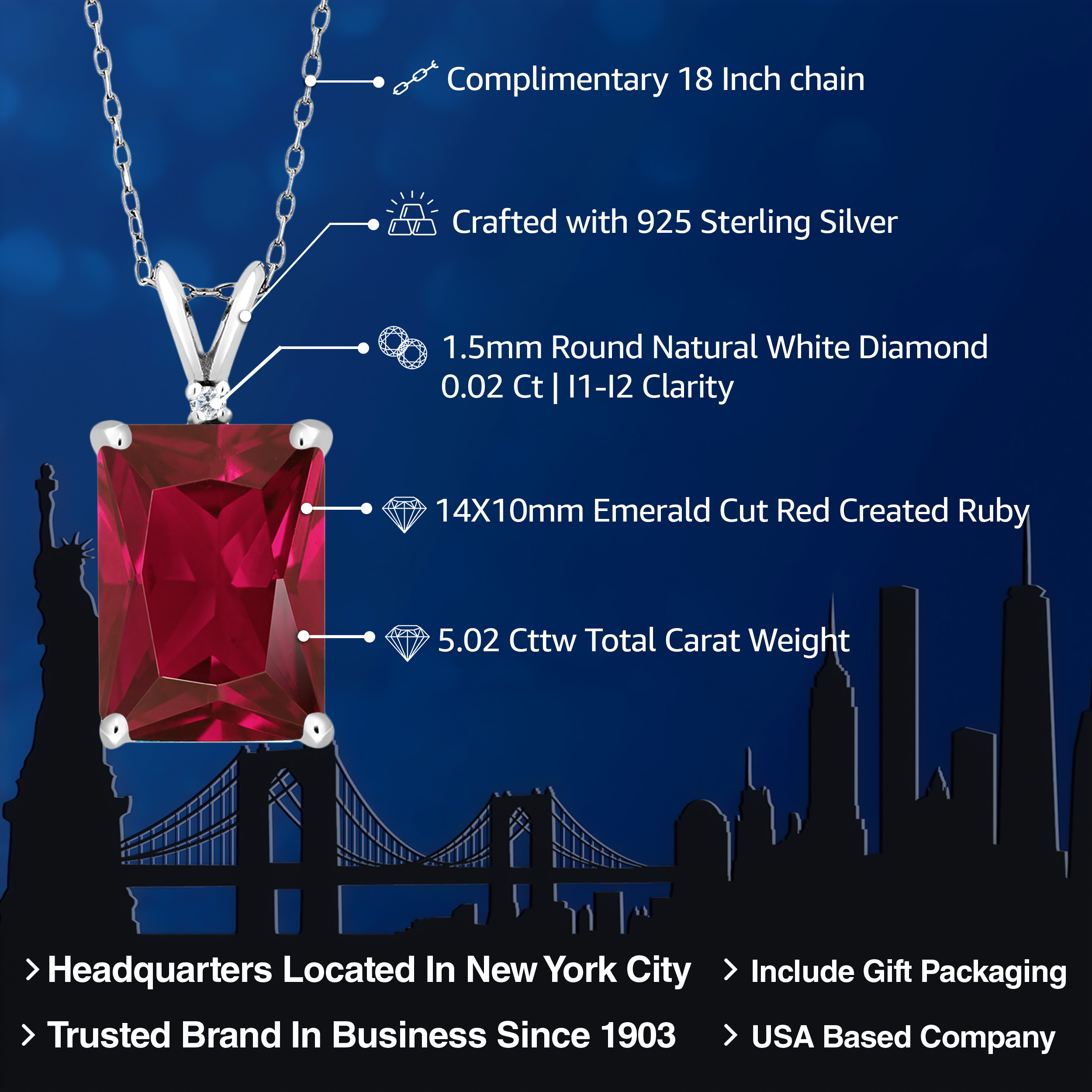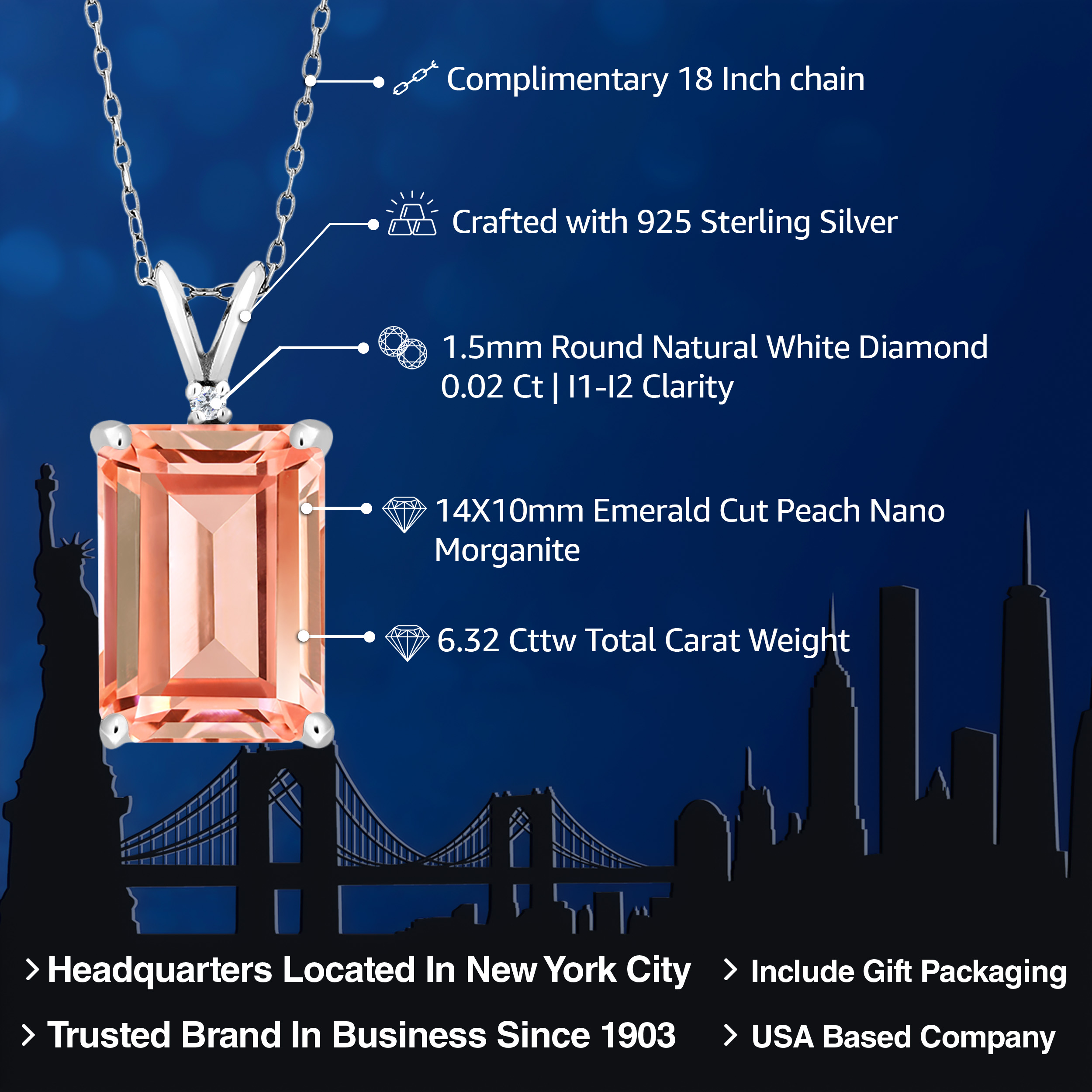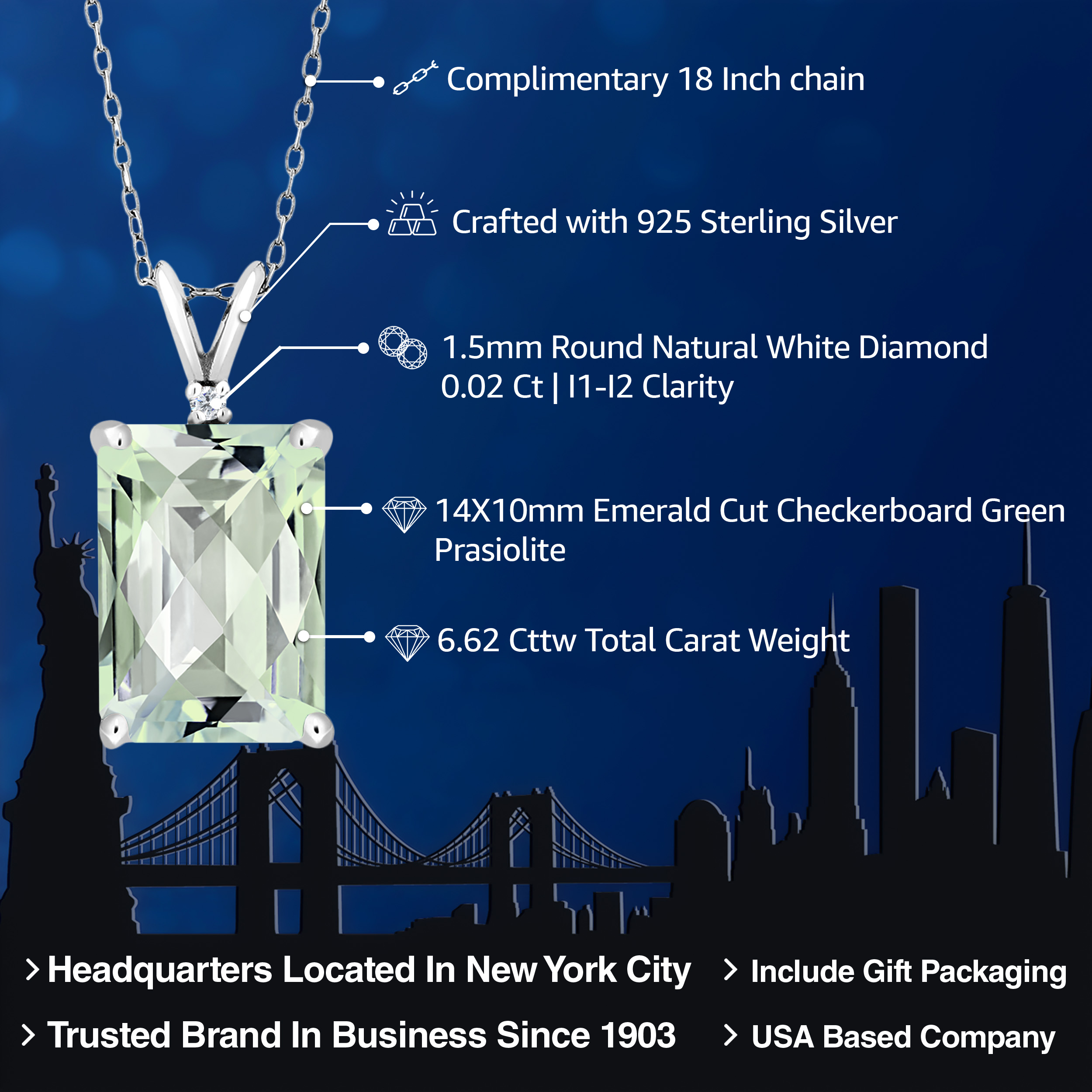 5-10 Cttw Gemstone Birthstone and Round Accent White Diamond Necklace | 14X10MM Emerald Cut | 925 Sterling Silver | Pendant Necklace for Women | With 18 Inch Silver Chain