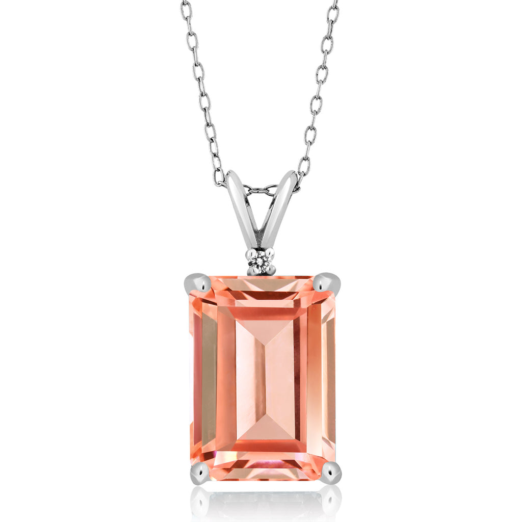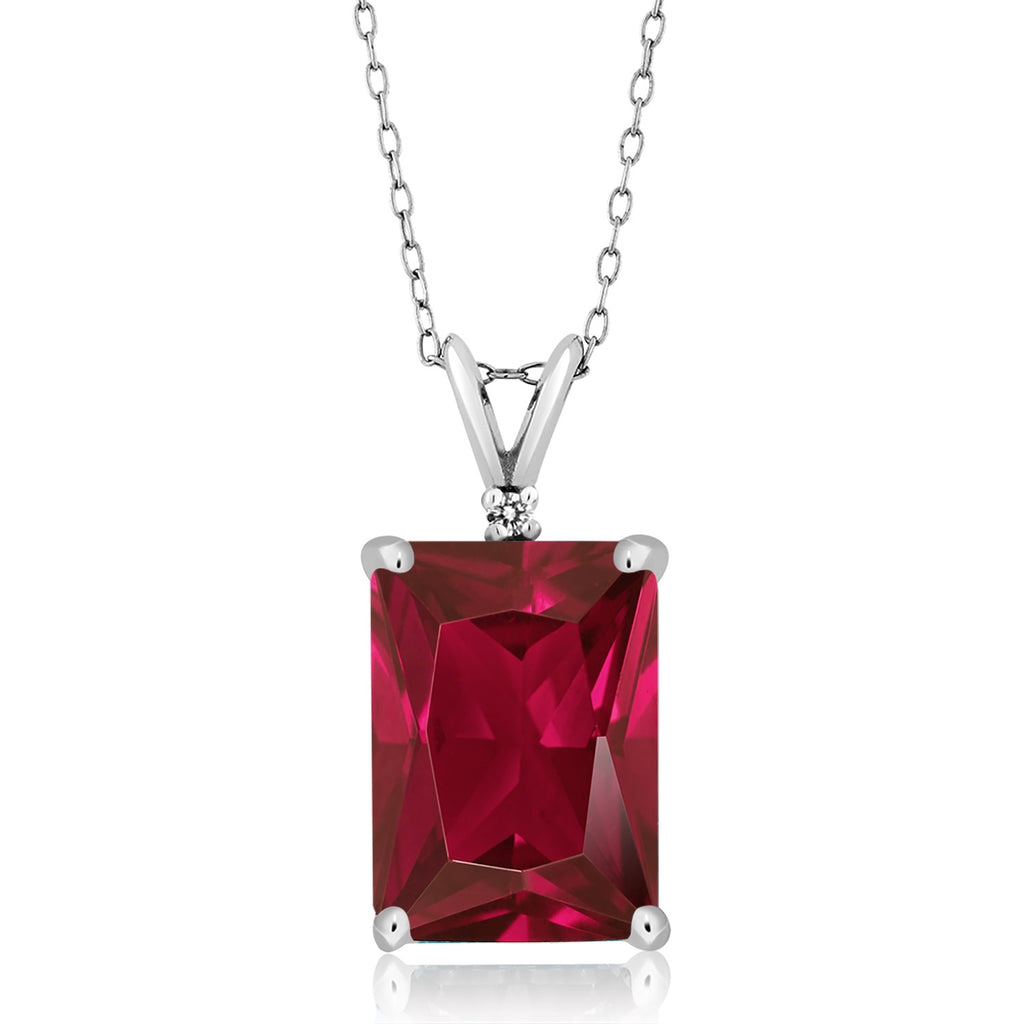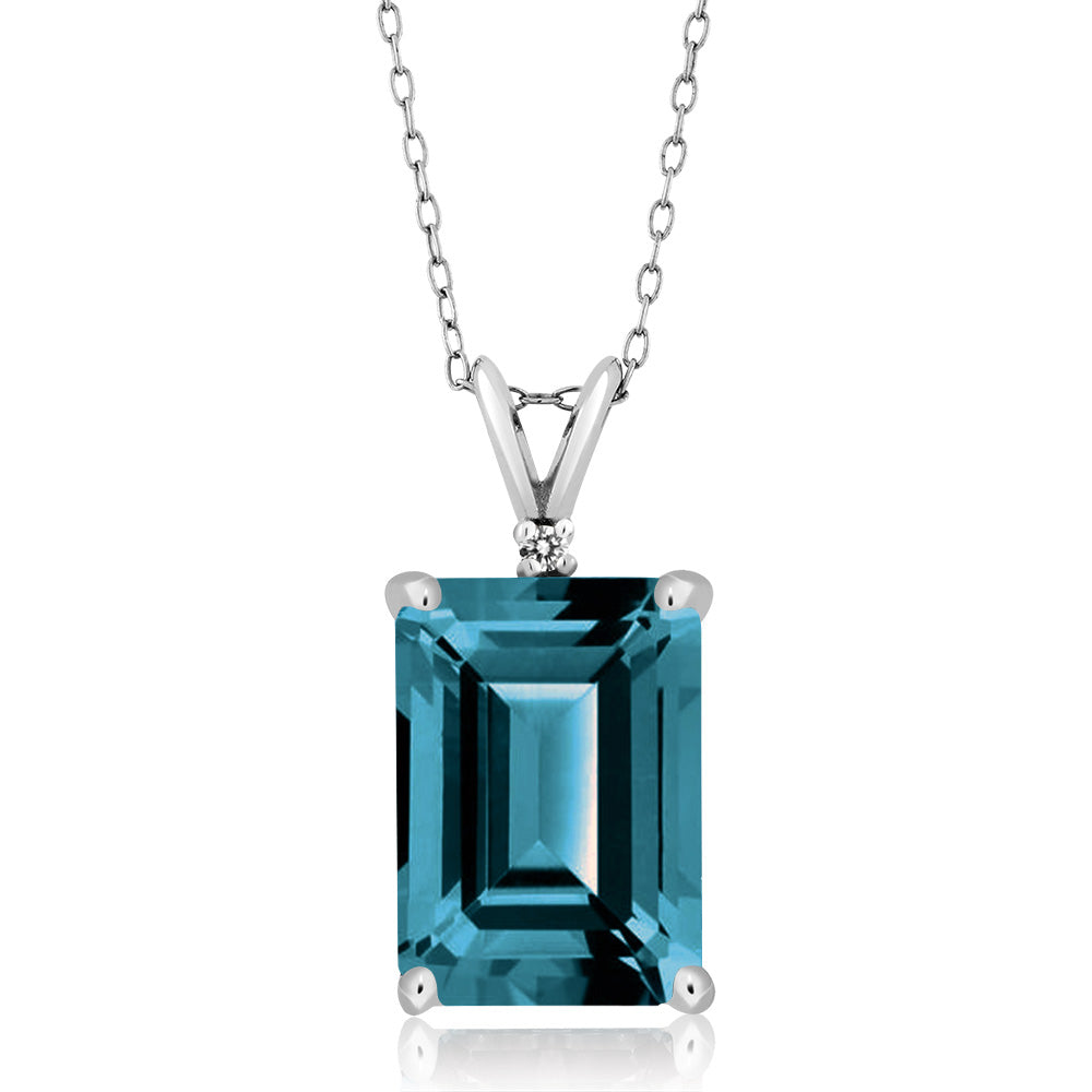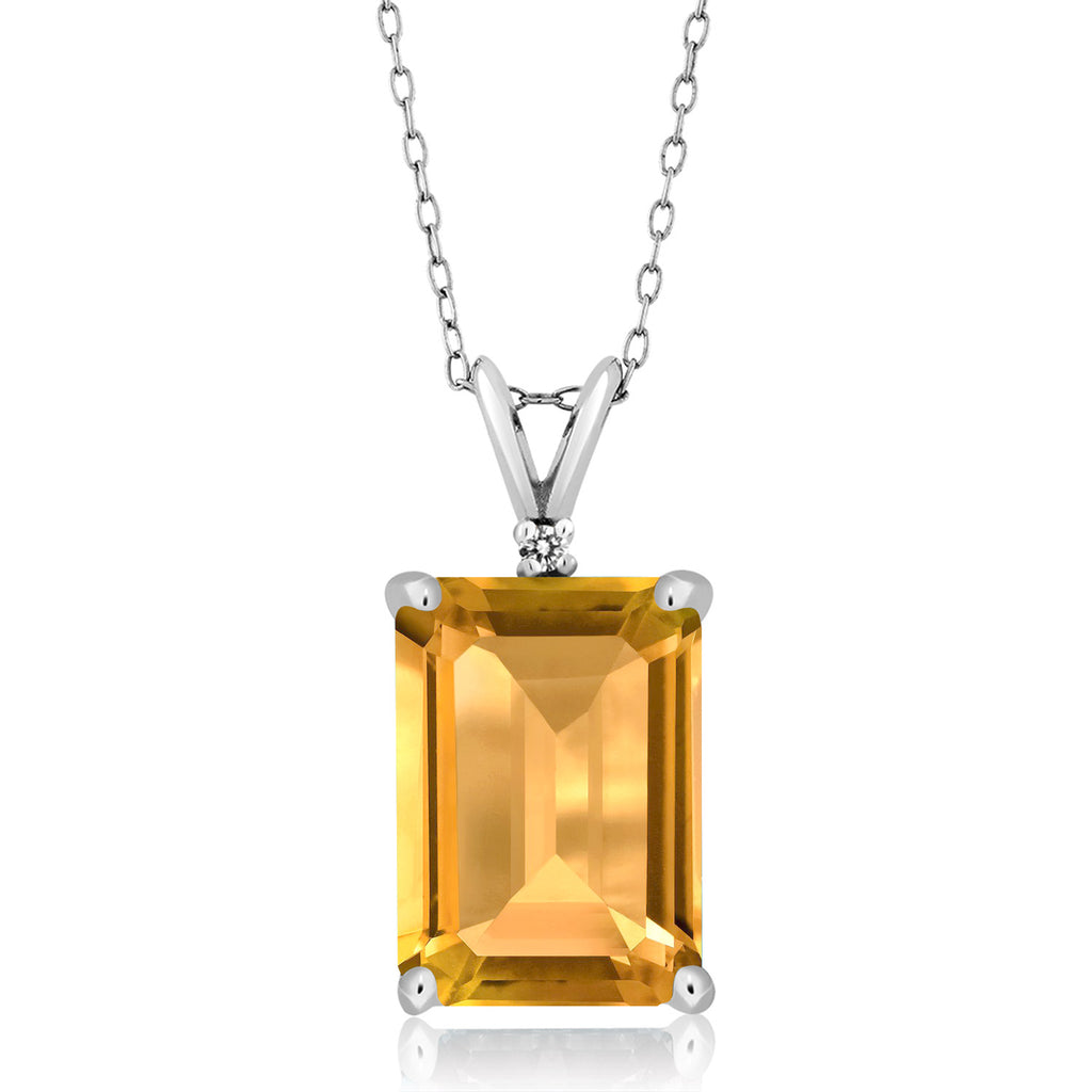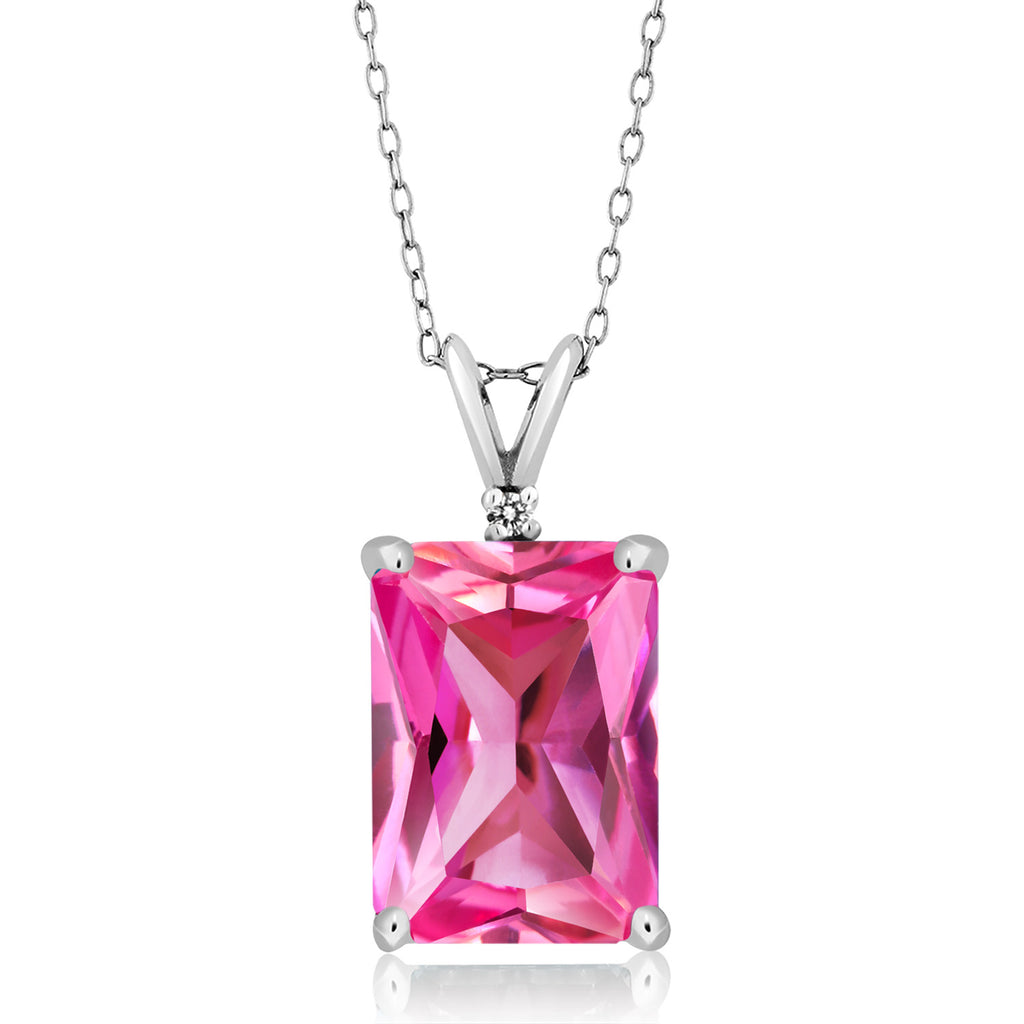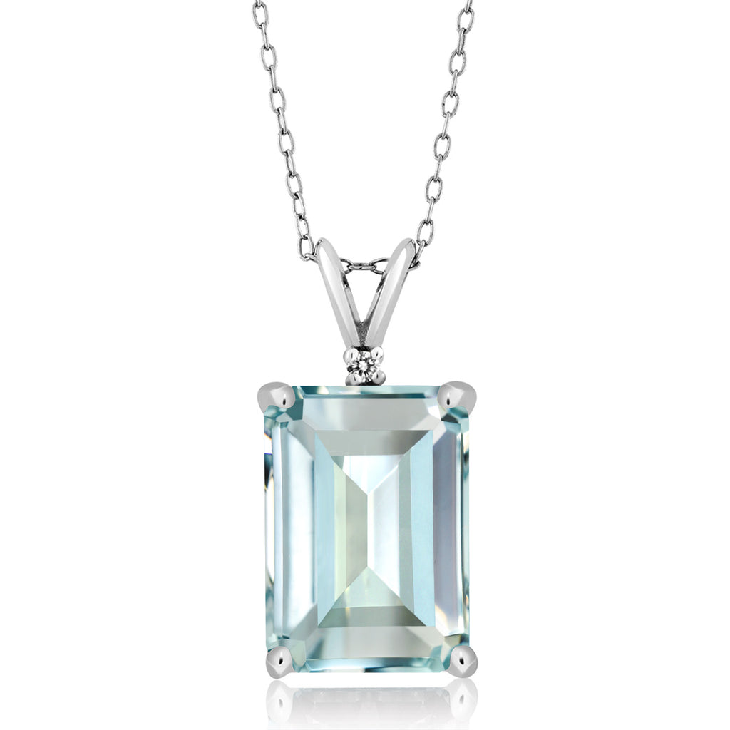 5-10 Cttw Gemstone Birthstone and Round Accent White Diamond Necklace | 14X10MM Emerald Cut | 925 Sterling Silver | Pendant Necklace for Women | With 18 Inch Silver Chain