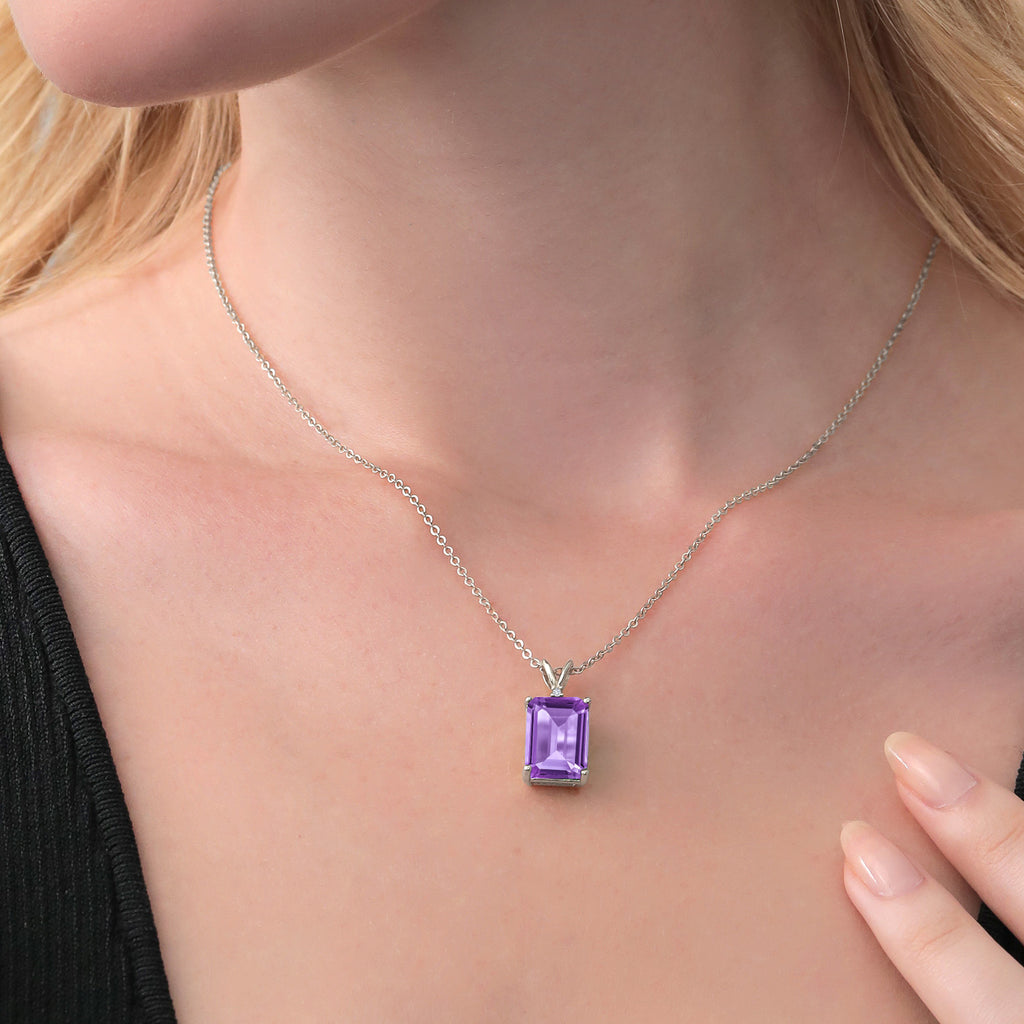 EXQUISITE EMERALD CUT GEMSTONE: Featuring a stunning 14x10MM emerald cut gemstone, this pendant necklace presents a captivating play of light and depth, perfect for celebrating one's birthstone. The emerald cut enhances the gemstone's clarity, providing a mesmerizing brilliance that captures the essence of elegance. Its timeless shape and size make it a standout piece, resonating with those who appreciate the beauty of refined simplicity and classic sophistication.