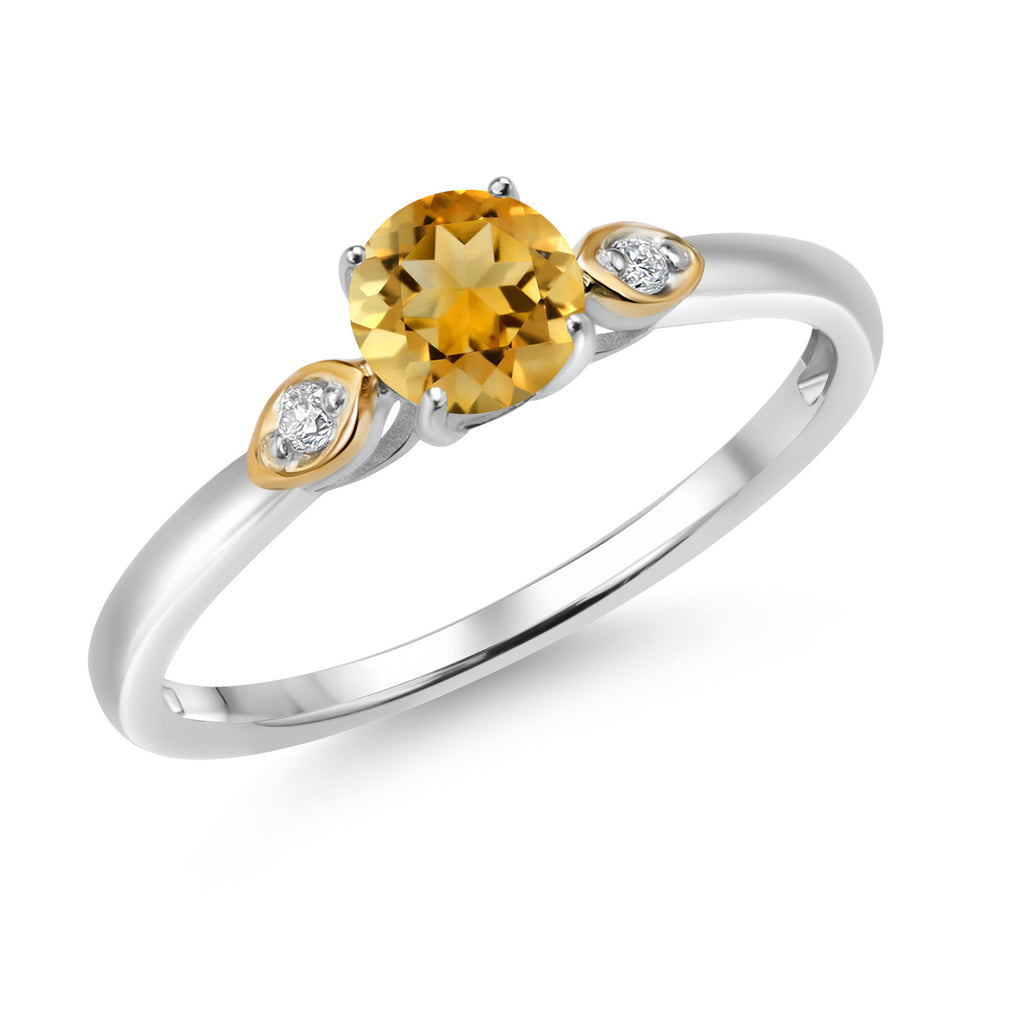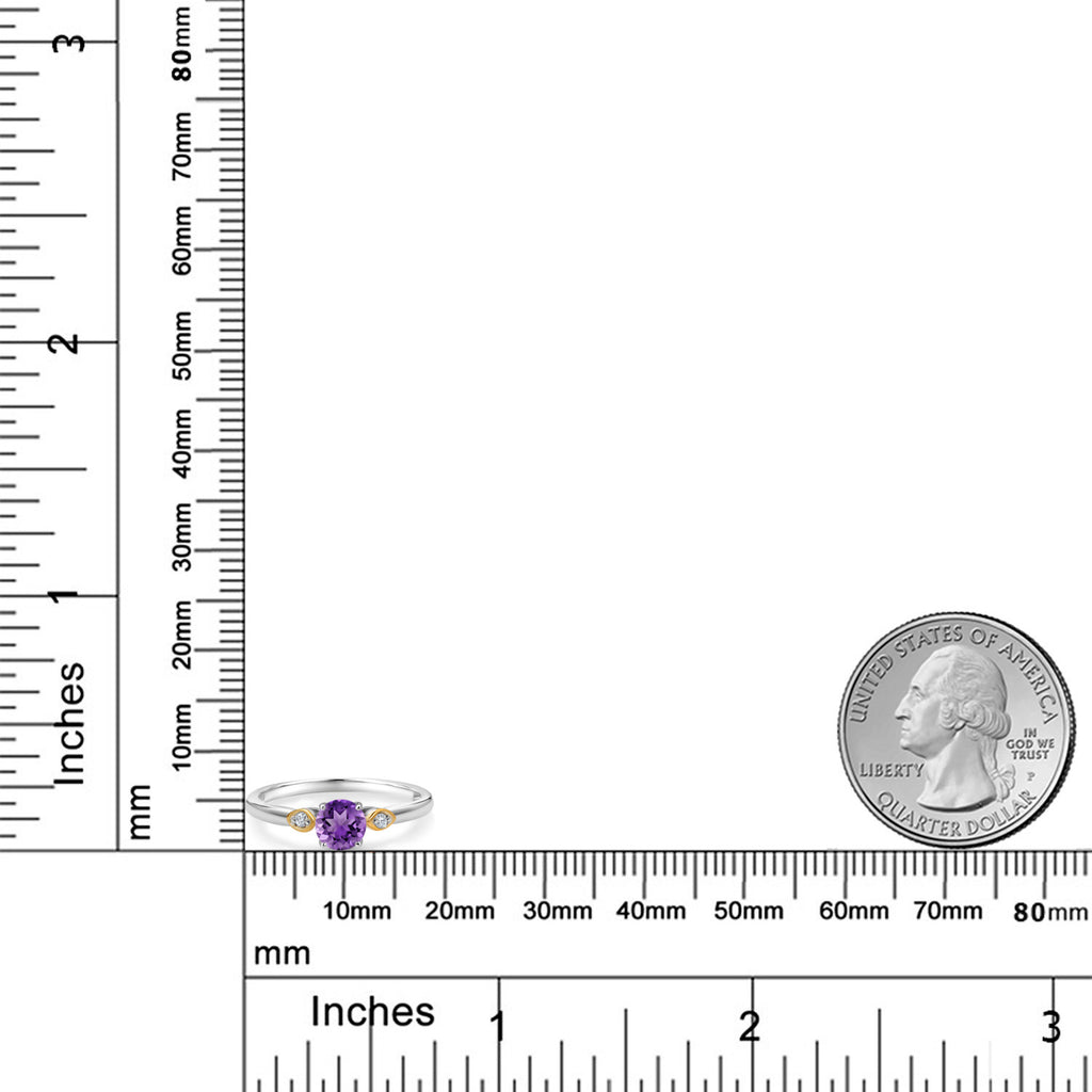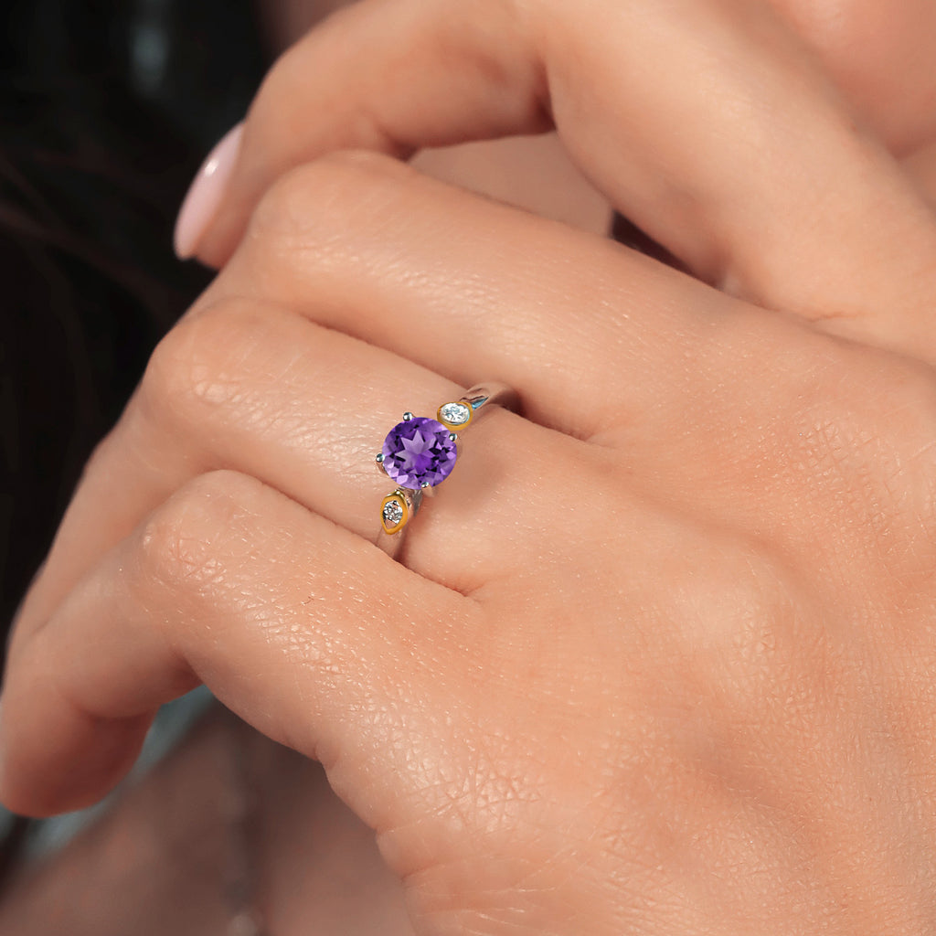 EXCEPTIONAL QUALITY AND CRAFTSMANSHIP: This stunning 3-stone engagement ring features a 5MM round gemstone birthstone, flanked by two sparkling white lab-grown diamonds. Crafted from high-quality 925 sterling silver and accented with 10K yellow gold, this ring ensures durability and a luxurious finish that will last a lifetime.