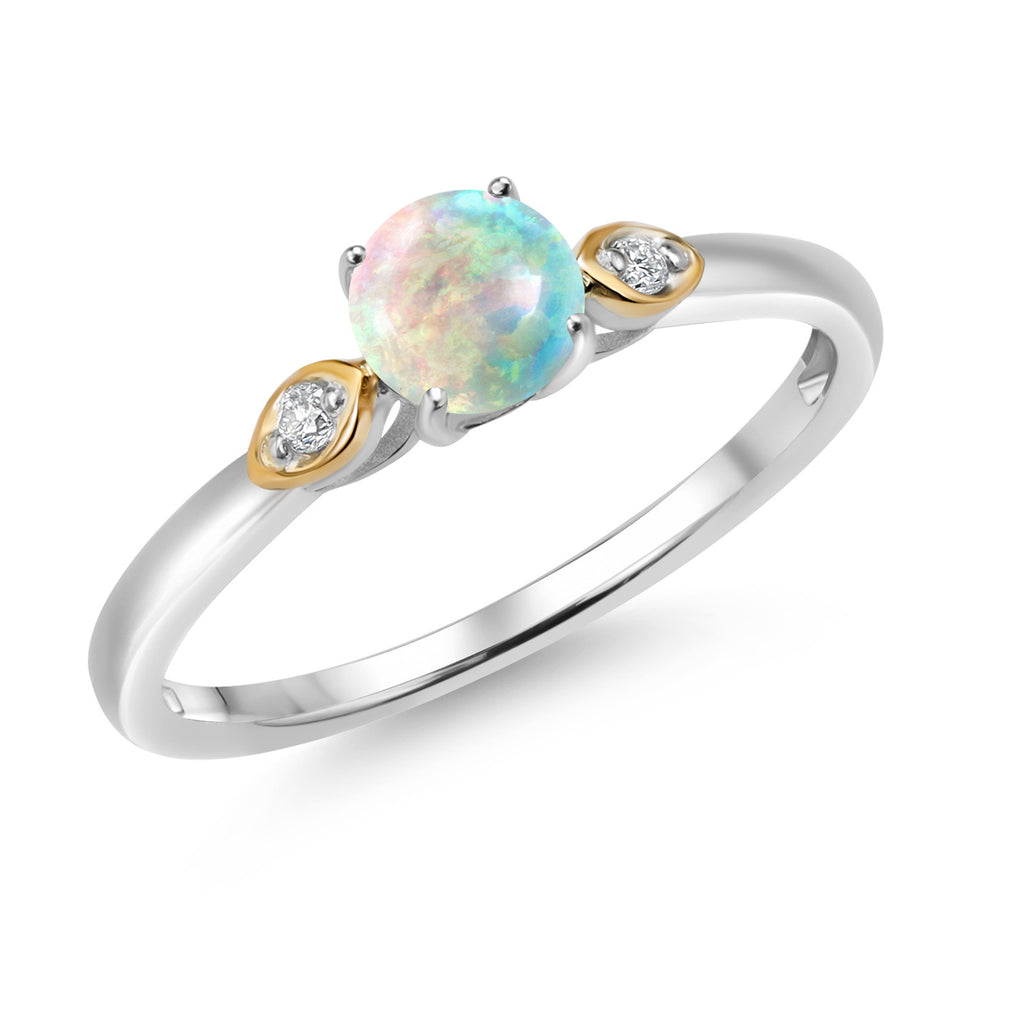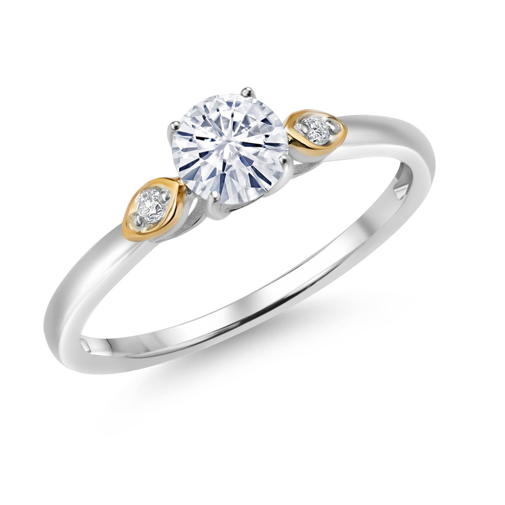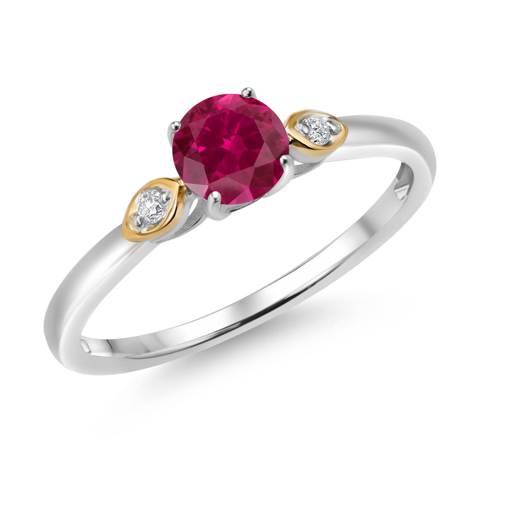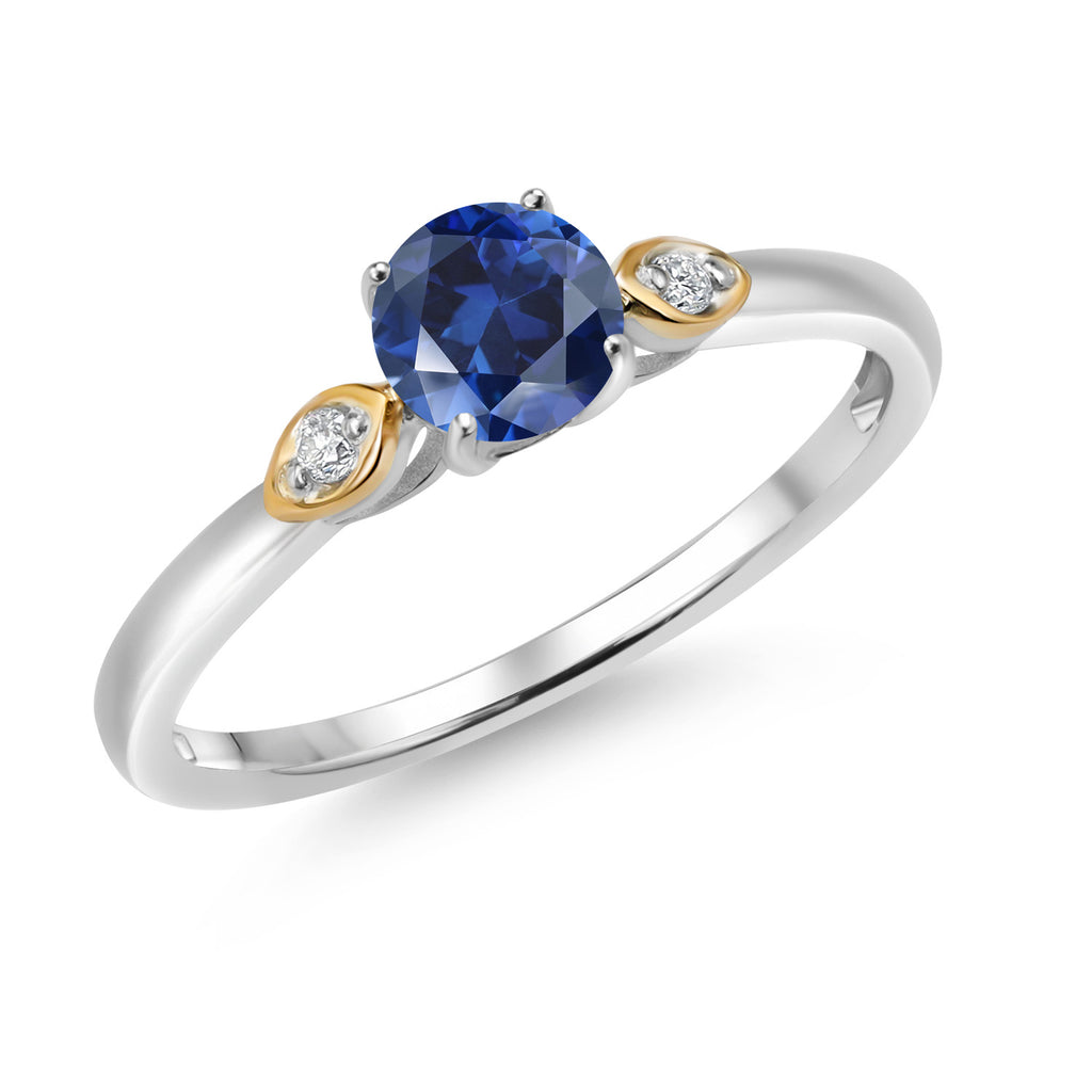 EXCEPTIONAL QUALITY AND CRAFTSMANSHIP: This stunning 3-stone engagement ring features a 5MM round gemstone birthstone, flanked by two sparkling white lab-grown diamonds. Crafted from high-quality 925 sterling silver and accented with 10K yellow gold, this ring ensures durability and a luxurious finish that will last a lifetime.