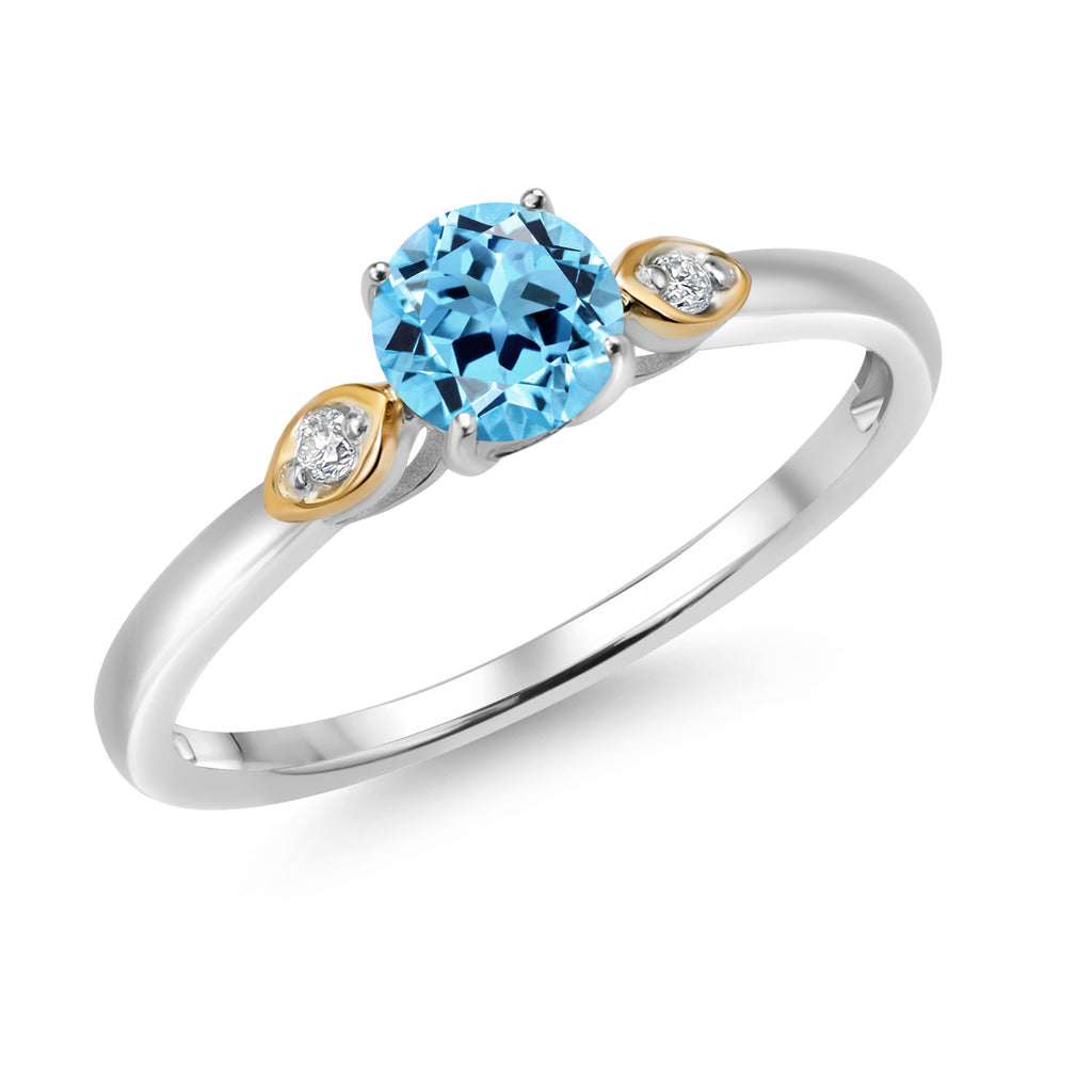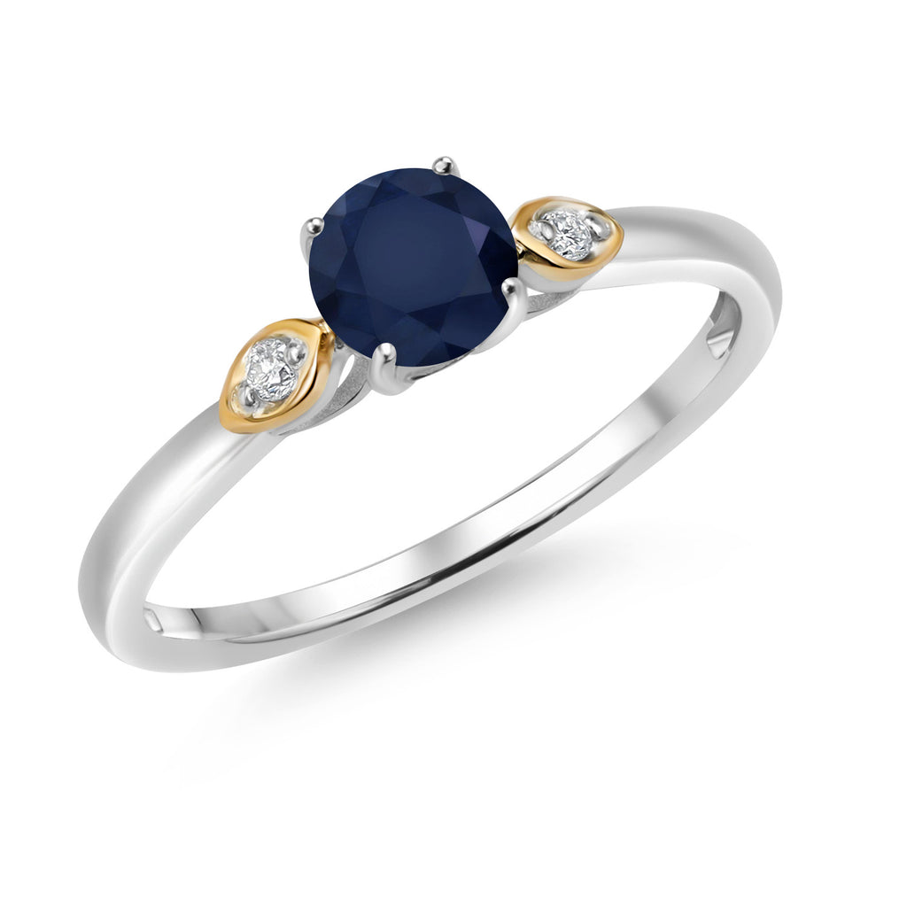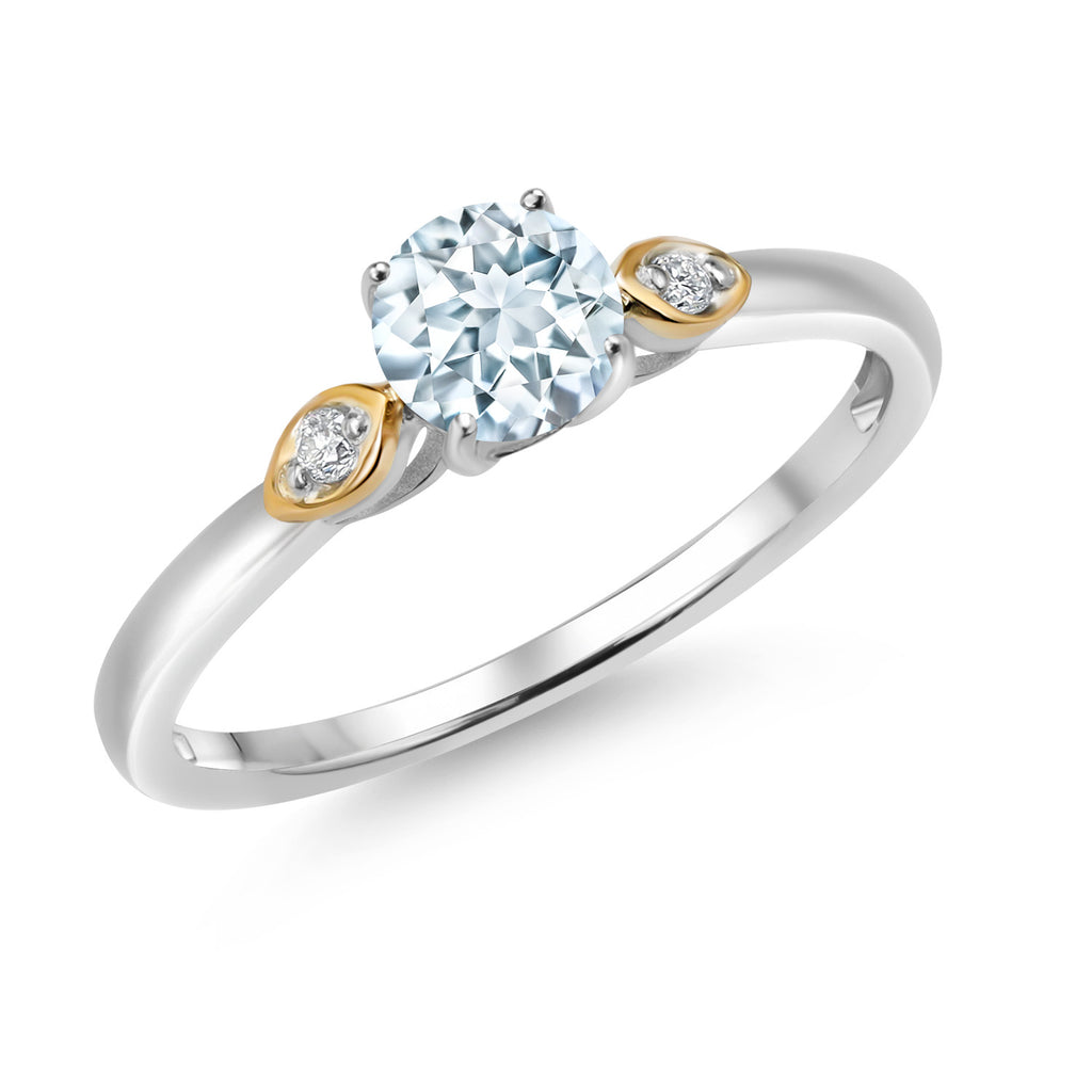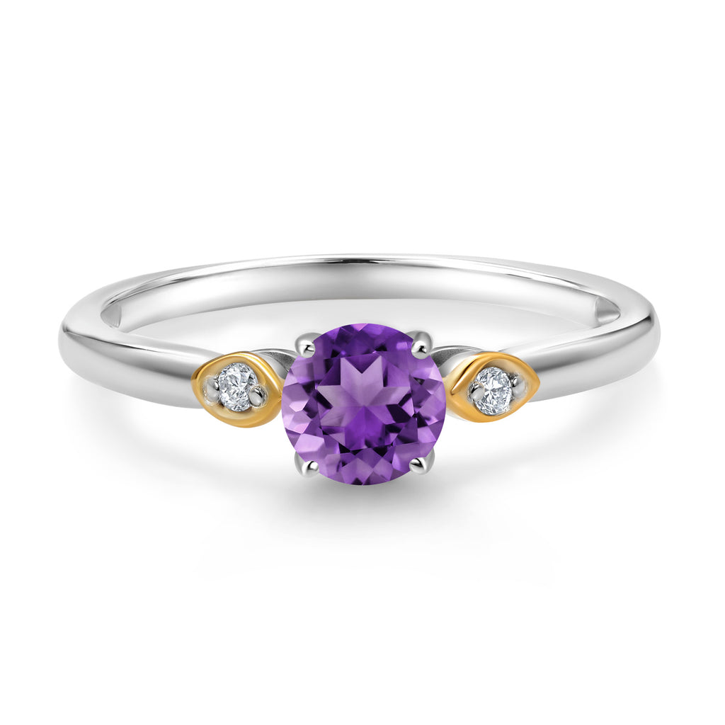3-Stone Engagement Ring | 925 Sterling Silver and 10K Yellow Gold | 5MM Round Gemstone Birthstone and White Lab Grown Diamond | Three Stone Wedding Anniversary Ring For Women