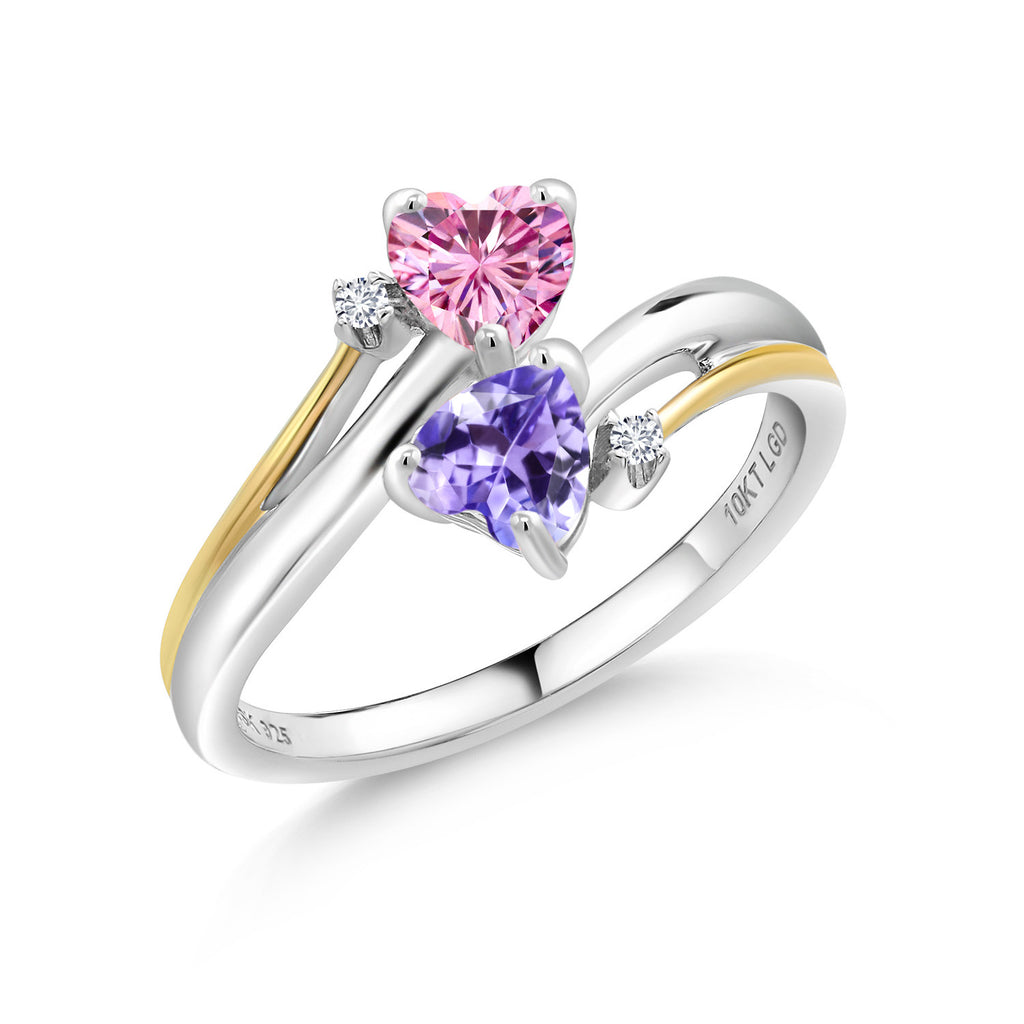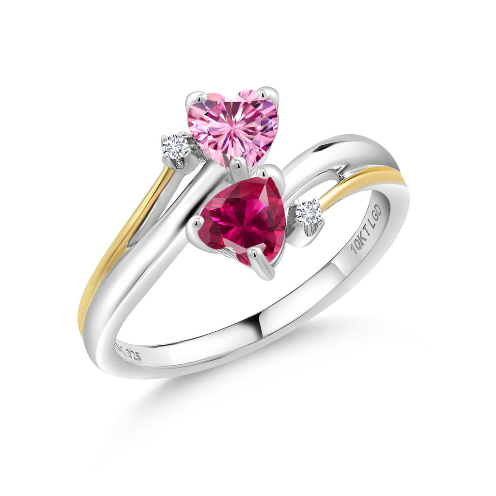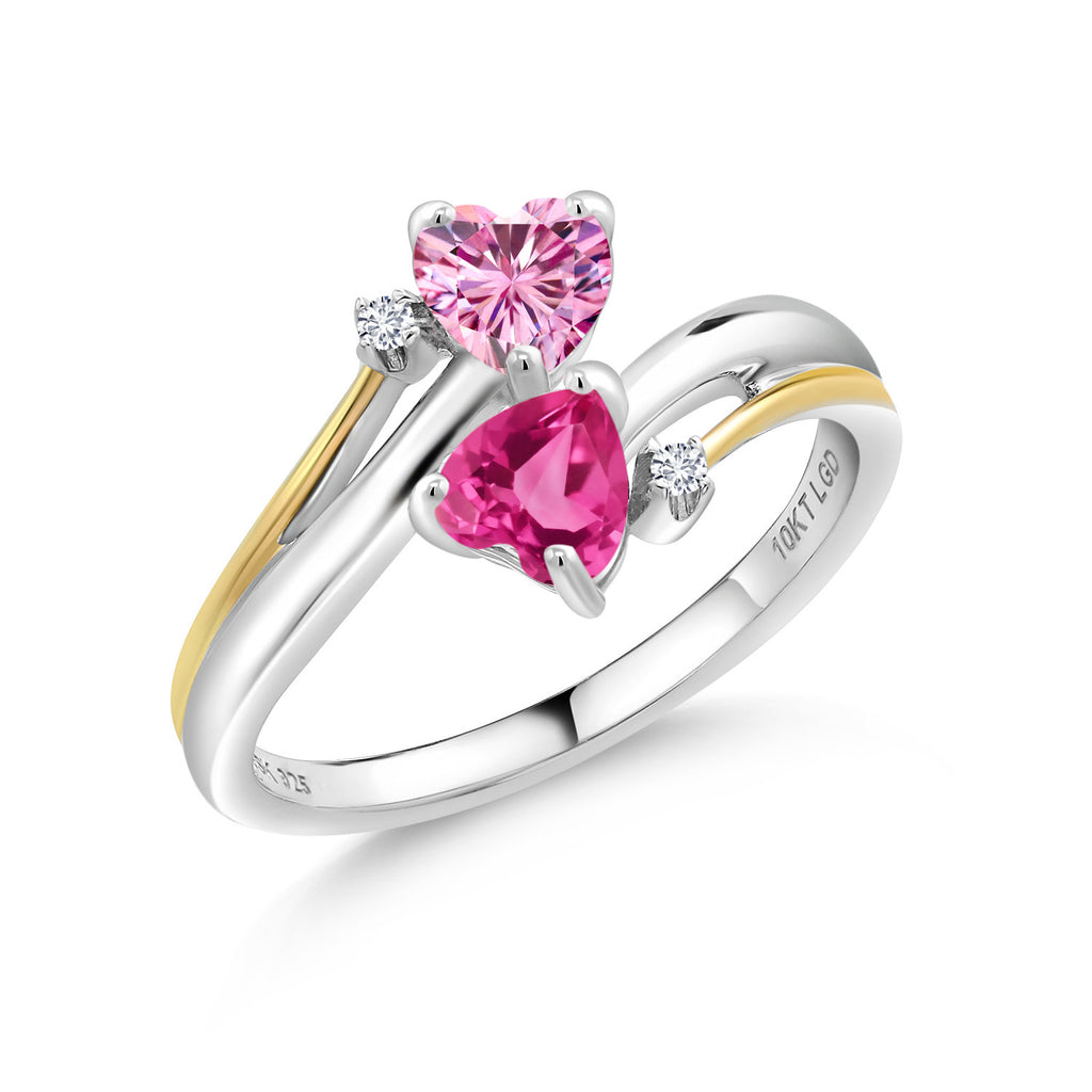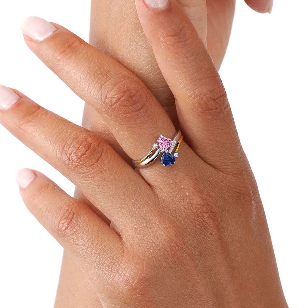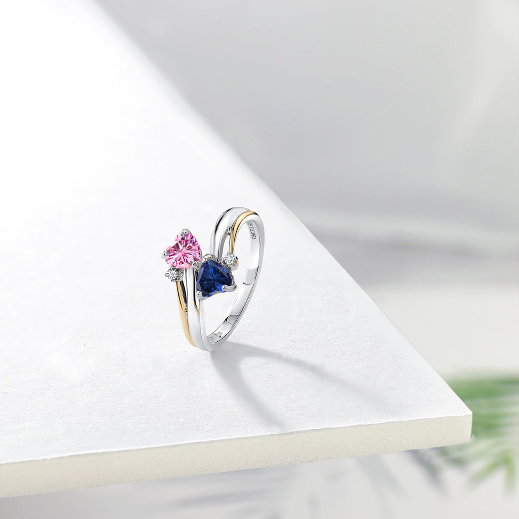 EXQUISITE HEART-SHAPED GEMSTONES: The ring features a resplendent 5MM Pink Moissanite centerpiece, accompanied by a variety of birthstone options to make it more personal and meaningful. Ccomplemented by an array of 1.3MM lab-grown diamonds, these stones, both renowned for their exceptional clarity and brilliance, are meticulously cut into heart and round shapes respectively, reflecting the romantic sentiment of this piece.