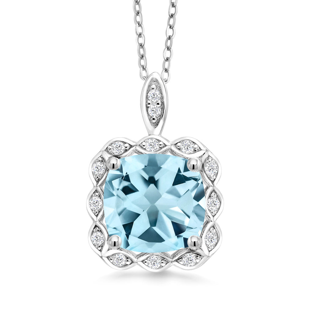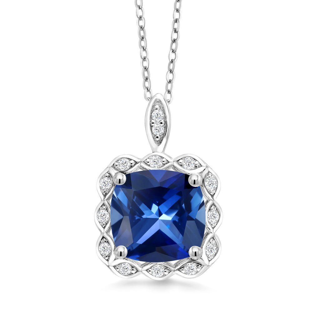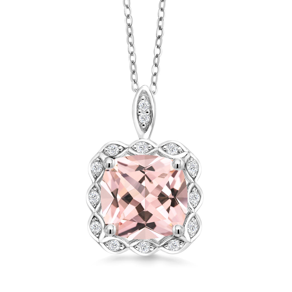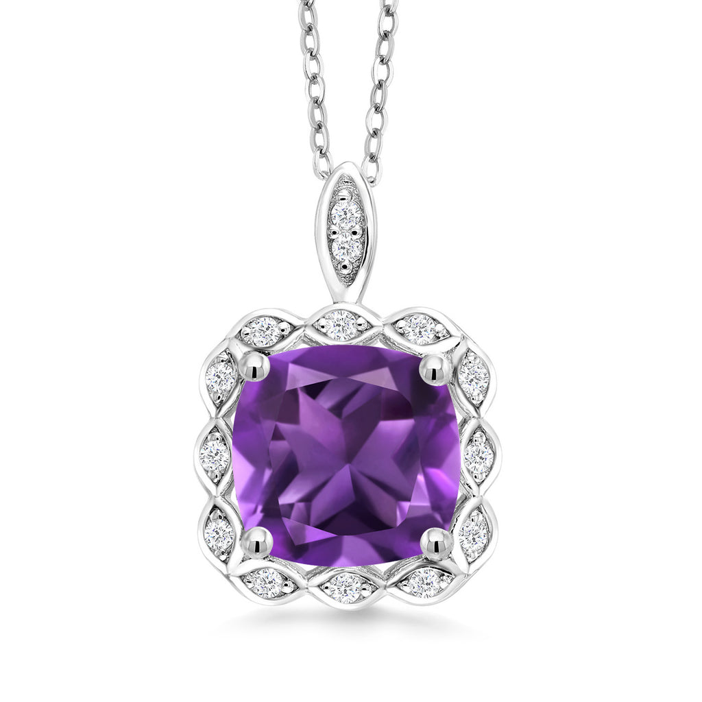 3-5 Cttw Gemstone Birthstone Halo Pendant Necklace for Women | 925 Sterling Silver | 10MM Cushion | With 18 Inch Silver Chain | Fine Jewelry Gifts for Her Mom Women Wife