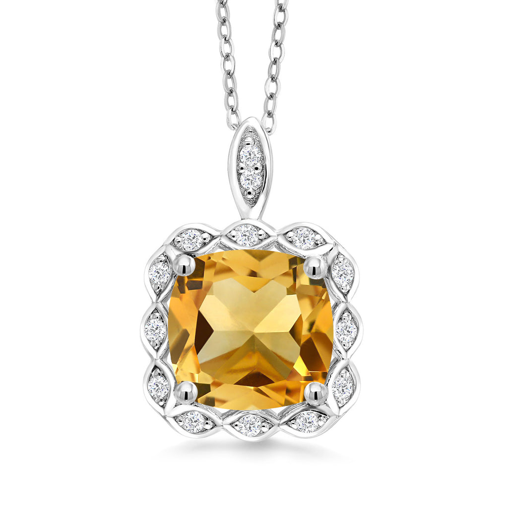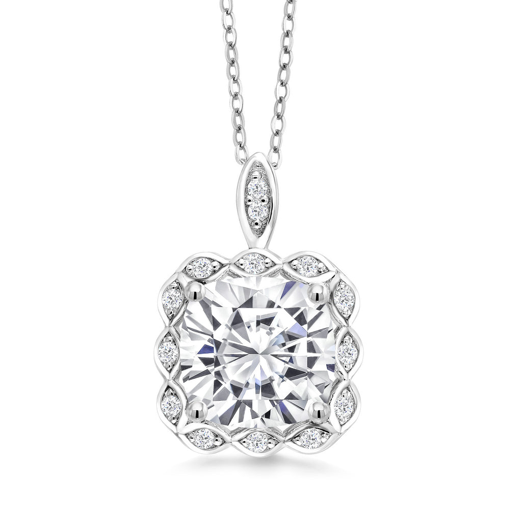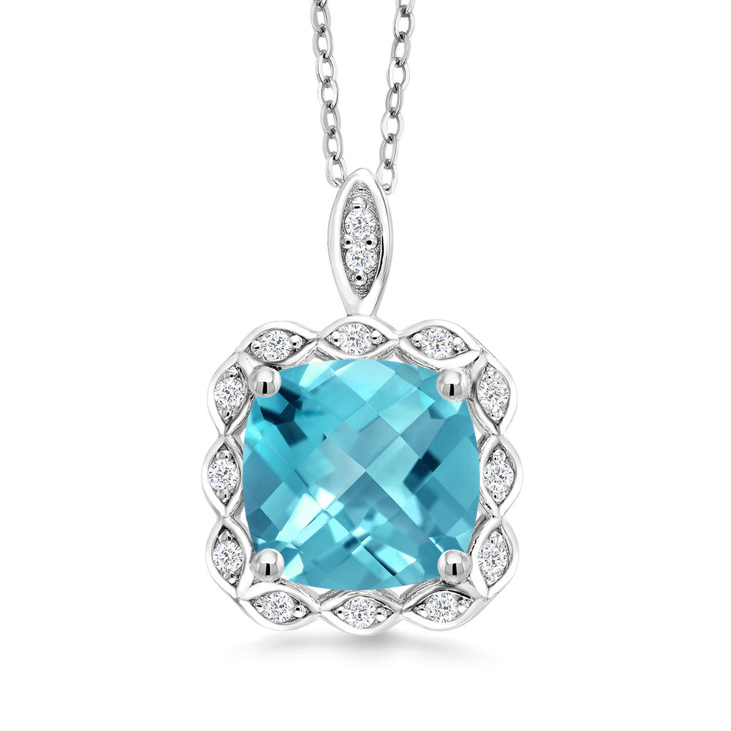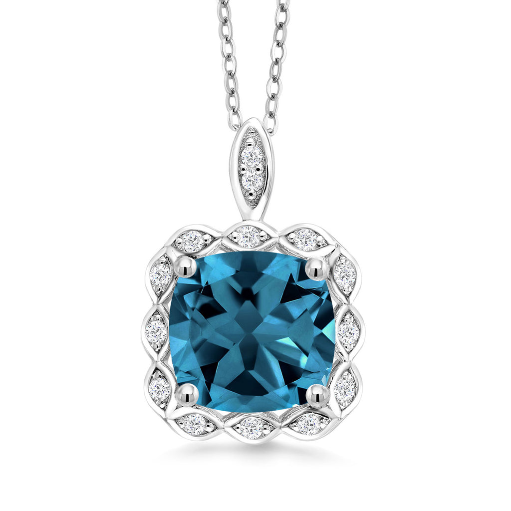 3-5 Cttw Gemstone Birthstone Halo Pendant Necklace for Women | 925 Sterling Silver | 10MM Cushion | With 18 Inch Silver Chain | Fine Jewelry Gifts for Her Mom Women Wife