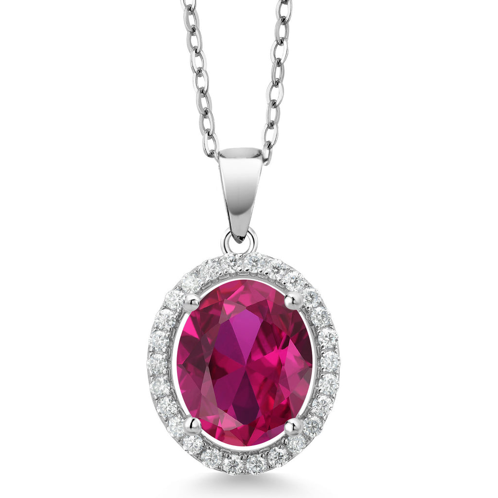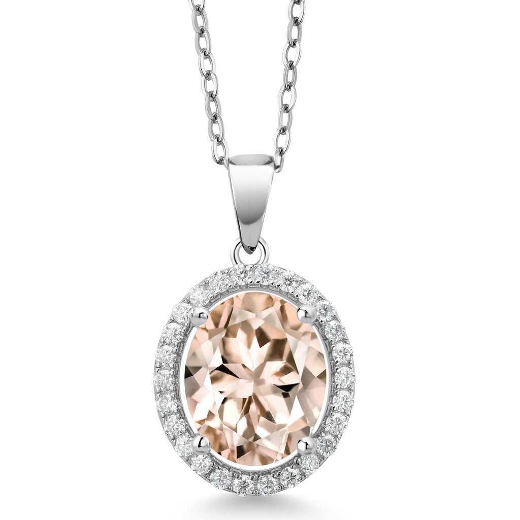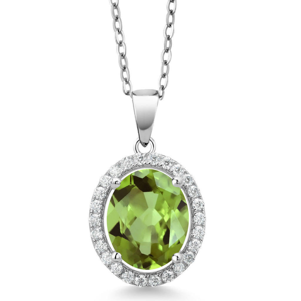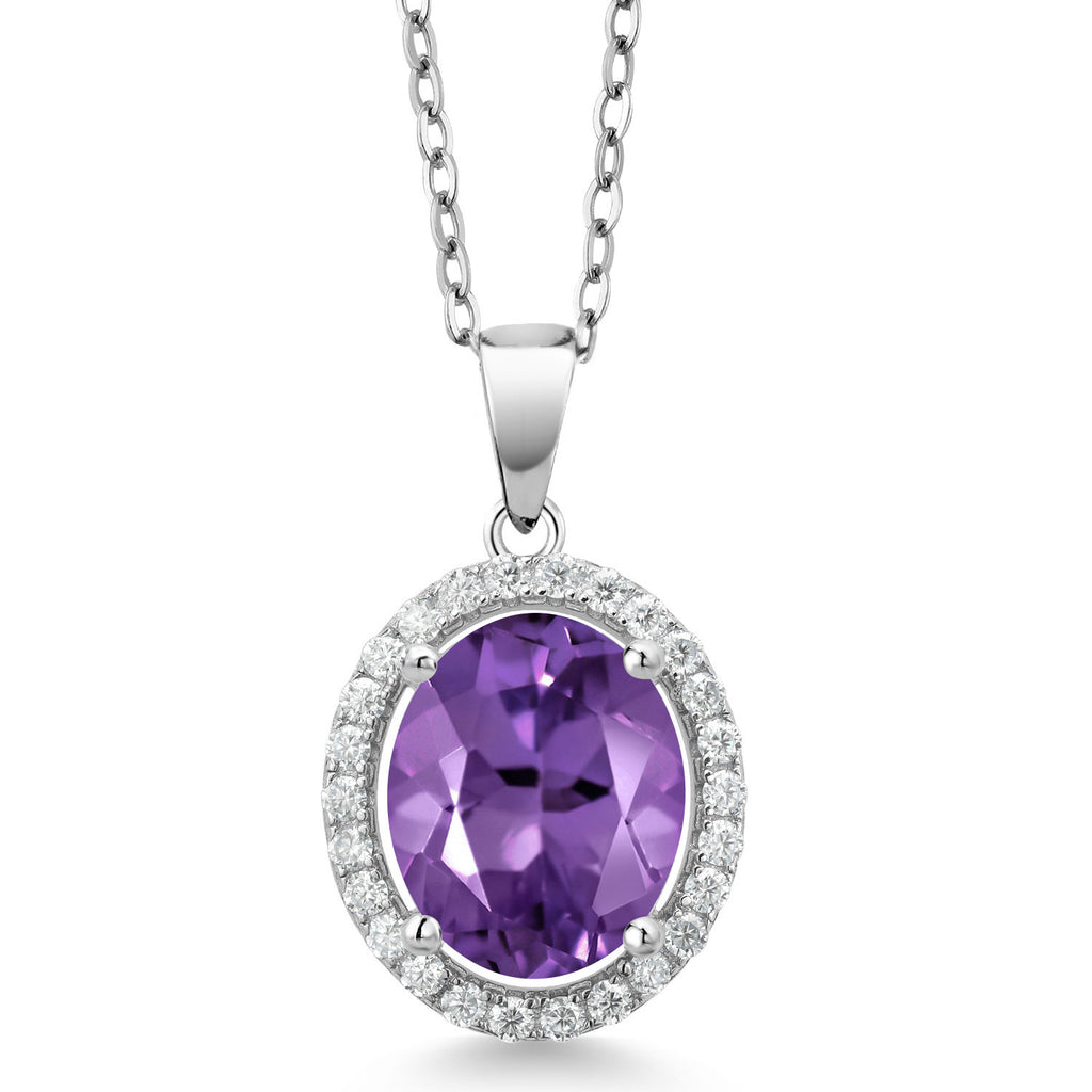 2-5 Cttw Gemstone Birthstone and White Moissanite Halo Necklace for Women | 925 Sterling Silver | 11X9MM Oval | Pendant Necklace for Women | With 18 Inch Chain