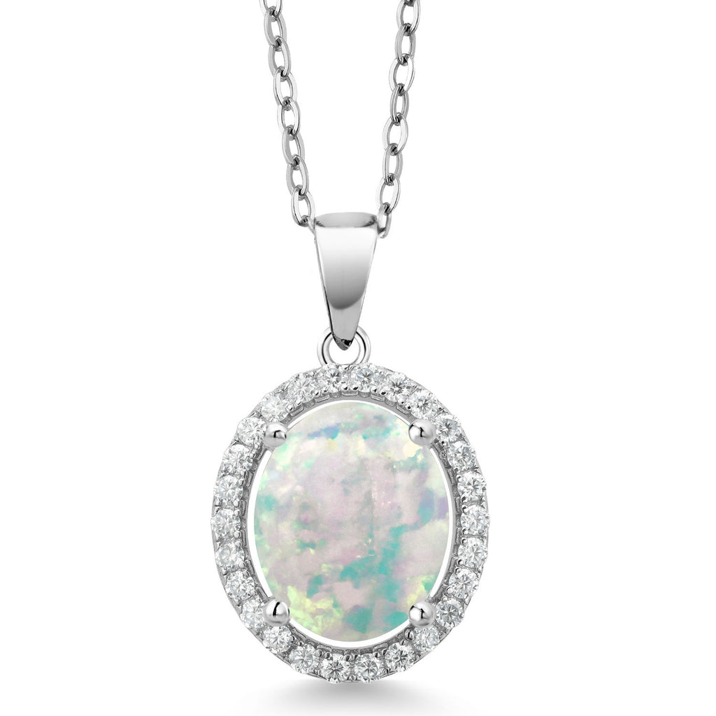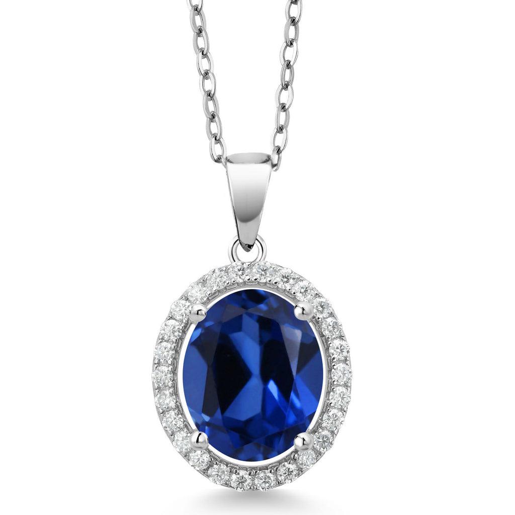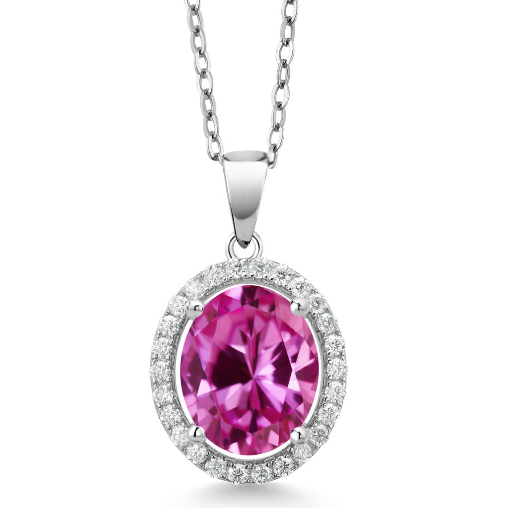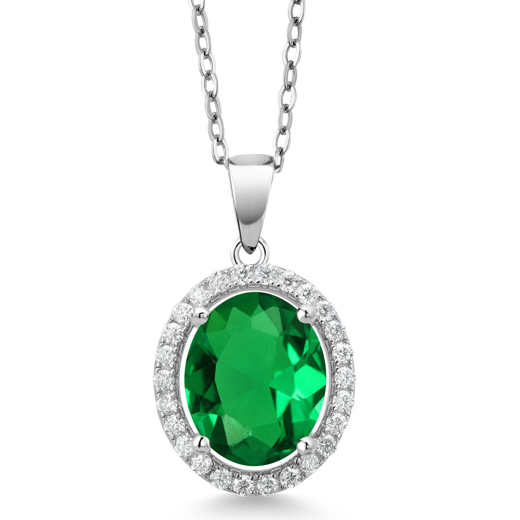 2-5 Cttw Gemstone Birthstone and White Moissanite Halo Necklace for Women | 925 Sterling Silver | 11X9MM Oval | Pendant Necklace for Women | With 18 Inch Chain