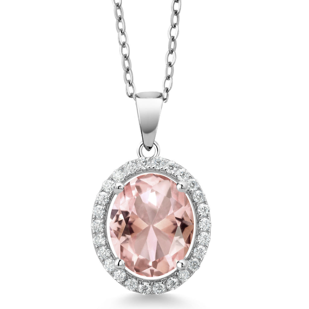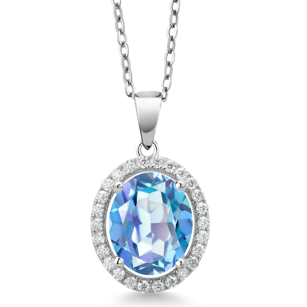 Radiant White Moissanite Halo - Surrounding the central gemstone is a halo of brilliant white moissanite, known for its diamond-like sparkle and sustainability. These moissanite stones enhance the pendant's overall brilliance, creating an eye-catching display of light and color that makes the piece truly stand out.