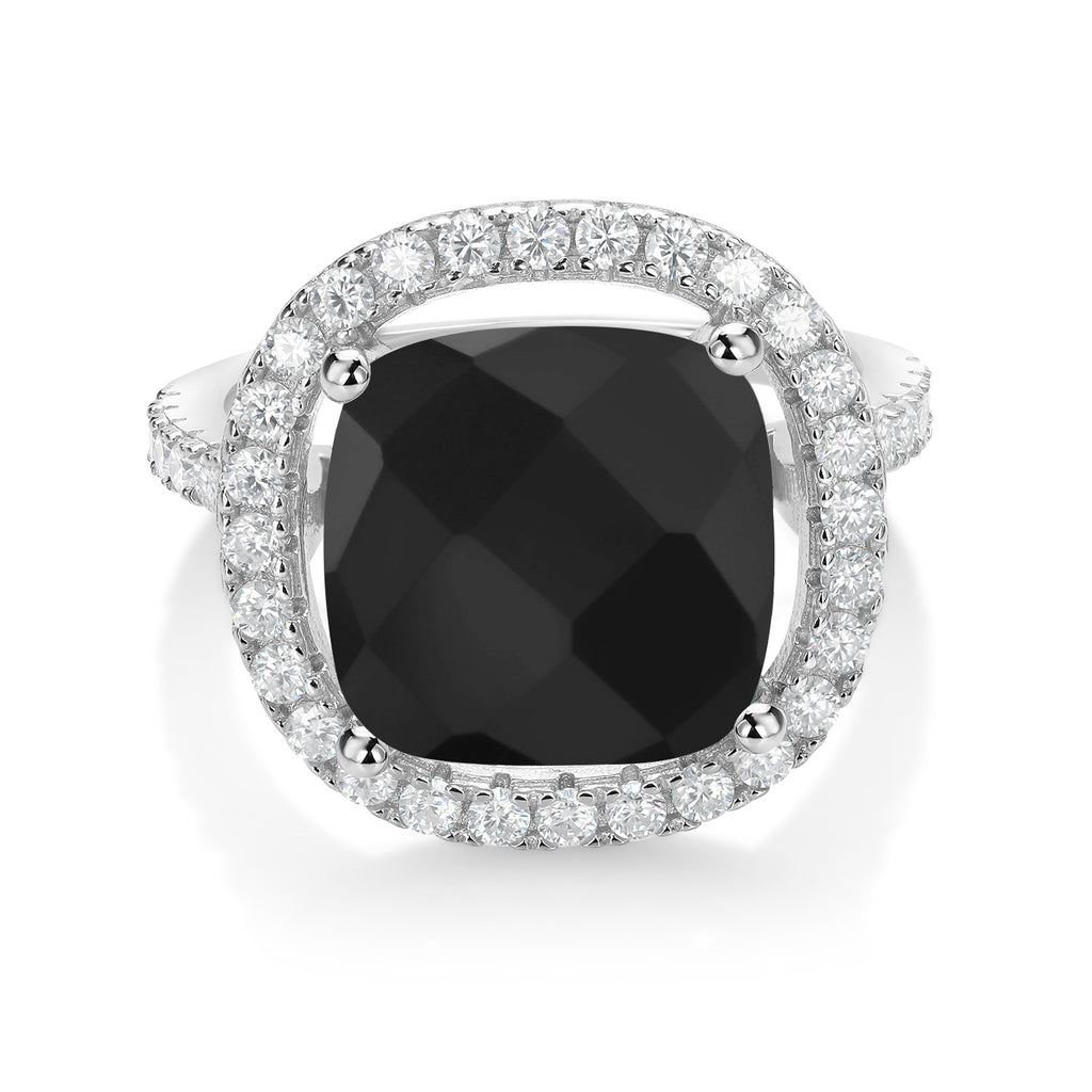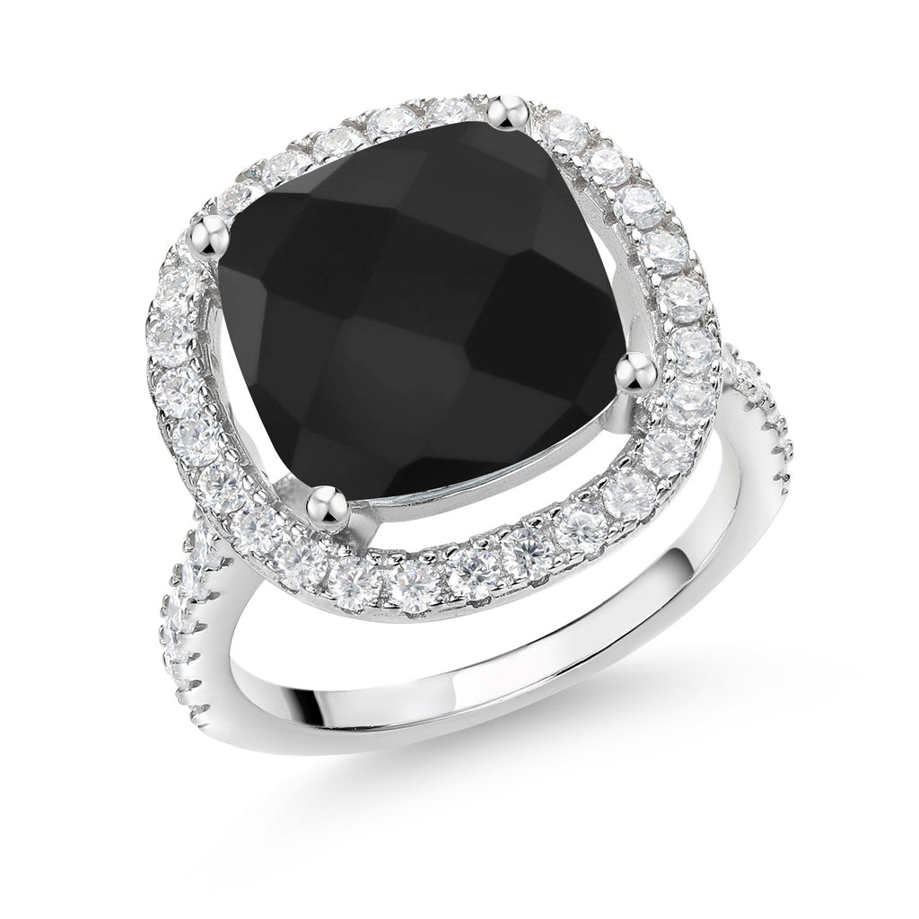 12MM Cushion Gemstone Birthstone and White Moissanite Ring For Women | 925 Sterling Silver | Wedding Engagement Anniversary Promise Ring | Available In Size 5, 6, 7, 8, 9