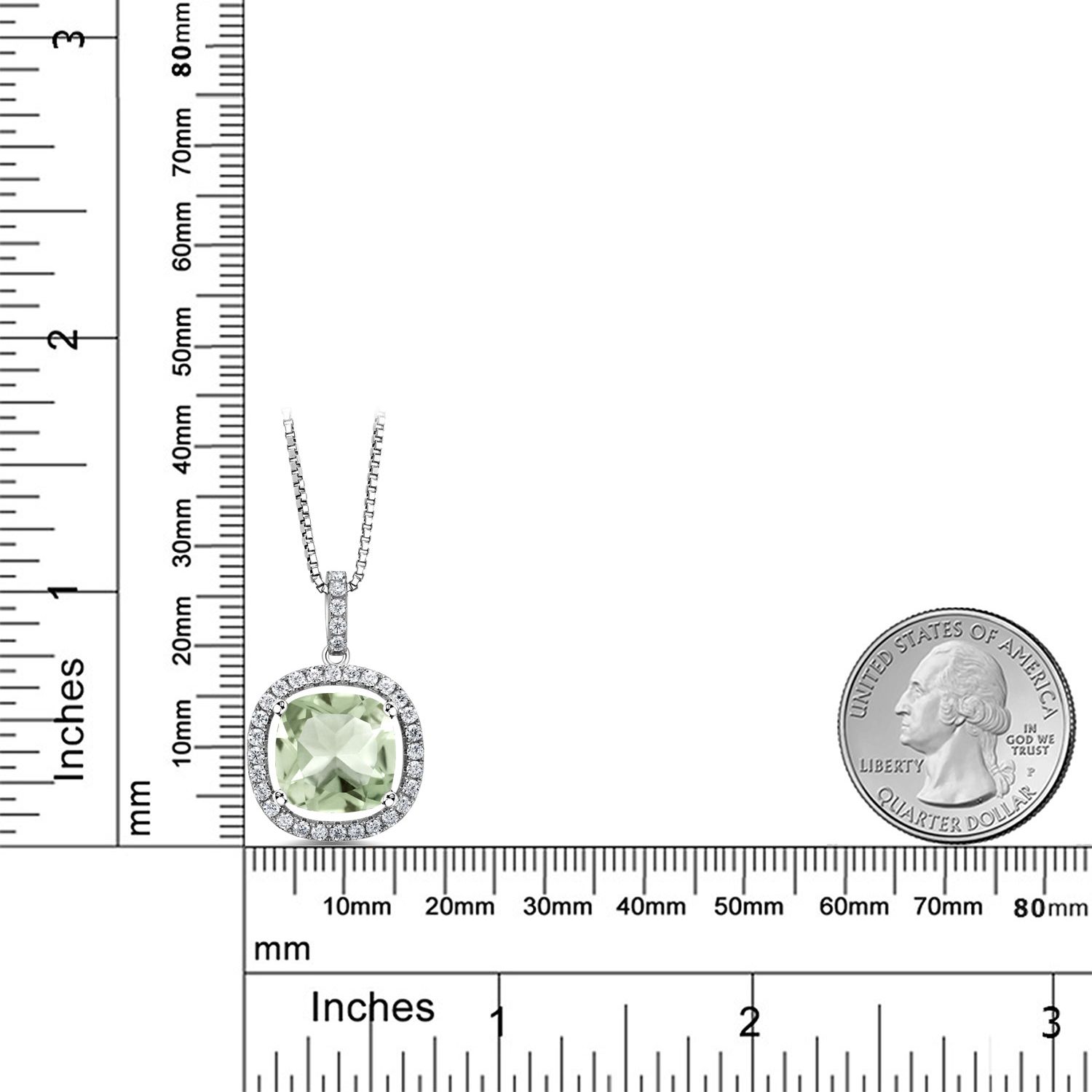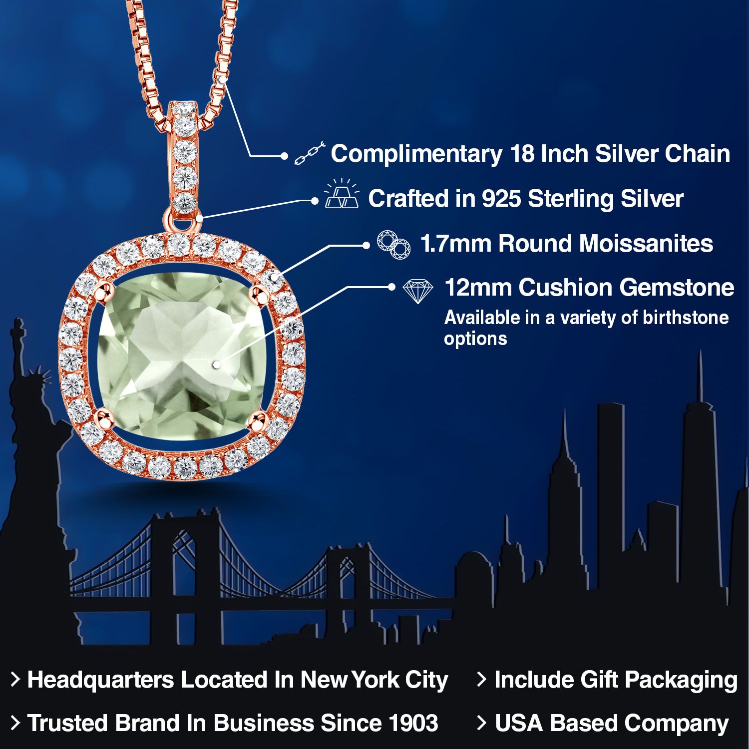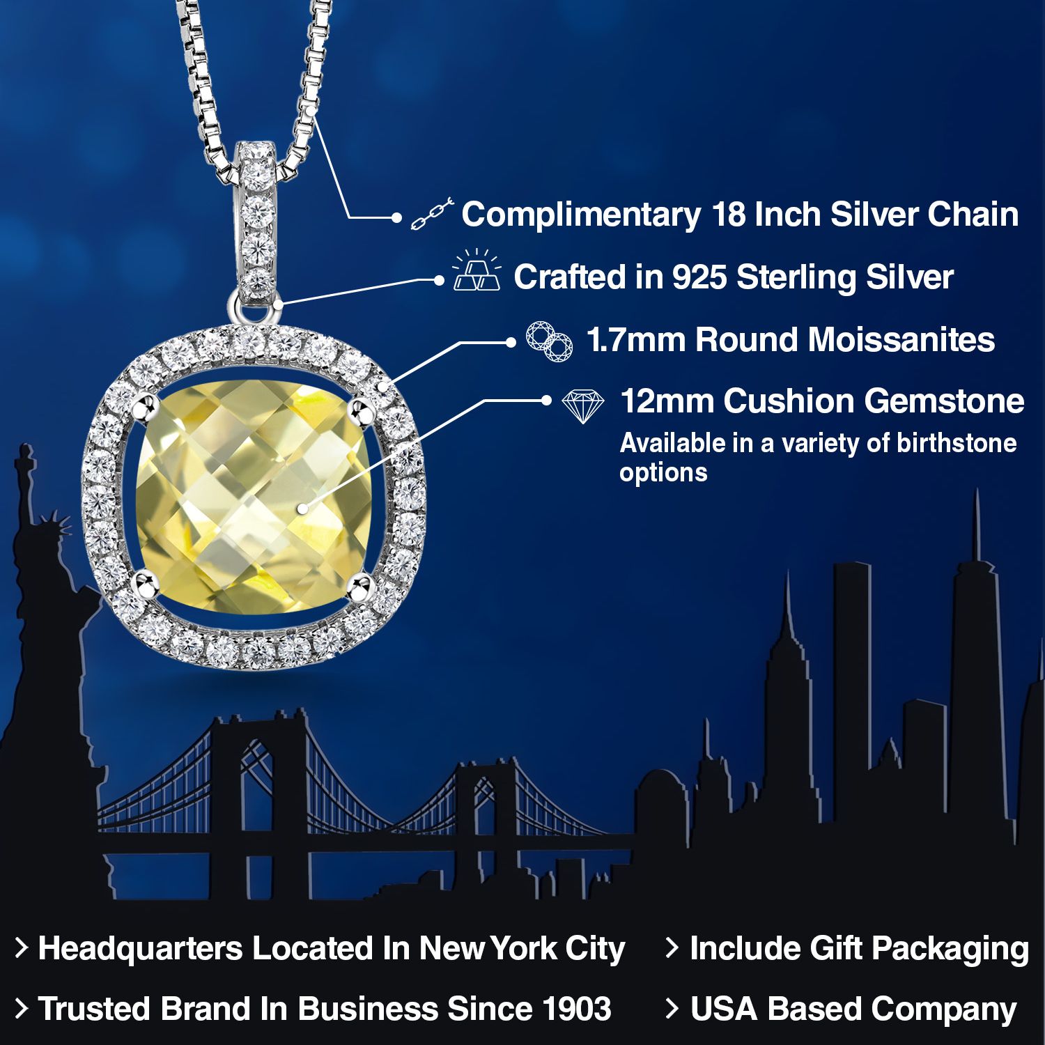 6-10 Ct 12MM Cushion Gemstone Birthstone and White Moissanite Necklace | 925 Sterling Silver | Halo Pendant Necklace For Women | With 18 Inch Silver Chain