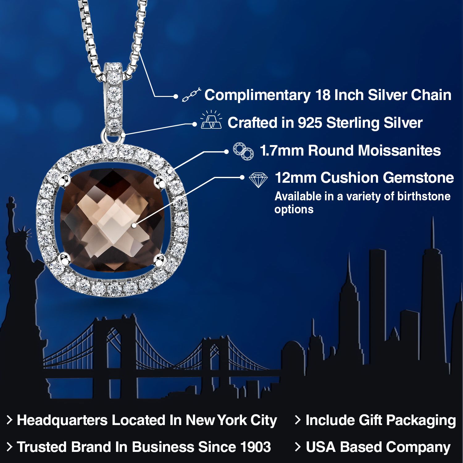 EXQUISITE DESIGN: Elevate your look with this stunning pendant necklace crafted from high-quality 925 sterling silver. The centerpiece of the necklace is a captivating cushion-cut 12mm gemstone birthstone, representing your birth month or that of a loved one. Adorned with sparkling white moissanite accents, this necklace exudes elegance and sophistication, making it the perfect accessory for any occasion.