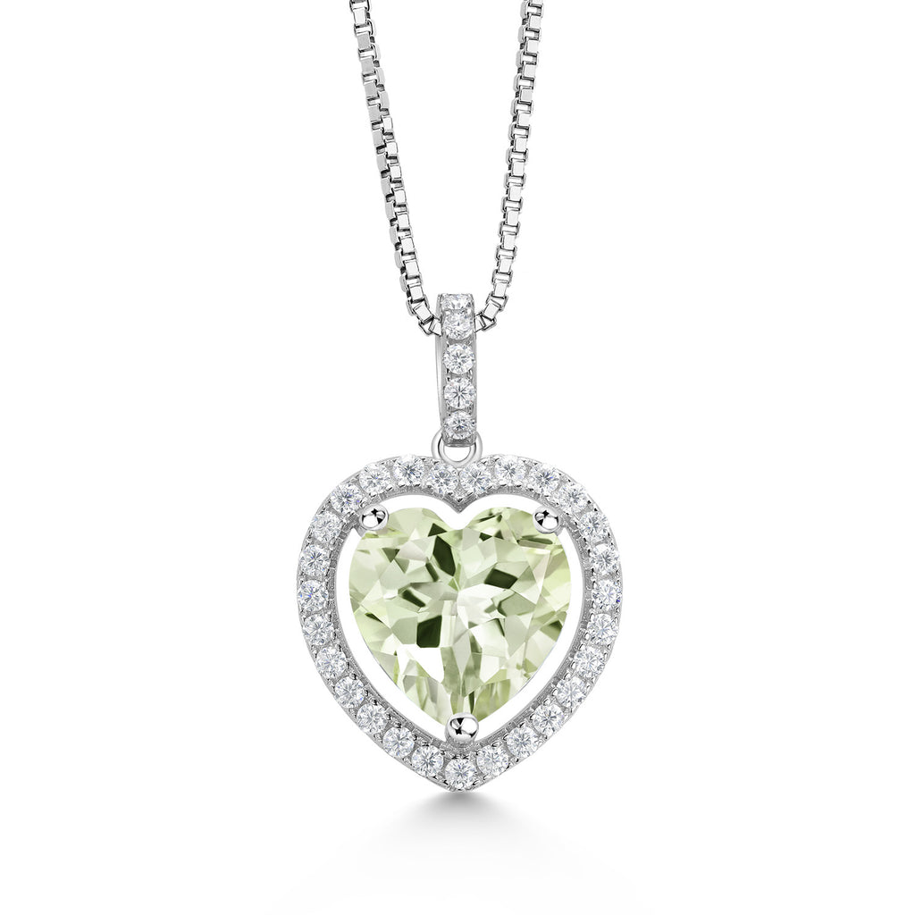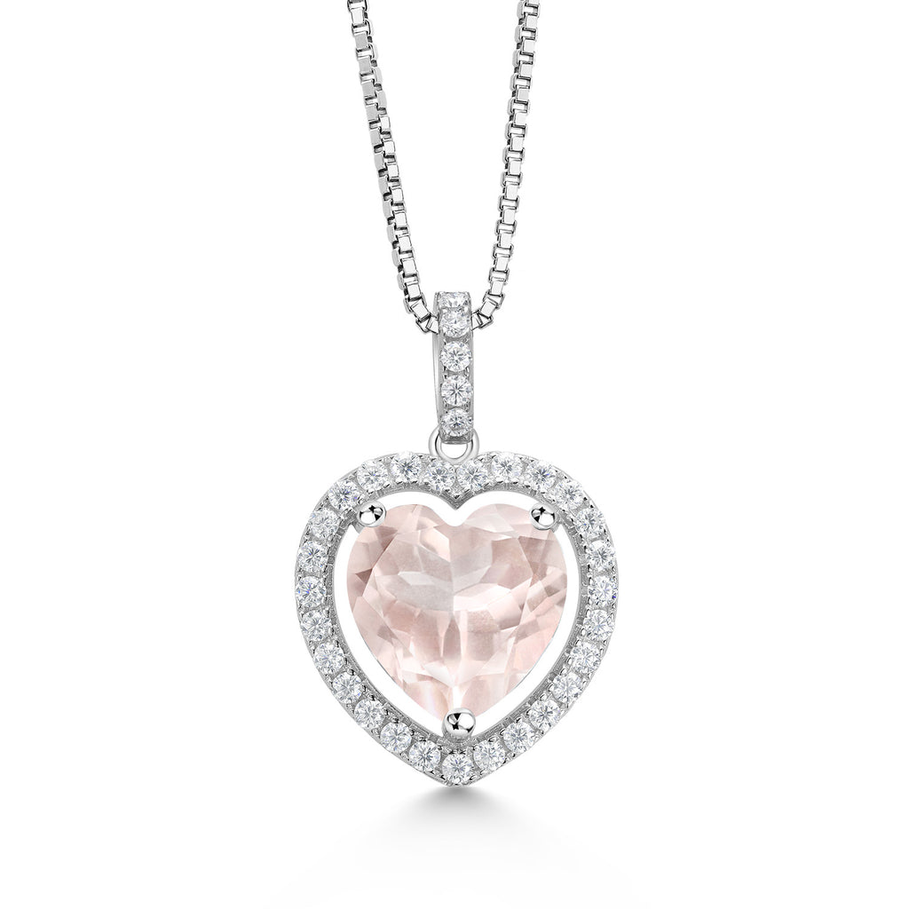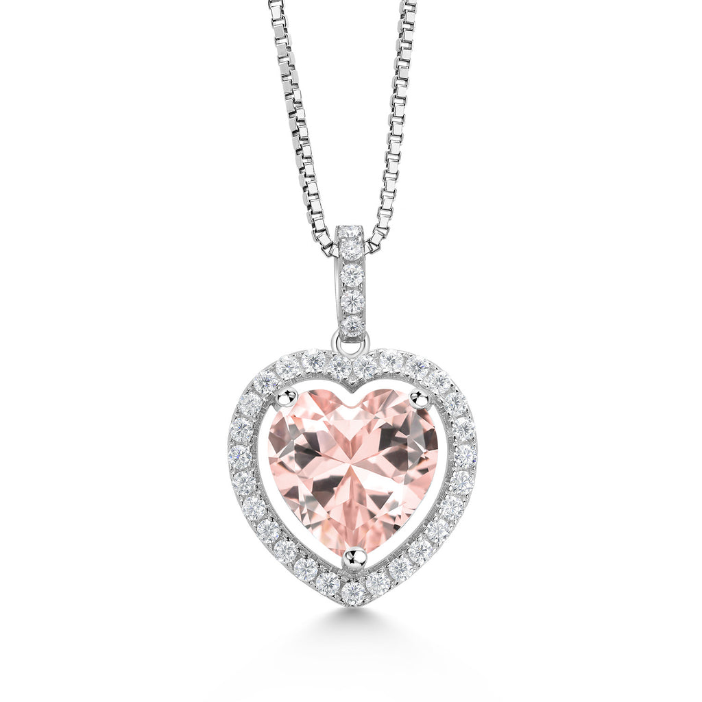 RADIANT GLAMOUR: With its combination of a heart-shaped gemstone, white moissanite halo, and sterling silver, this pendant necklace emanates glamour and grace, offering a shimmering brilliance that catches the light and enhances your overall look with a touch of luxury.