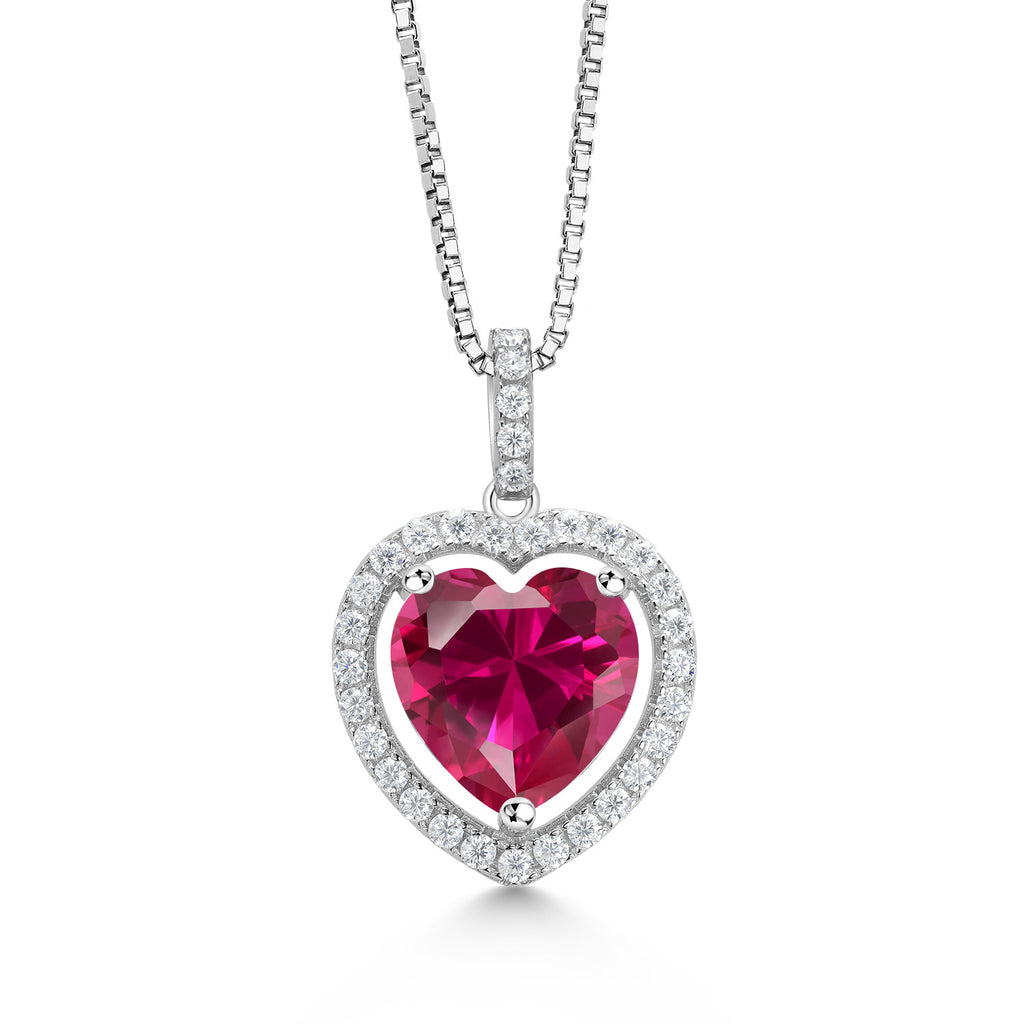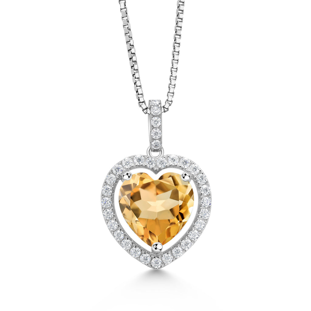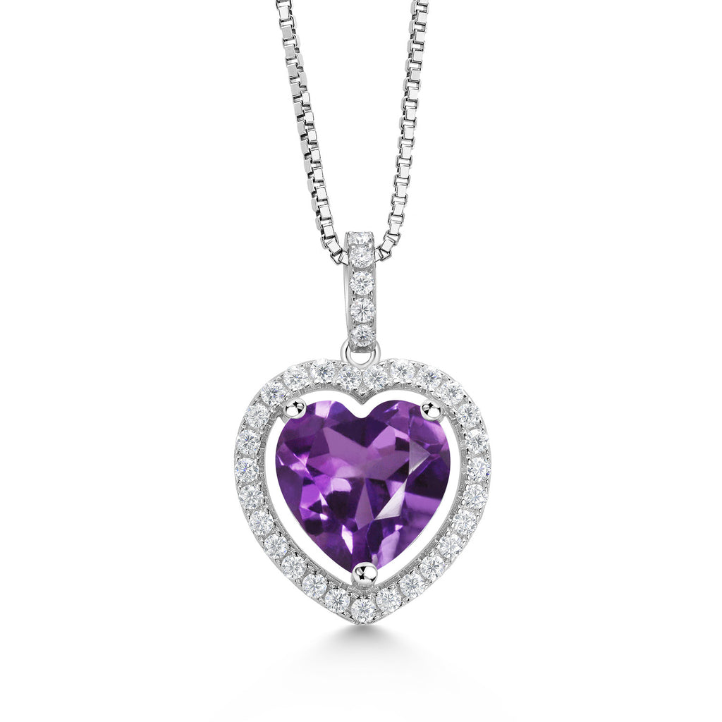 RADIANT GLAMOUR: With its combination of a heart-shaped gemstone, white moissanite halo, and sterling silver, this pendant necklace emanates glamour and grace, offering a shimmering brilliance that catches the light and enhances your overall look with a touch of luxury.