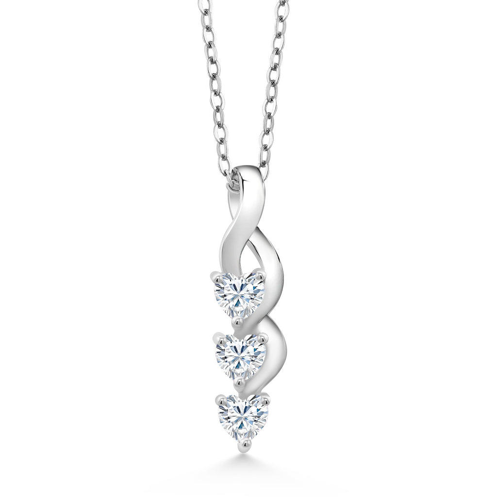3-Stone Pendant Necklace For Women | 4MM Heart Shape Gemstone Birthstone | 925 Sterling Silver | Fine Jewelry Gifts for Her Mom Women Wife | With 18 Inch Silver Chain