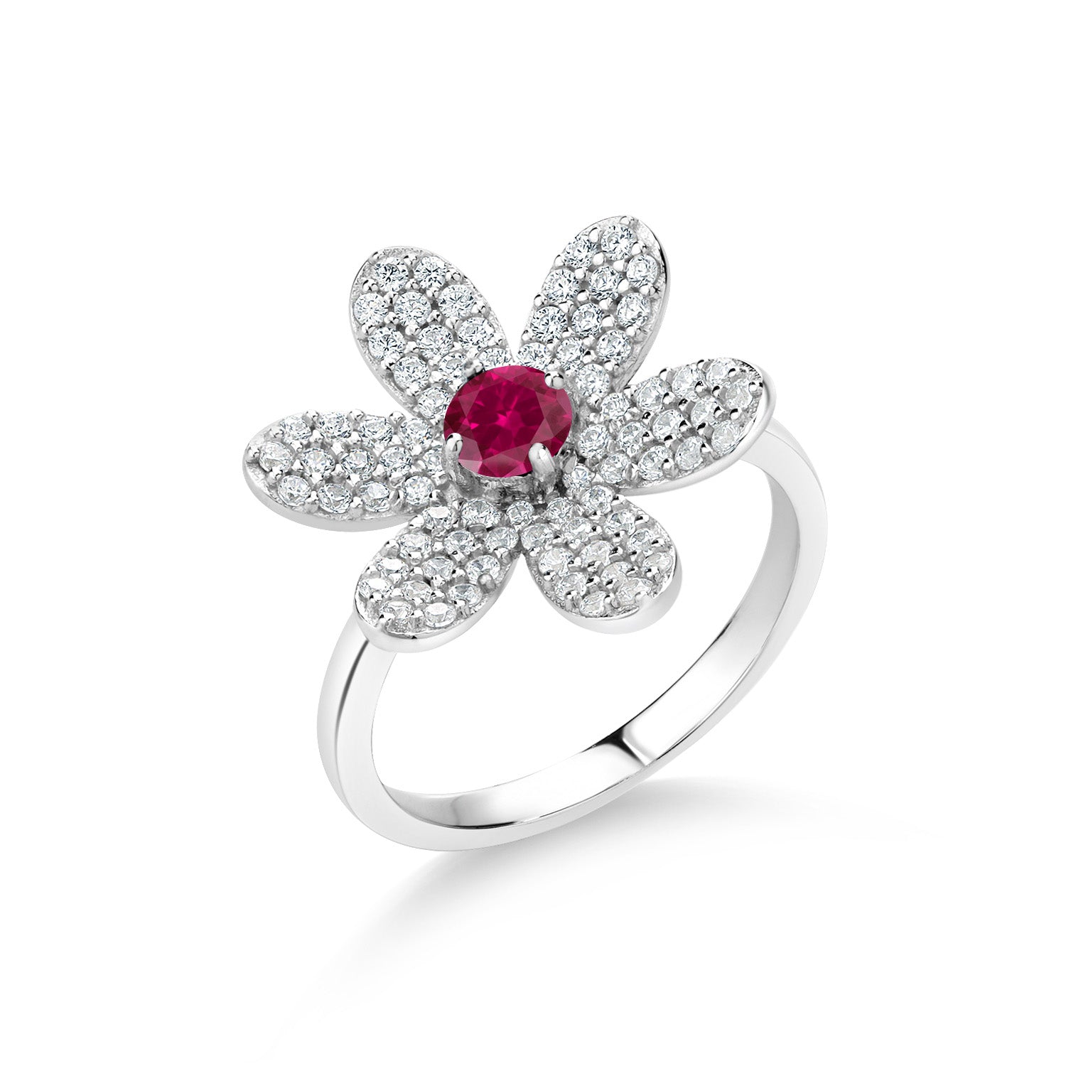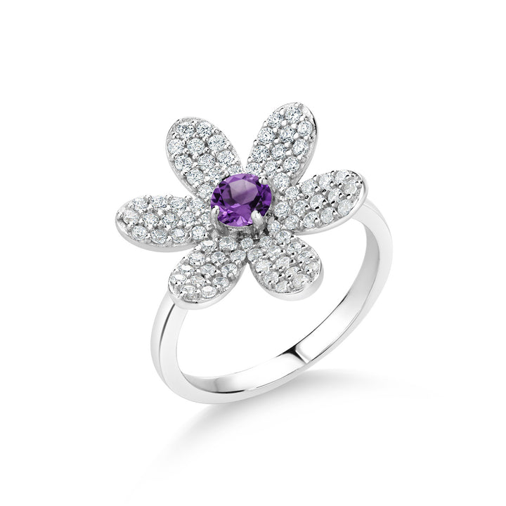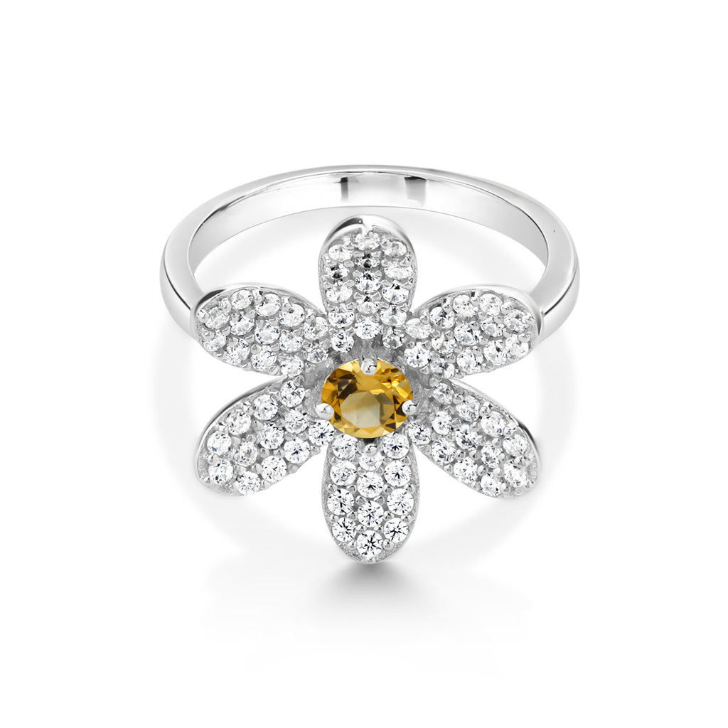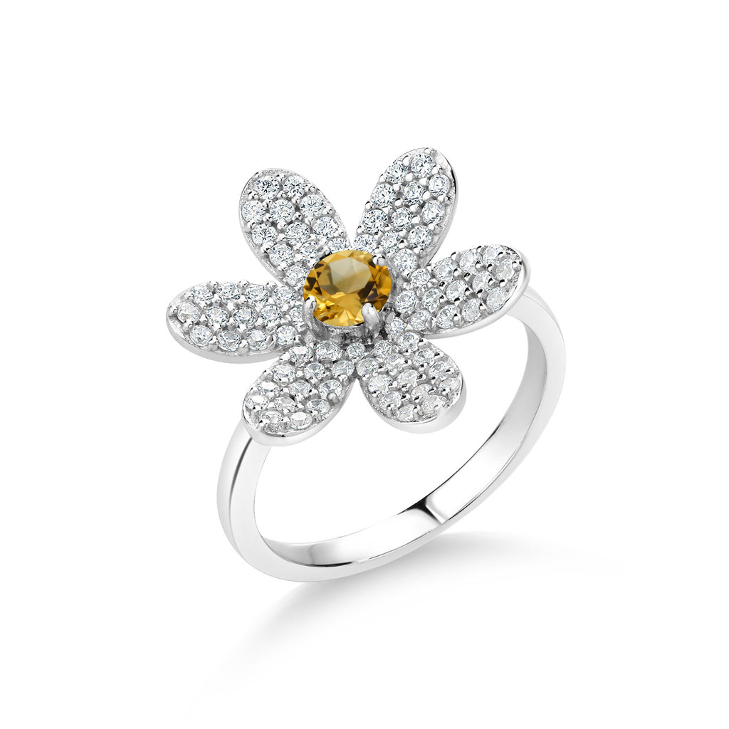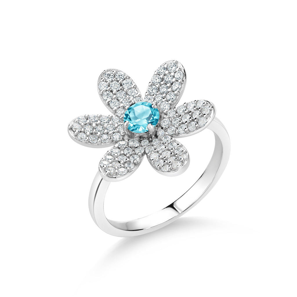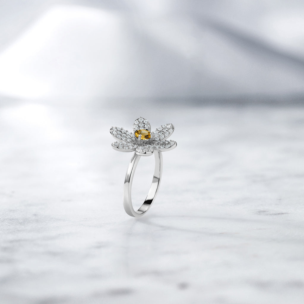 CHARMING FLORAL DESIGN: This beautiful ring features a delicate flower motif, adorned with a 4MM round gemstone birthstone at its center. The intricate detailing adds a touch of nature-inspired elegance to your jewelry collection.