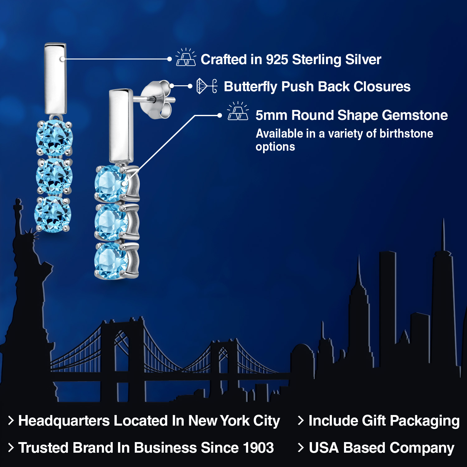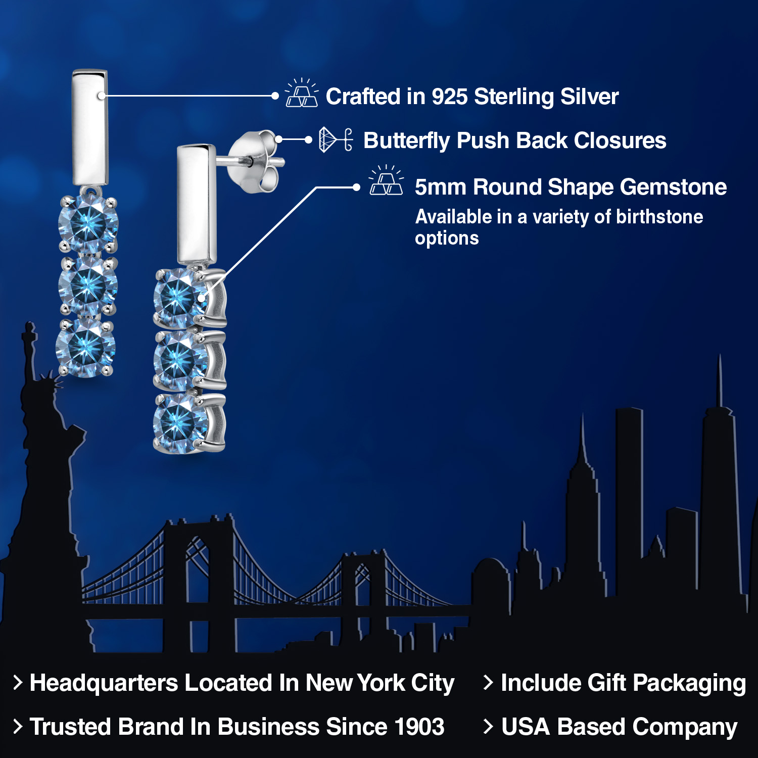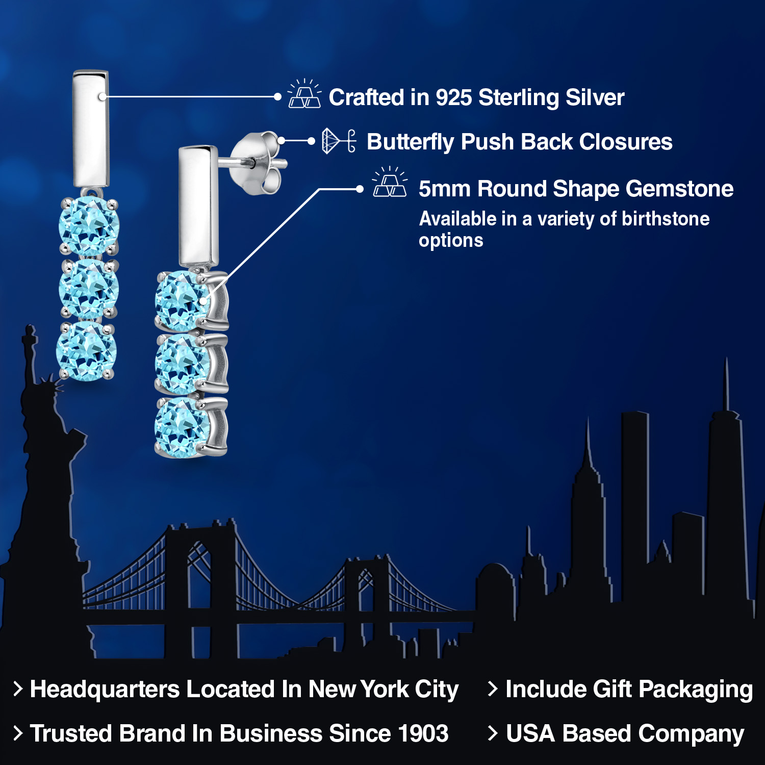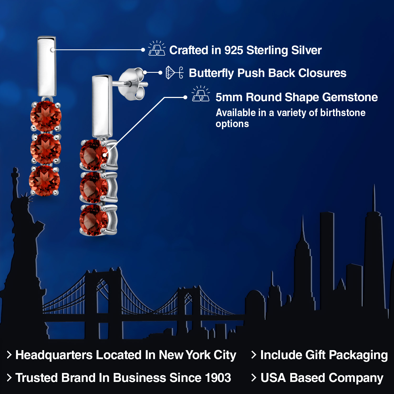 ELEGANT 3-STONE DROP DANGLE DESIGN: These earrings feature a sophisticated 3-stone drop dangle design, showcasing 5MM round gemstone birthstones. The arrangement of the stones creates a dynamic and eye-catching effect, perfect for adding a touch of elegance to any outfit.
