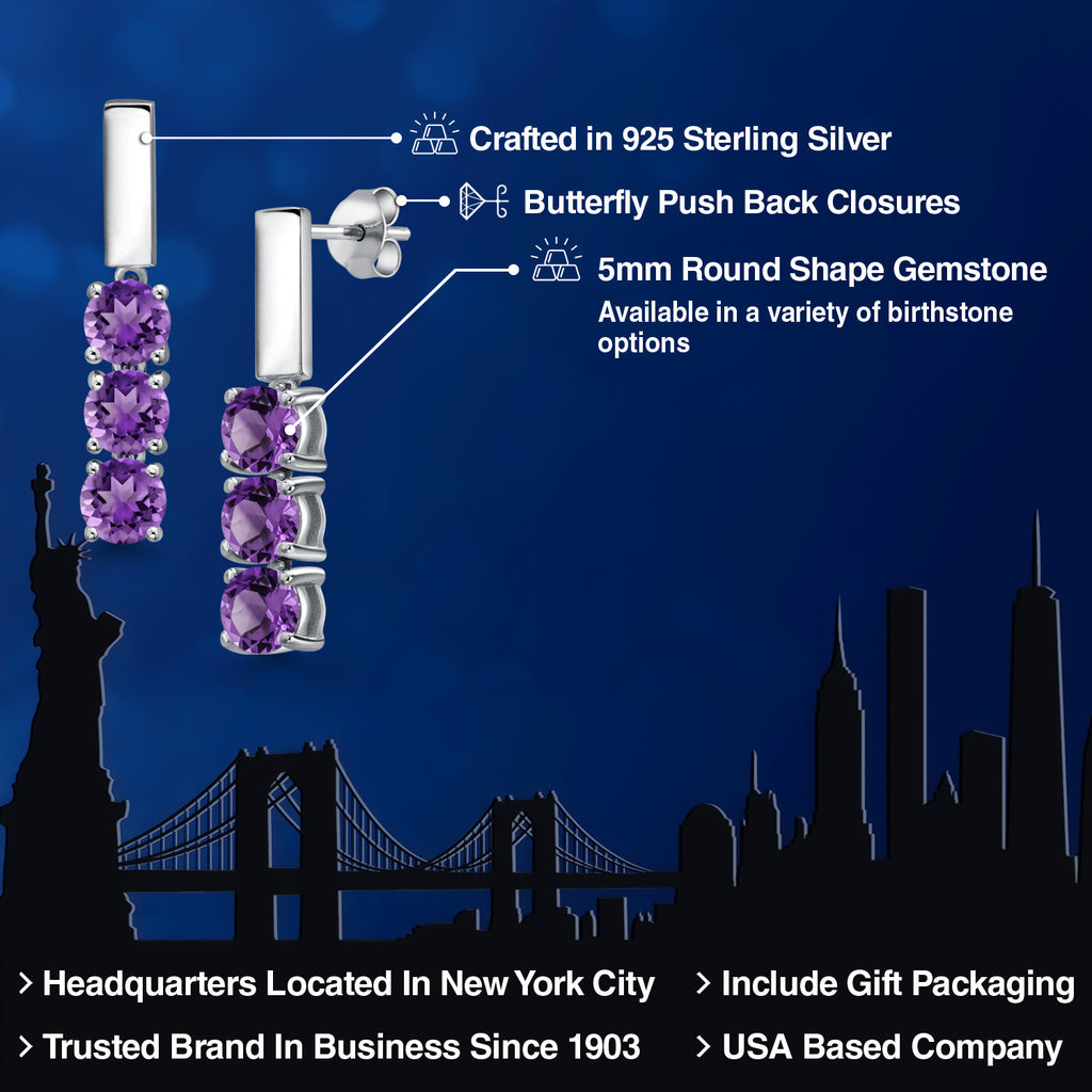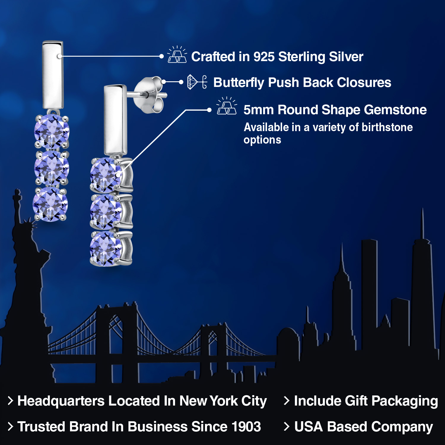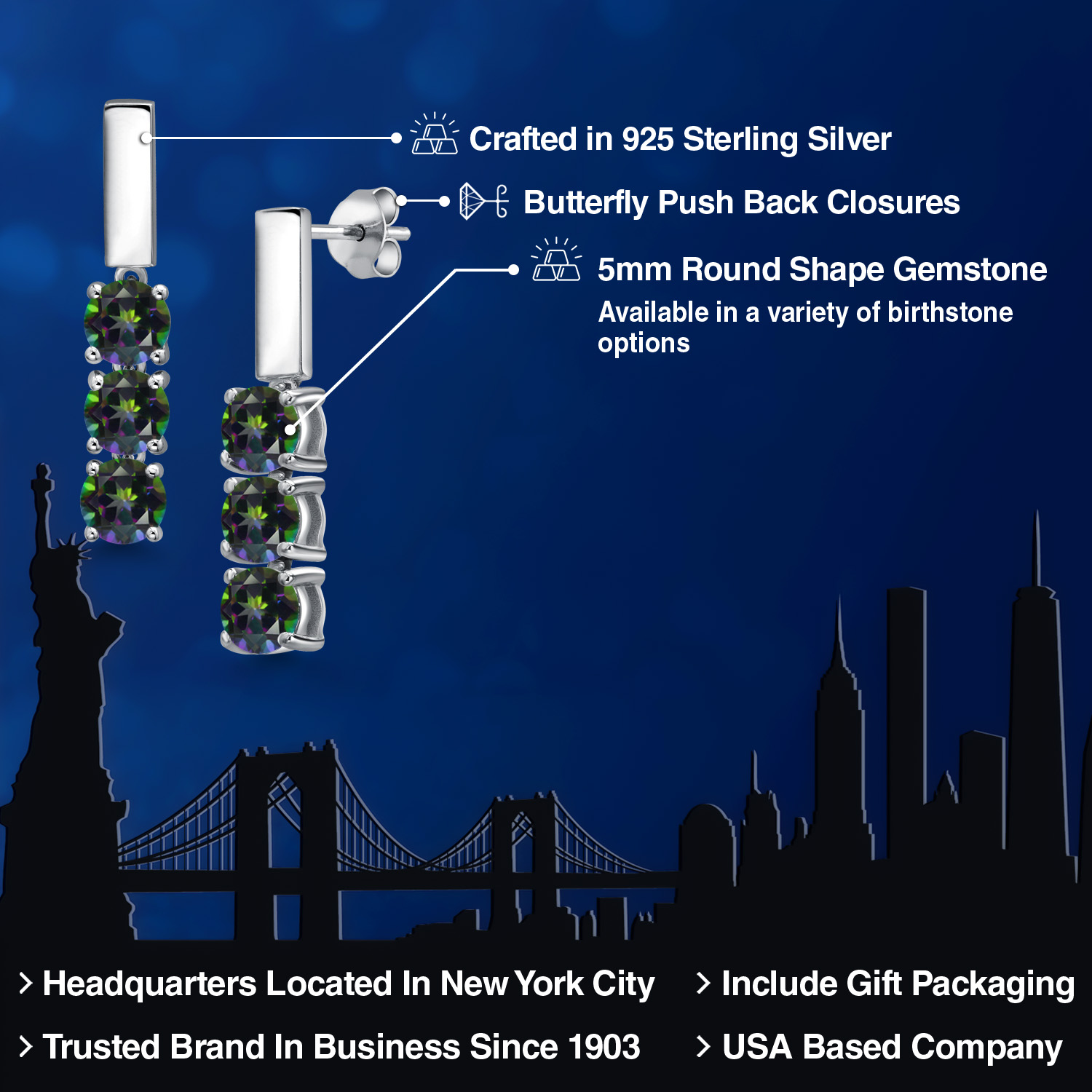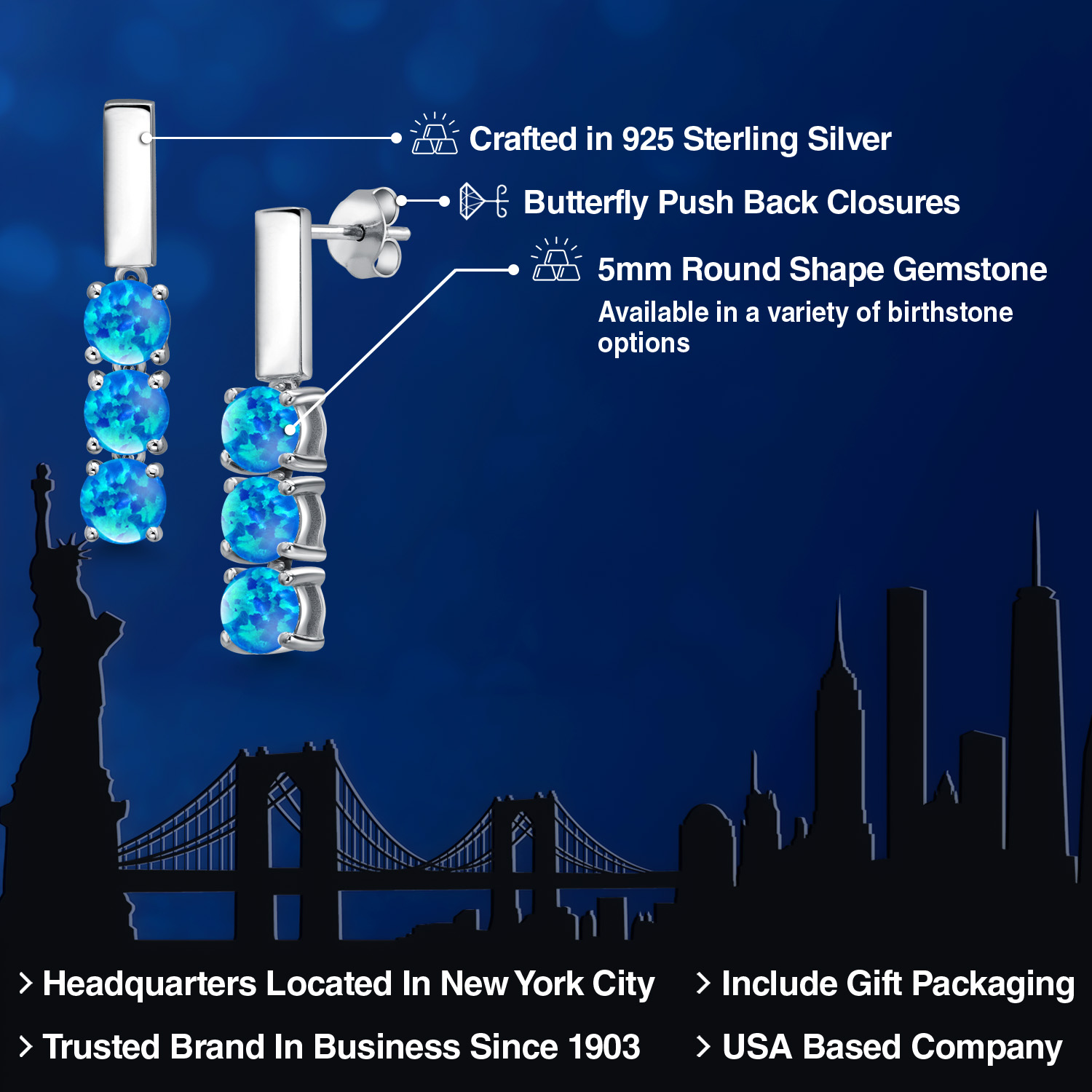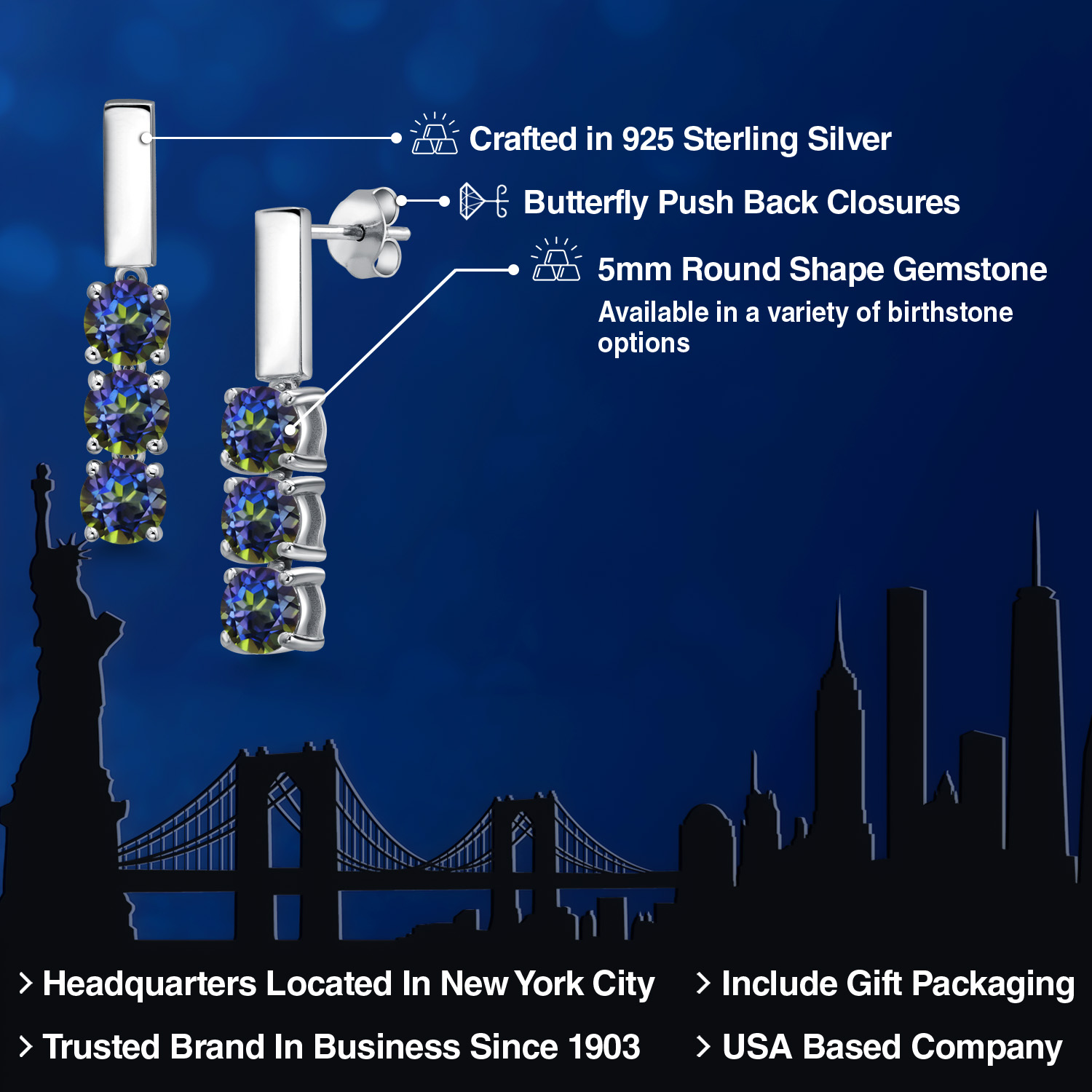 ELEGANT 3-STONE DROP DANGLE DESIGN: These earrings feature a sophisticated 3-stone drop dangle design, showcasing 5MM round gemstone birthstones. The arrangement of the stones creates a dynamic and eye-catching effect, perfect for adding a touch of elegance to any outfit.