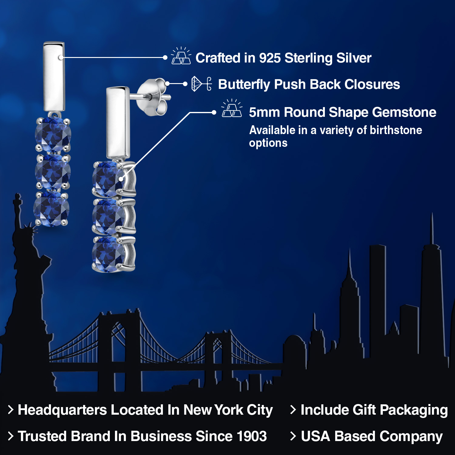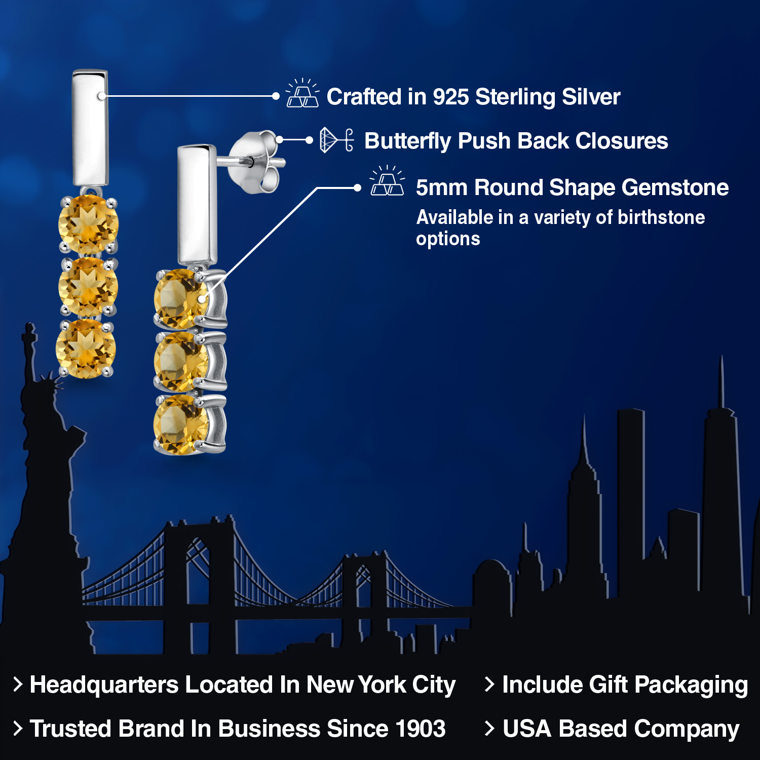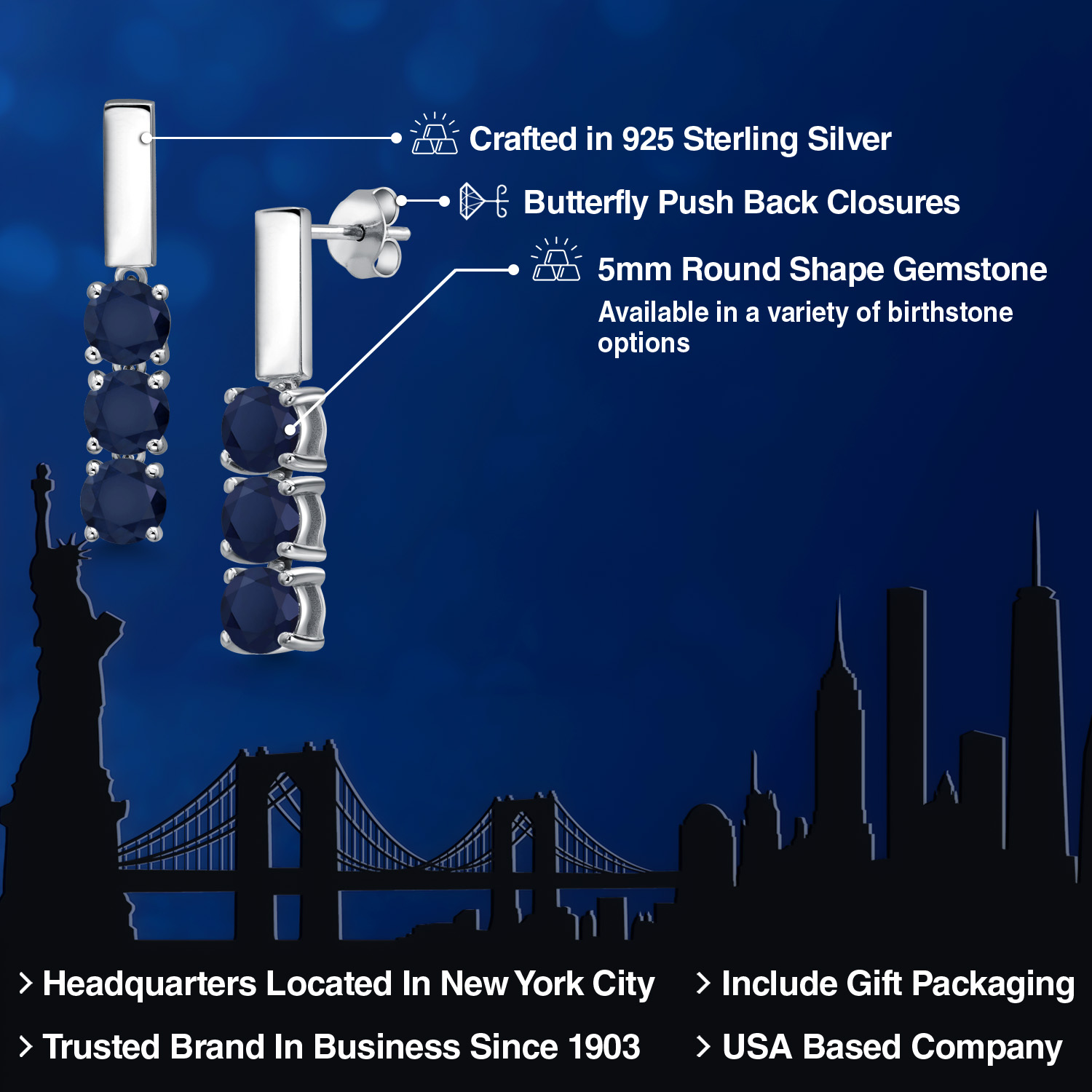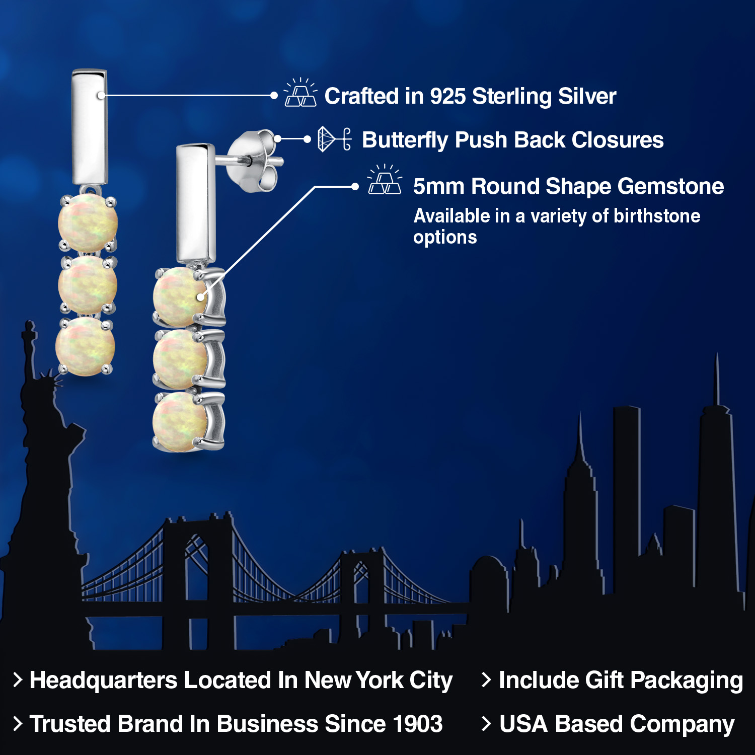 ELEGANT 3-STONE DROP DANGLE DESIGN: These earrings feature a sophisticated 3-stone drop dangle design, showcasing 5MM round gemstone birthstones. The arrangement of the stones creates a dynamic and eye-catching effect, perfect for adding a touch of elegance to any outfit.