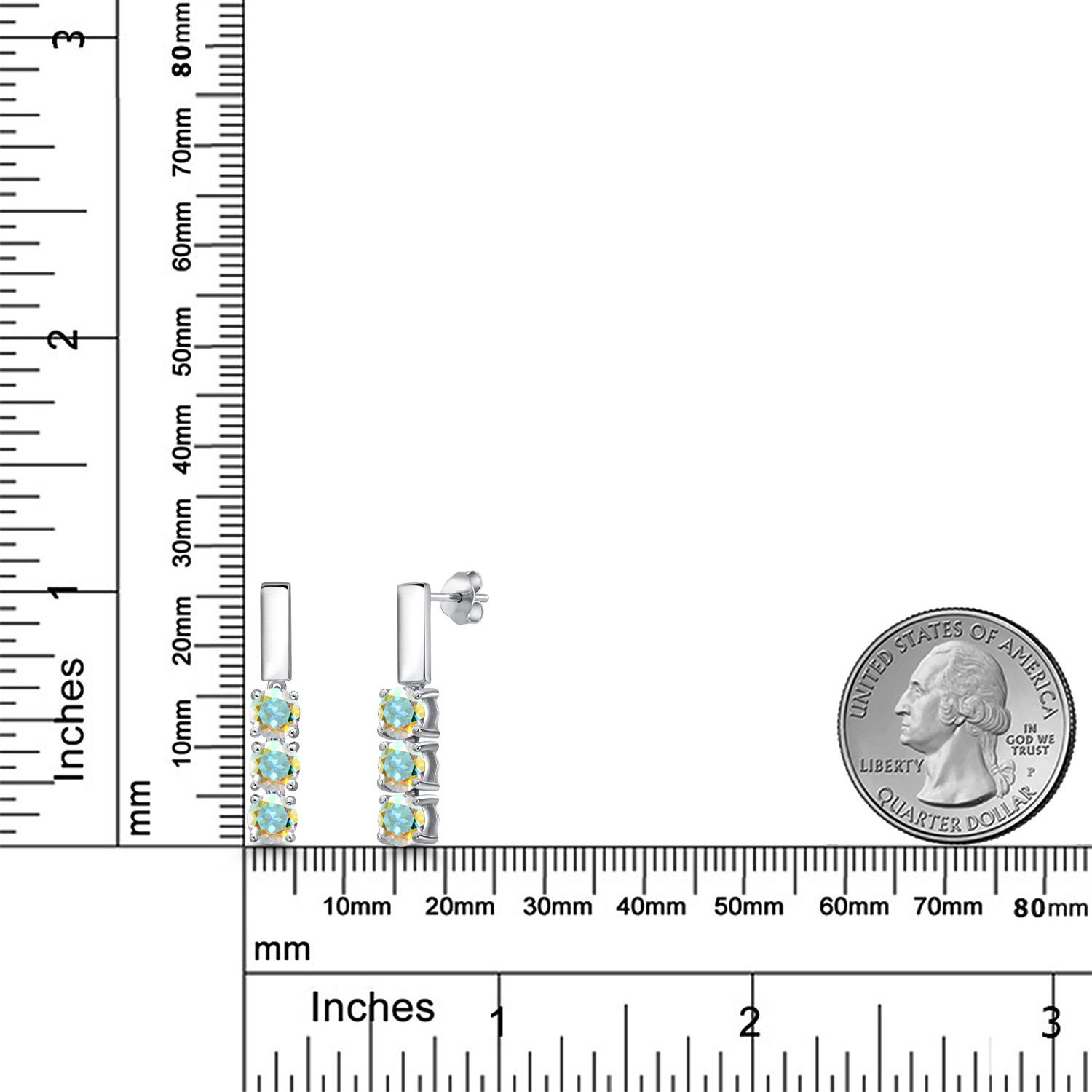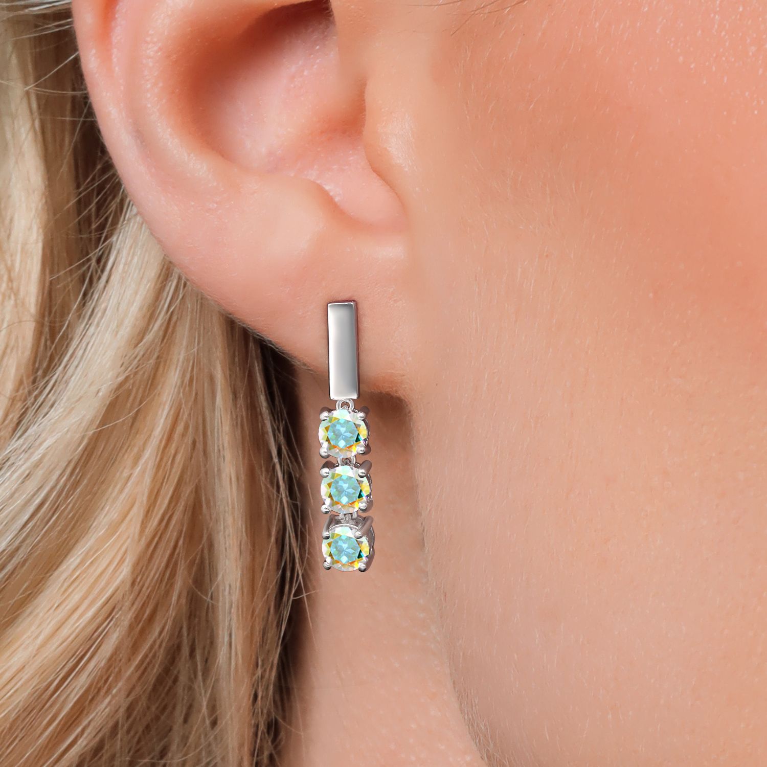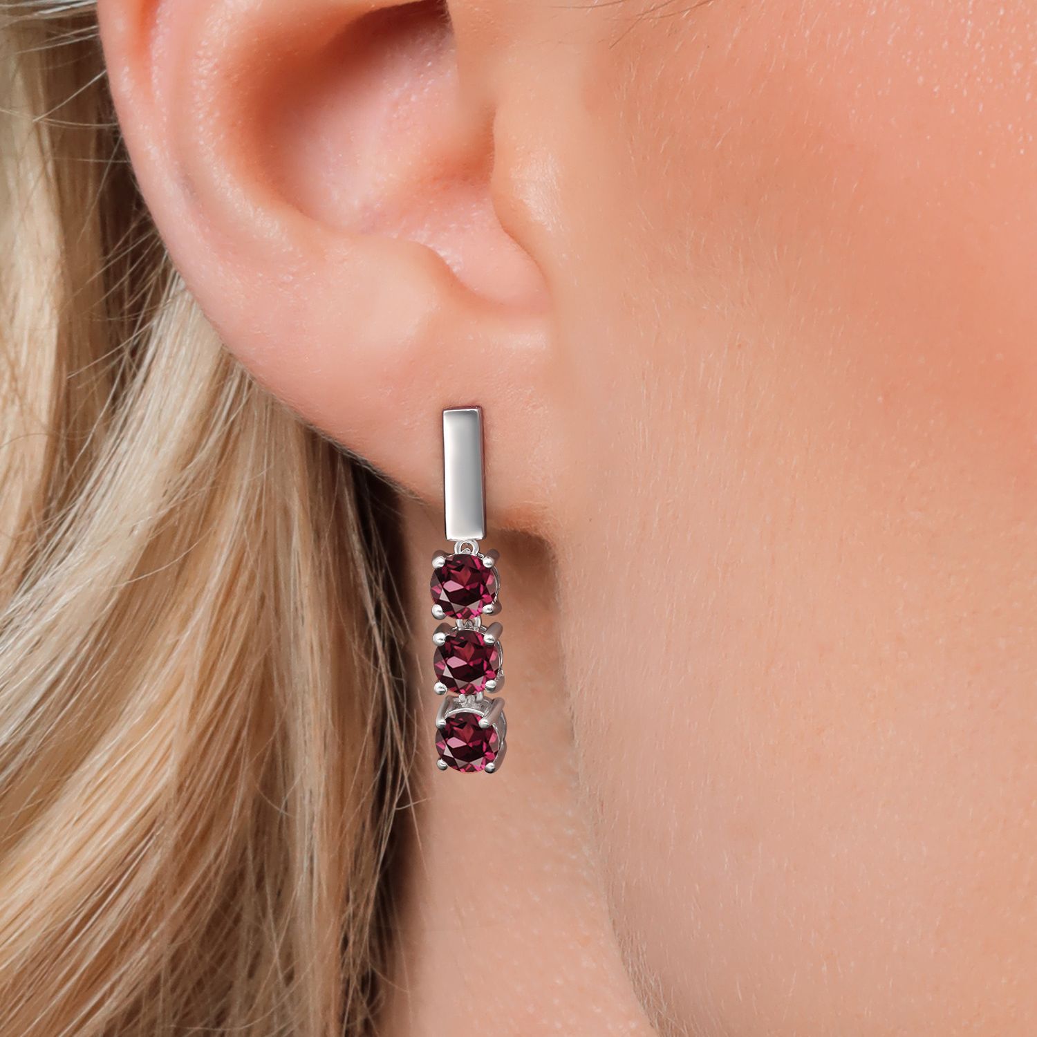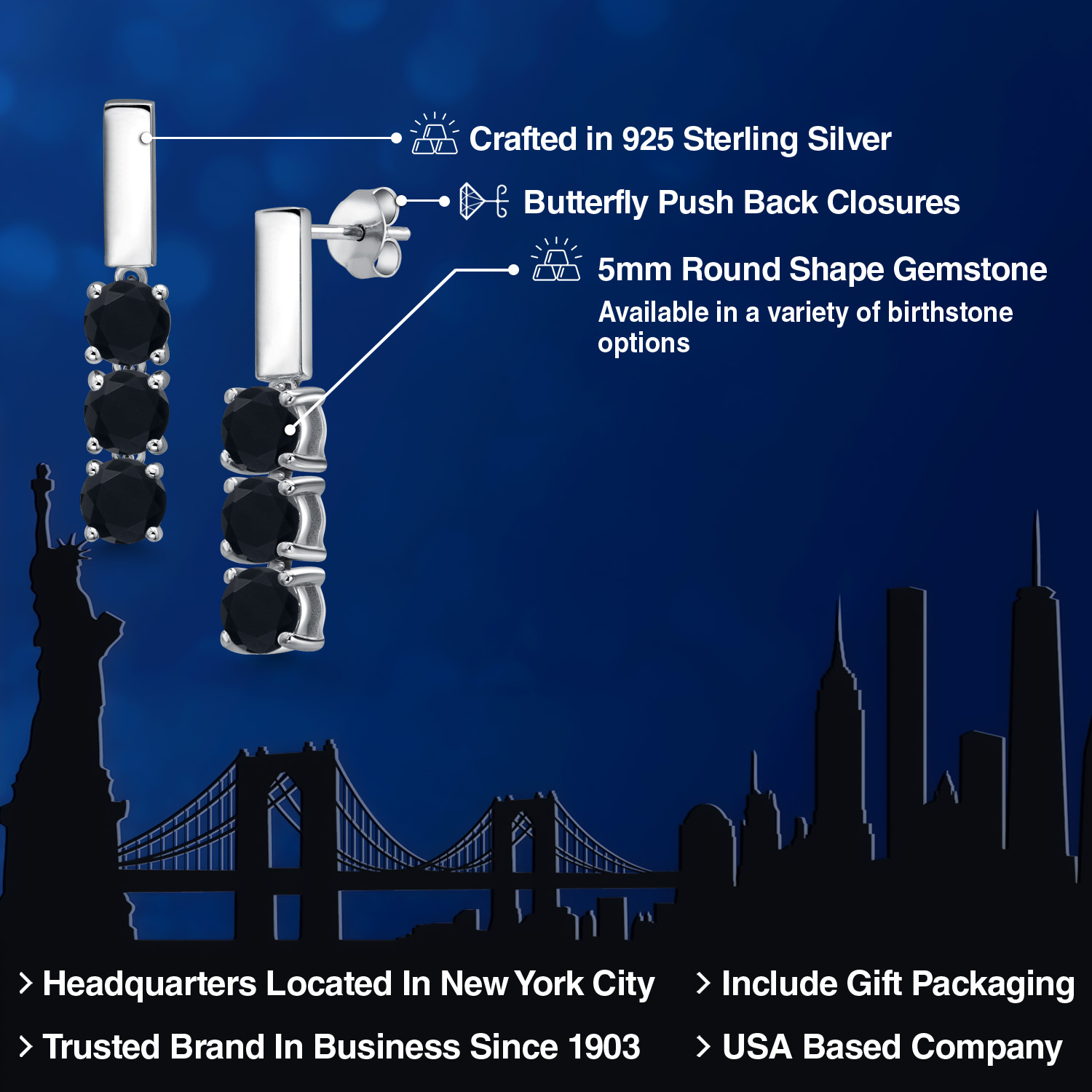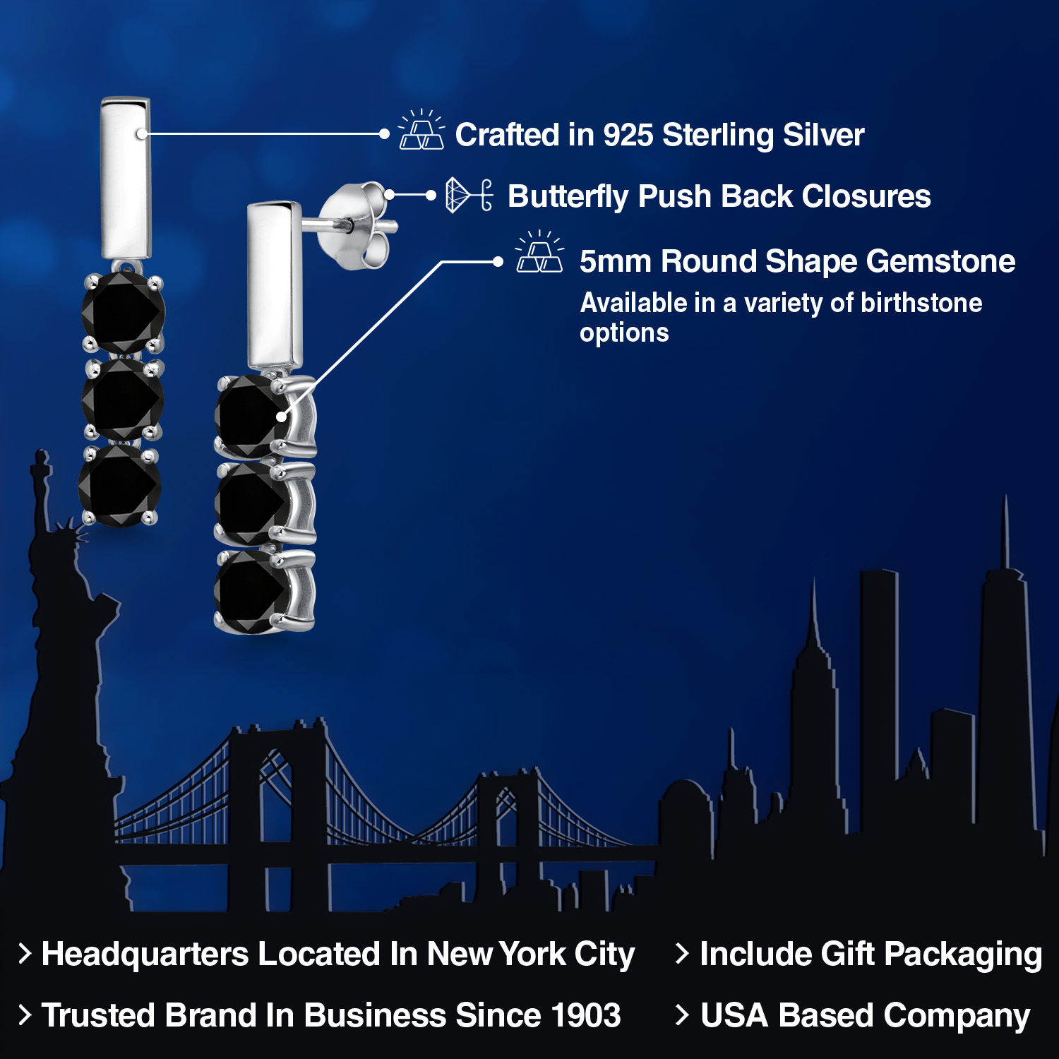 ELEGANT 3-STONE DROP DANGLE DESIGN: These earrings feature a sophisticated 3-stone drop dangle design, showcasing 5MM round gemstone birthstones. The arrangement of the stones creates a dynamic and eye-catching effect, perfect for adding a touch of elegance to any outfit.