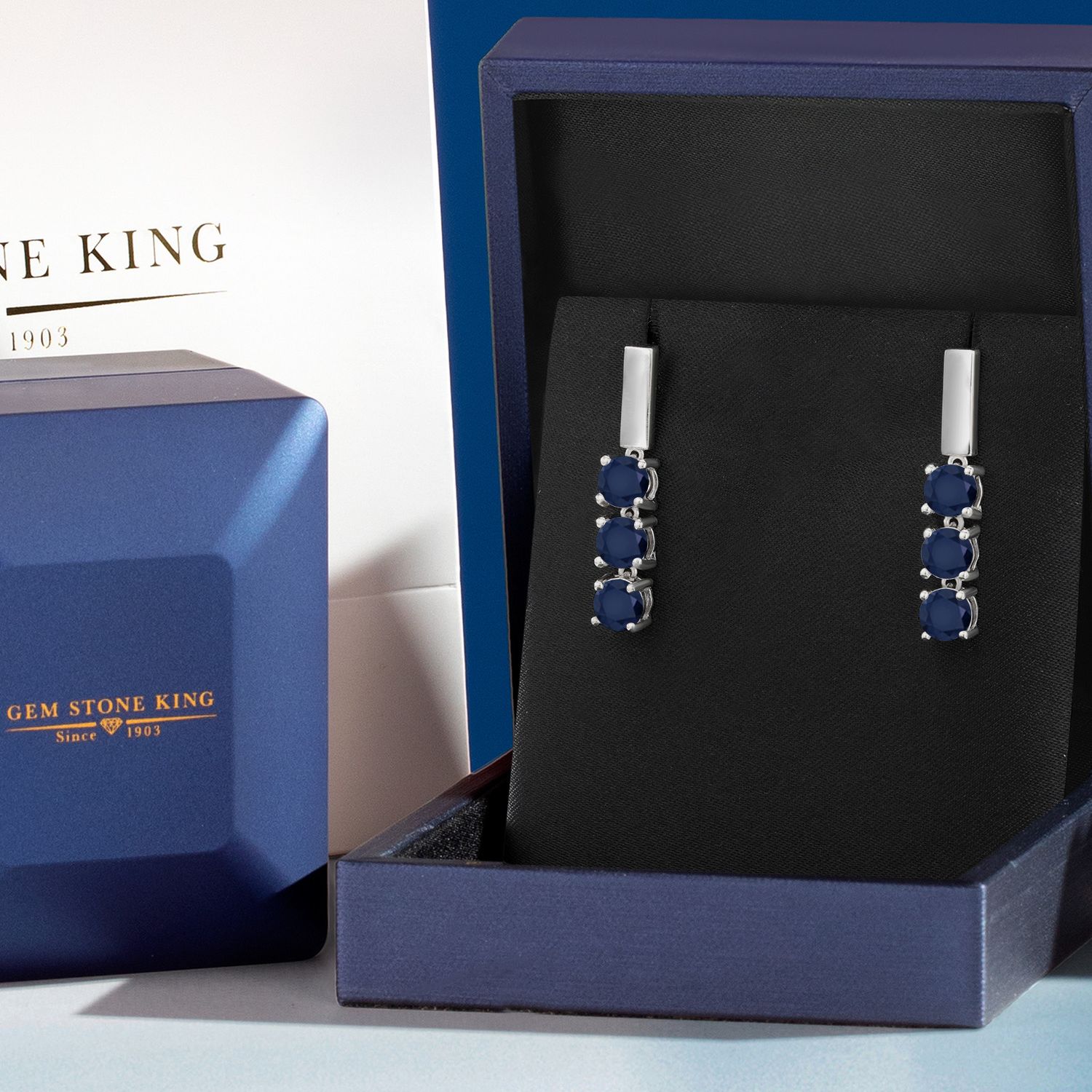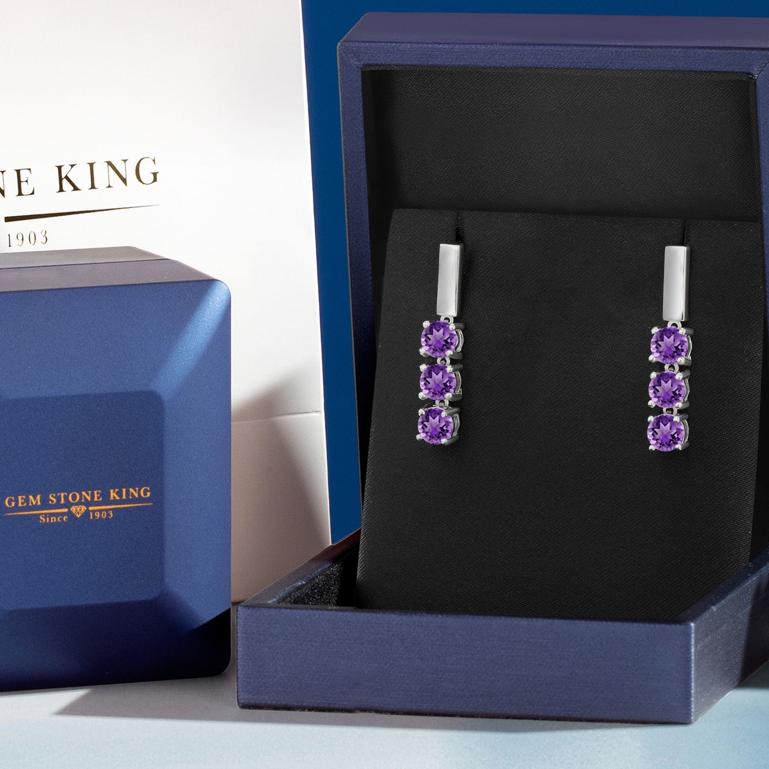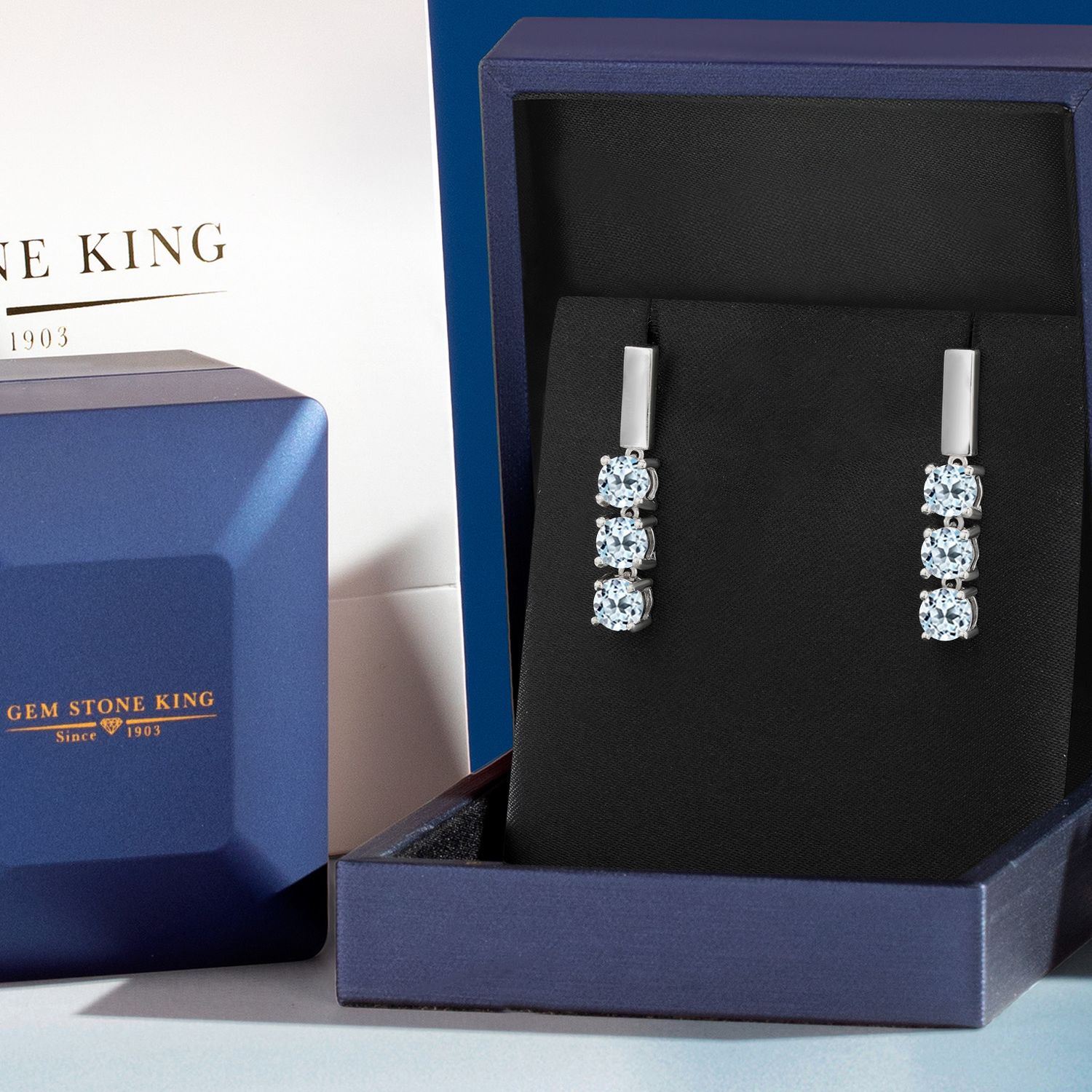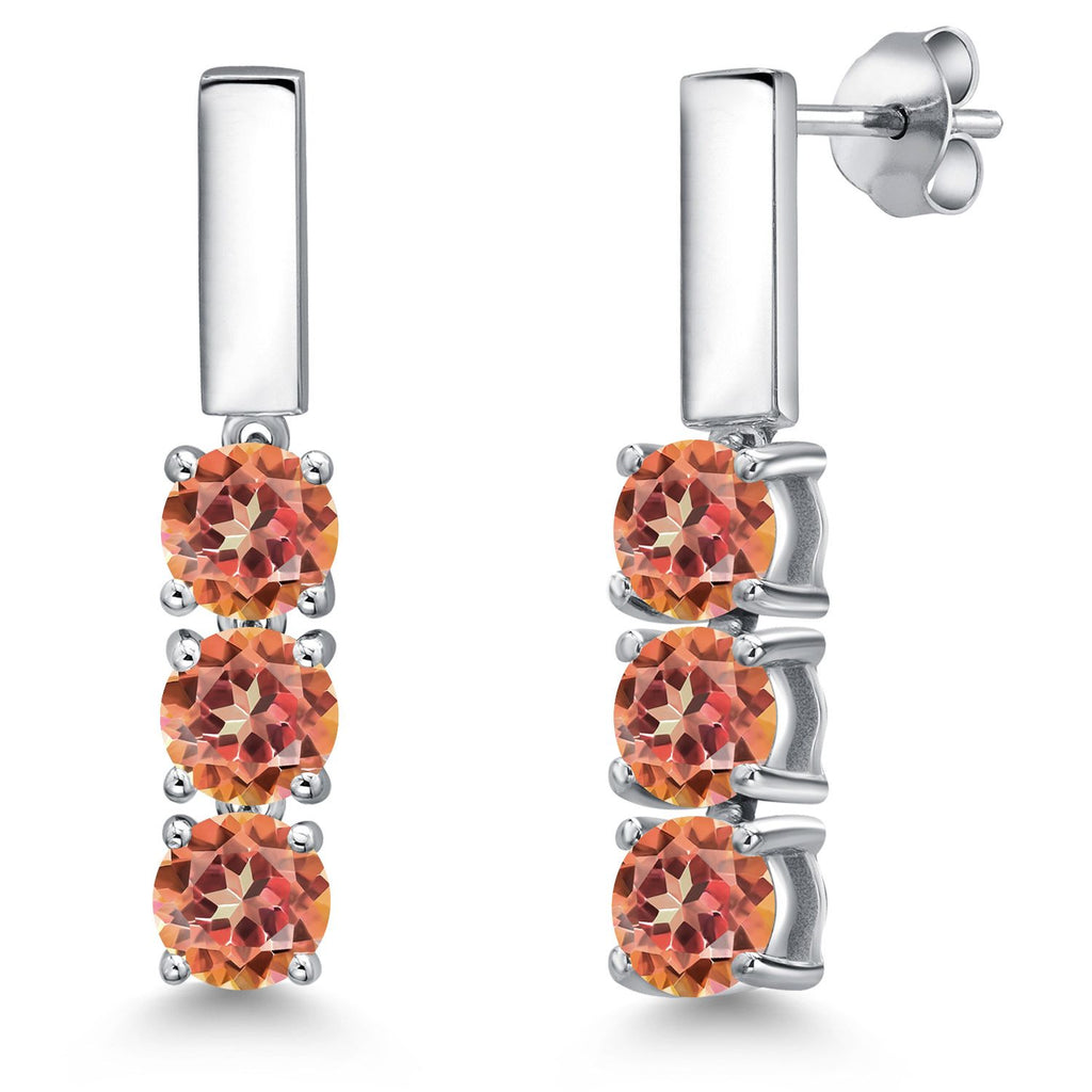 ELEGANT 3-STONE DROP DANGLE DESIGN: These earrings feature a sophisticated 3-stone drop dangle design, showcasing 5MM round gemstone birthstones. The arrangement of the stones creates a dynamic and eye-catching effect, perfect for adding a touch of elegance to any outfit.