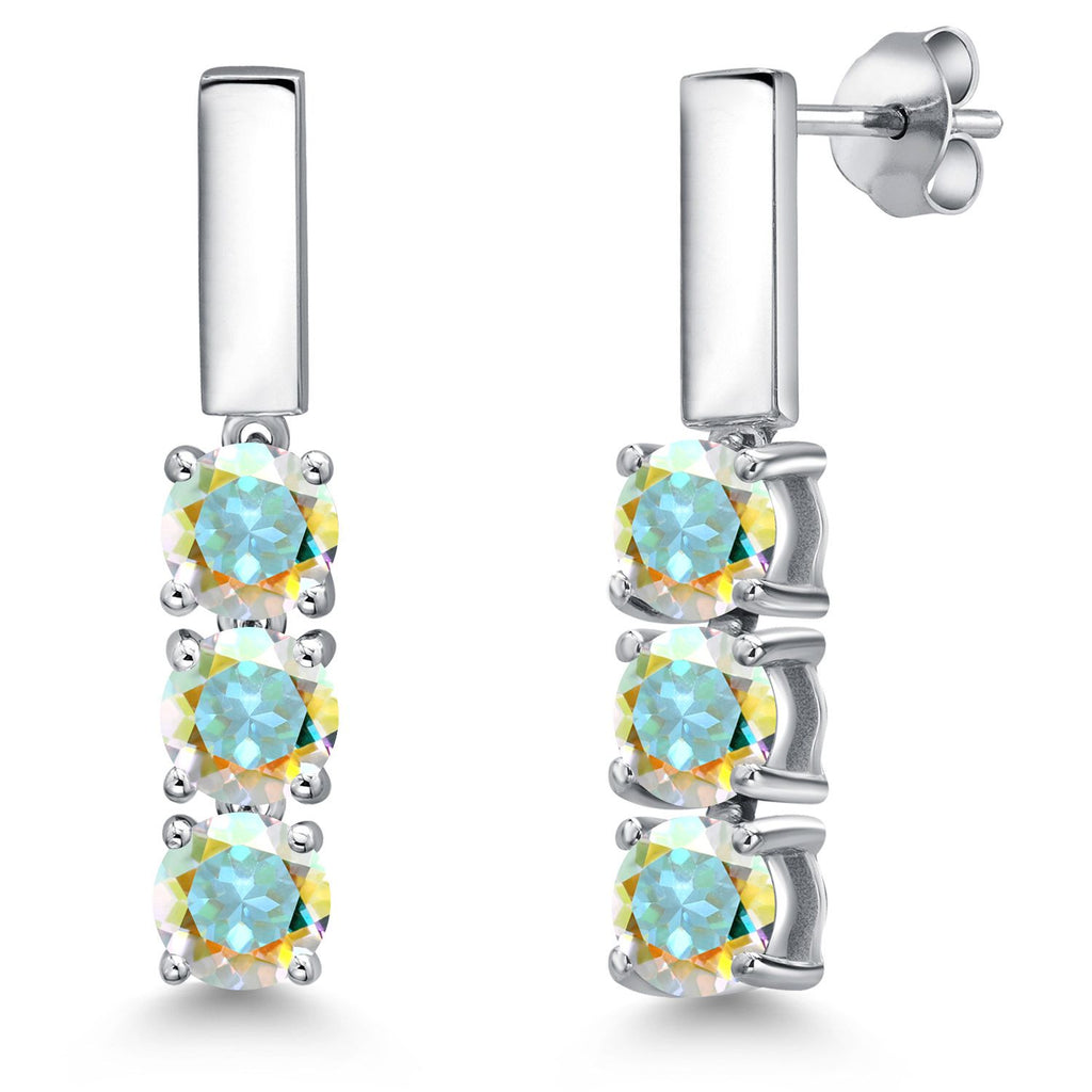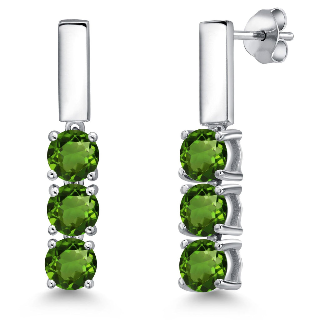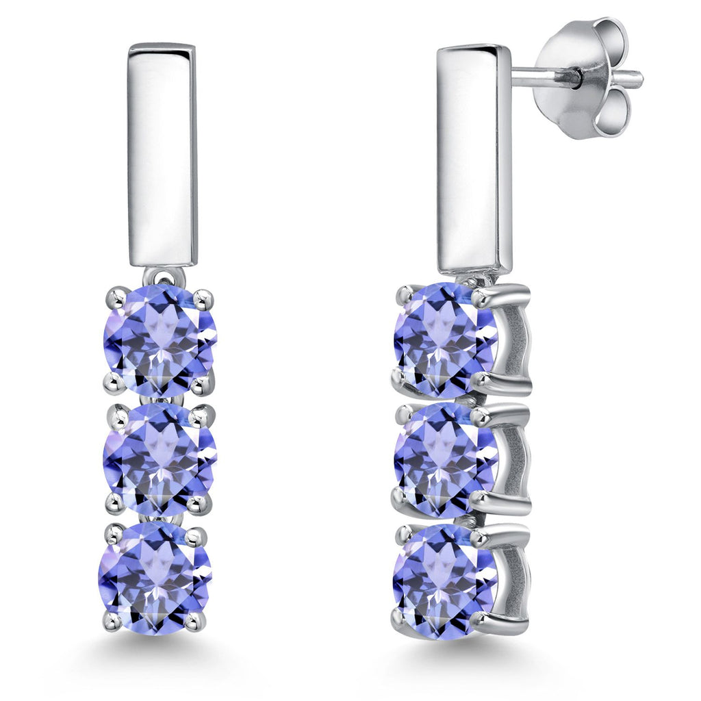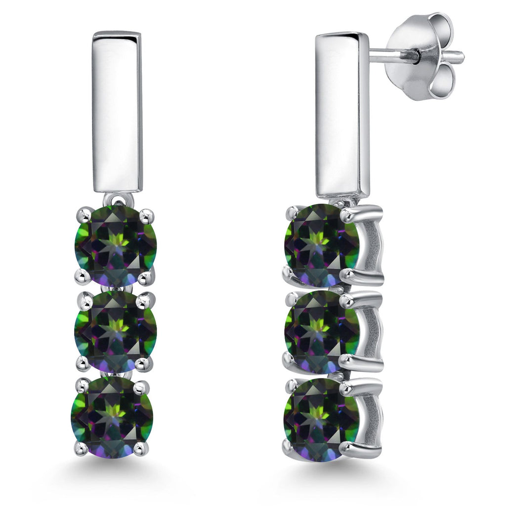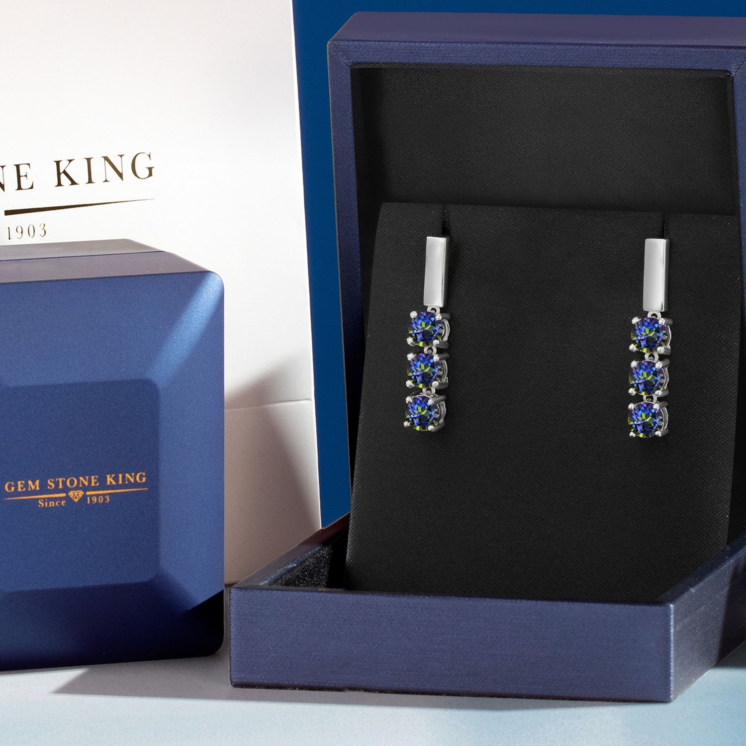 ELEGANT 3-STONE DROP DANGLE DESIGN: These earrings feature a sophisticated 3-stone drop dangle design, showcasing 5MM round gemstone birthstones. The arrangement of the stones creates a dynamic and eye-catching effect, perfect for adding a touch of elegance to any outfit.