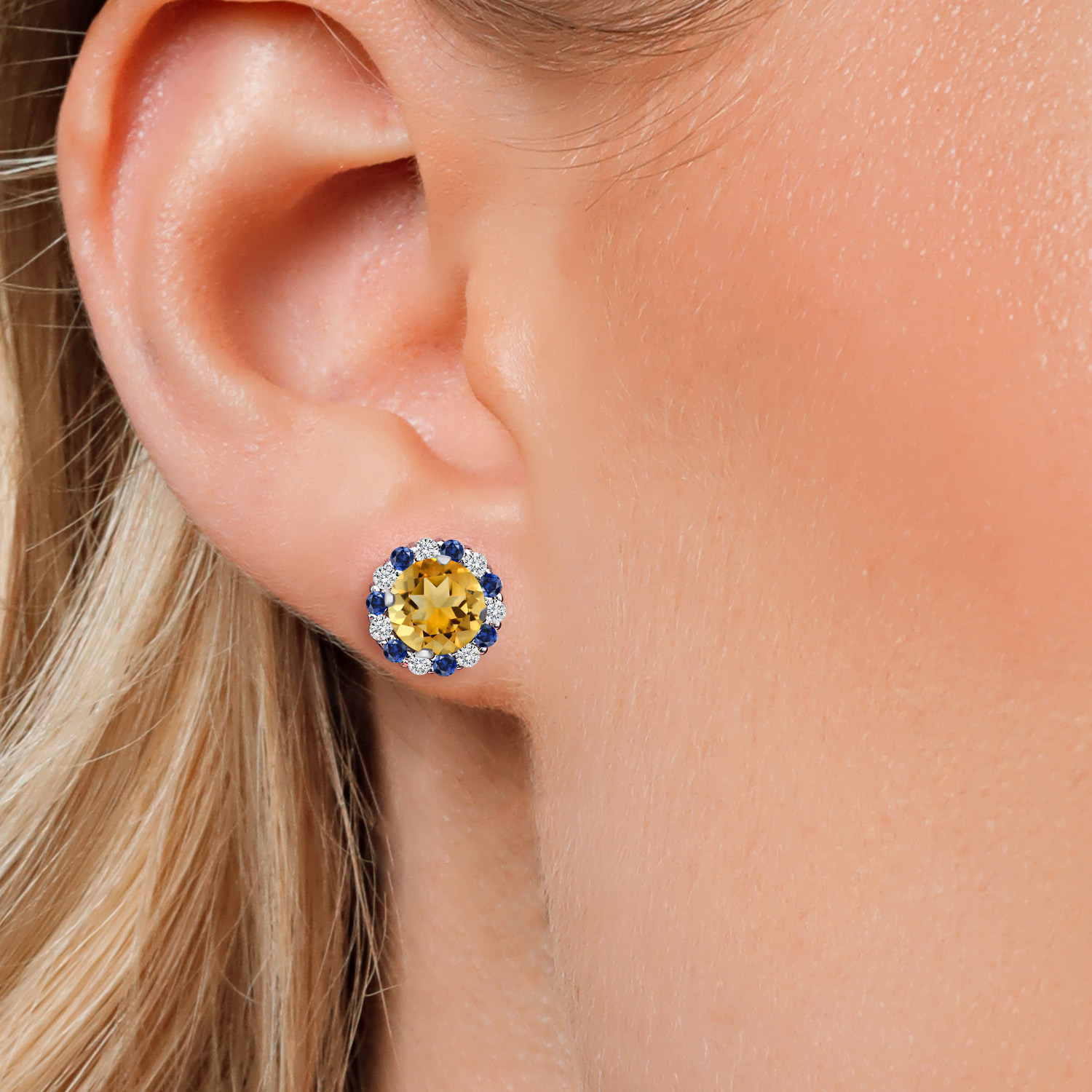 925 Sterling Silver 6MM Round Gemstone Birthstone Halo Stud Earrings for Women with Removable Jackets