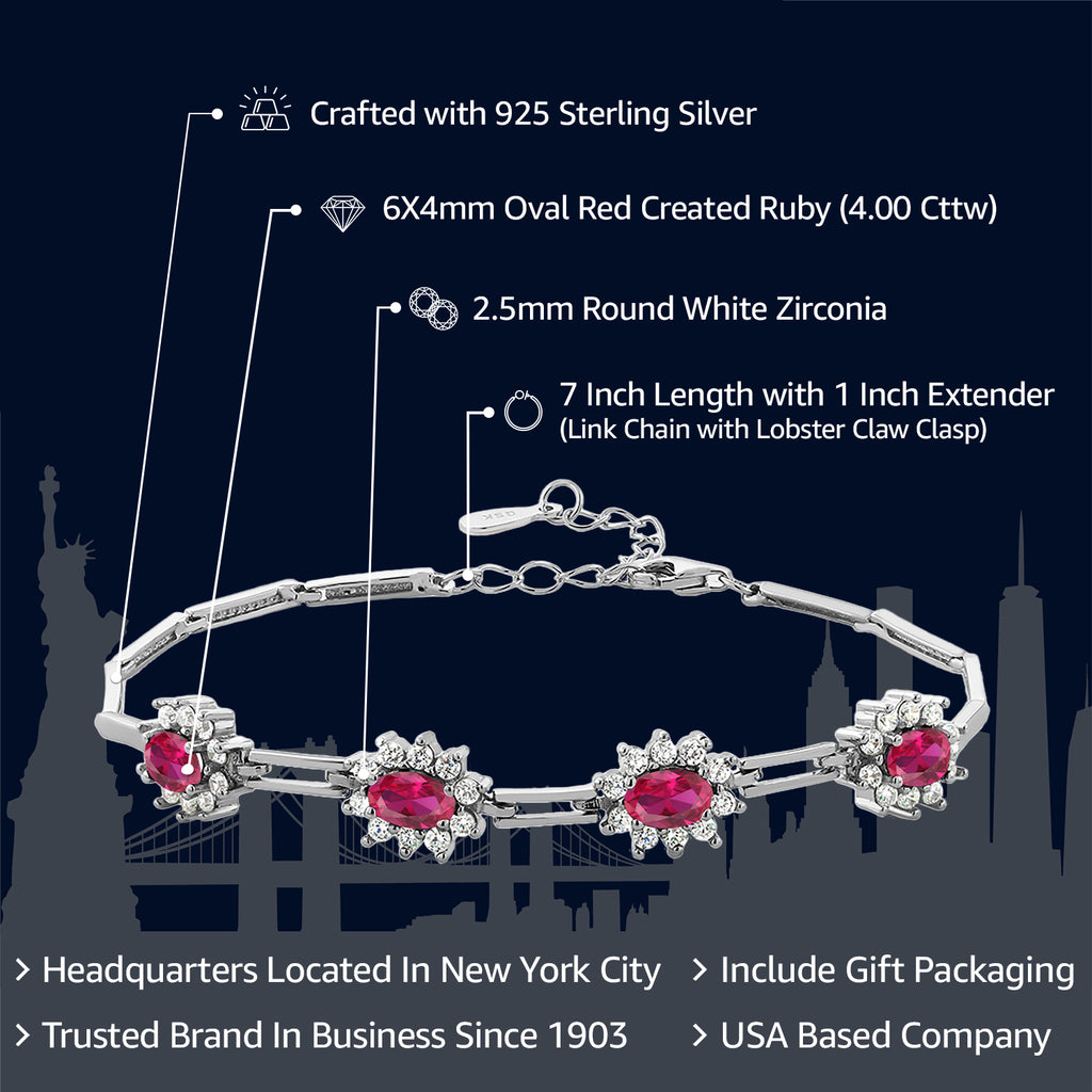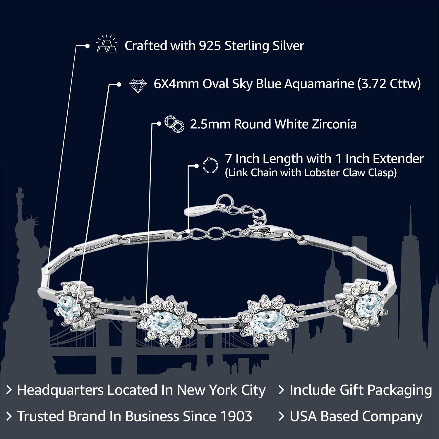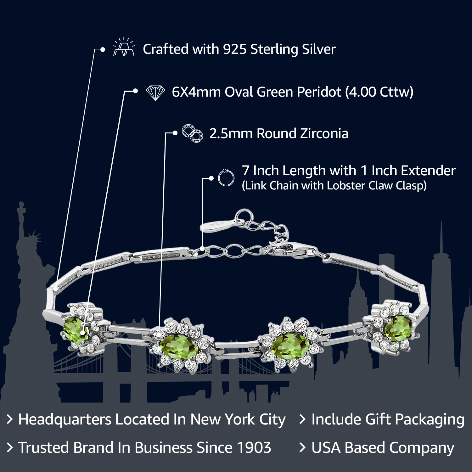 3-5 Cttw Gemstone Birthstone 4-Stone Tennis Bracelet For Women | 925 Sterling Silver | Oval 6X4MM | 7 Inch with 1 Inch Extender | Fine Jewelry Gifts for Her Mom Women Wife