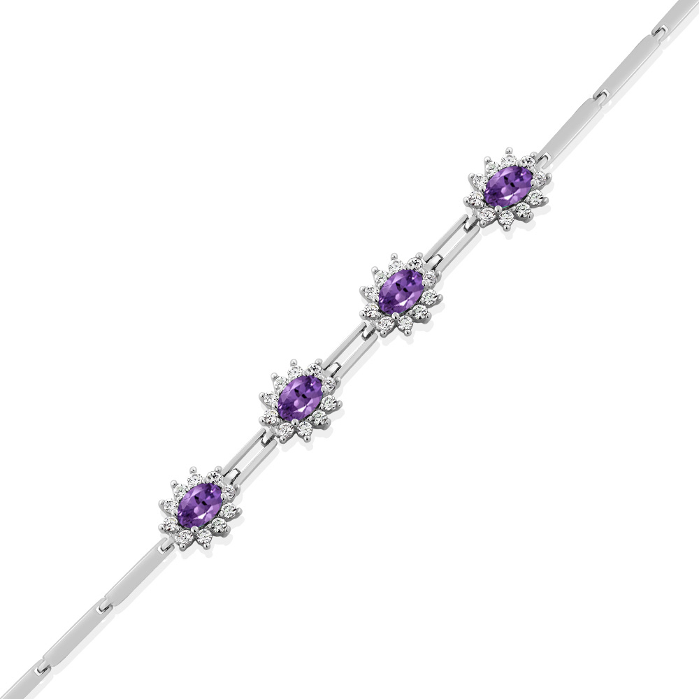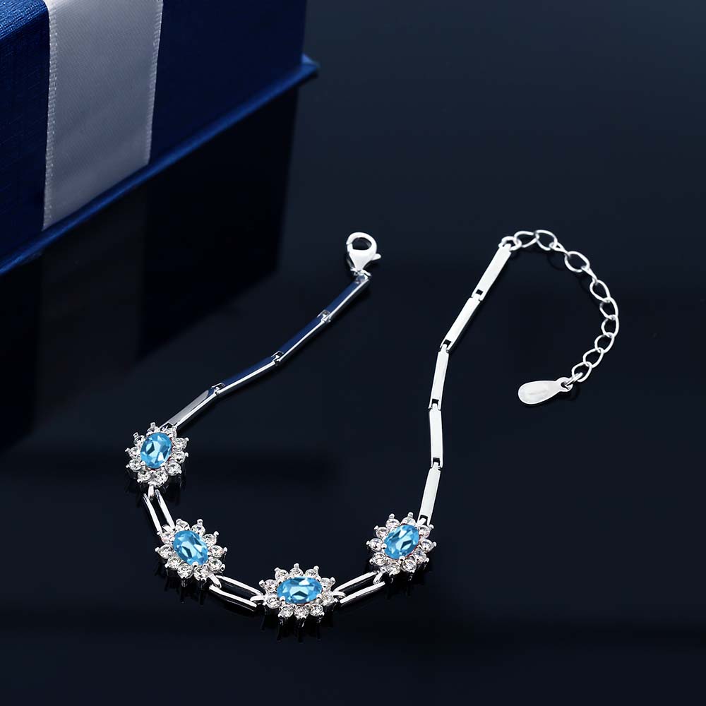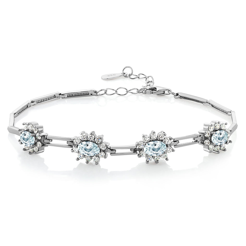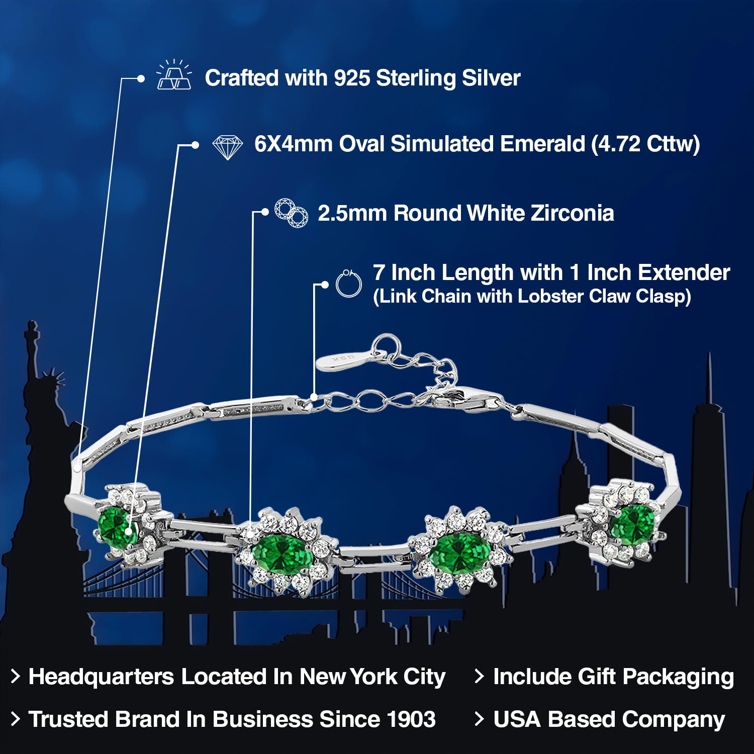 3-5 Cttw Gemstone Birthstone 4-Stone Tennis Bracelet For Women | 925 Sterling Silver | Oval 6X4MM | 7 Inch with 1 Inch Extender | Fine Jewelry Gifts for Her Mom Women Wife