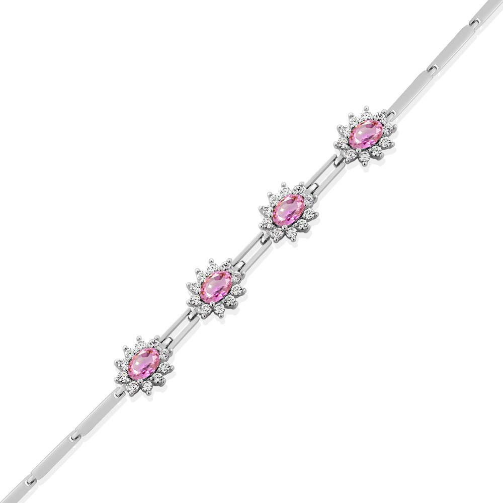 CUSTOMIZABLE GEMSTONE BRILLIANCE: This stunning bracelet showcases 6X4MM oval-shaped gemstone birthstones, personalized to reflect your choice of birthstone. The vibrant gemstones are surrounded by 2.5MM round zirconia, adding an extra layer of sparkle, making it a perfect gift for any special occasion.