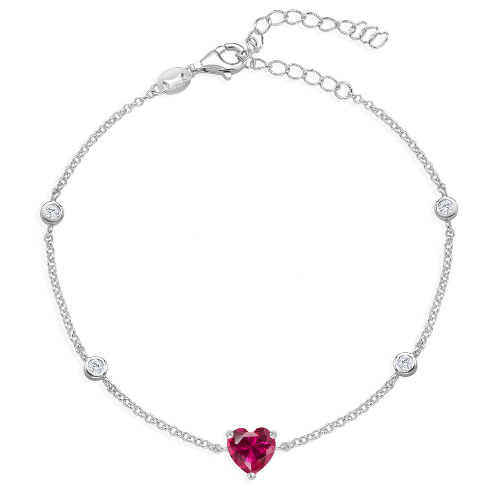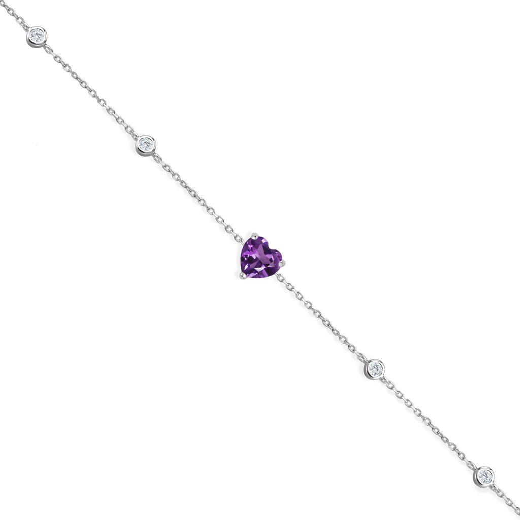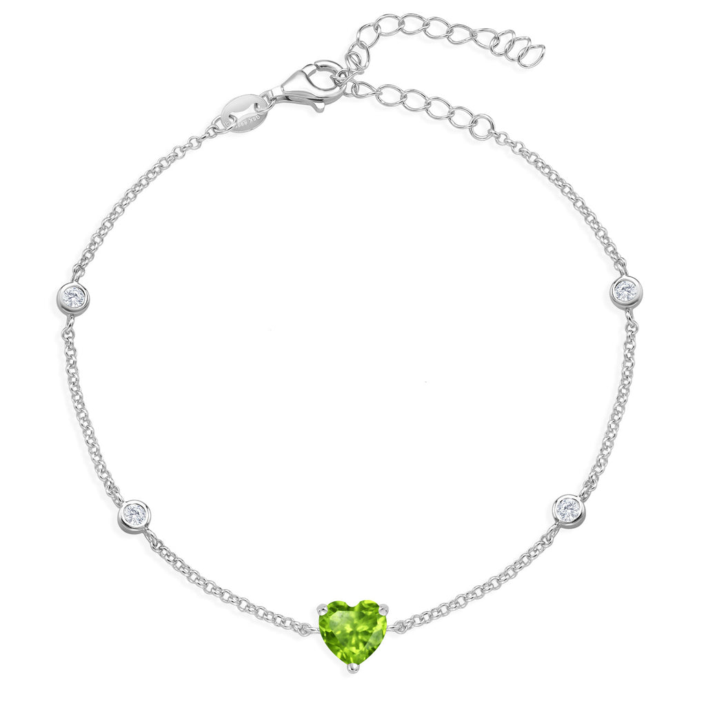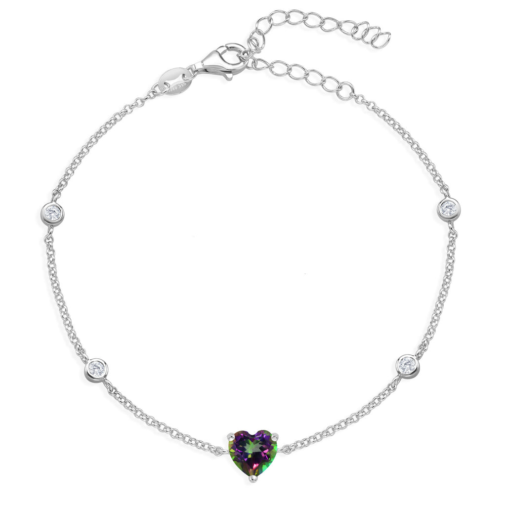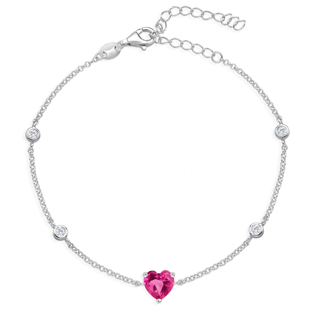 7MM Heart Shape Gemstone Birthstone and White Moissanite Bracelet For Women | 925 Sterling Silver | 7 Inch With 1.5 Inch Extender | Fine Jewelry Gifts for Her Mom Women Wife