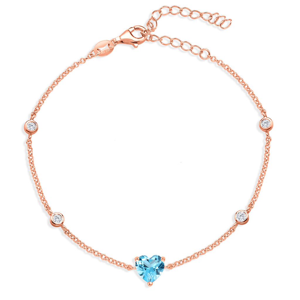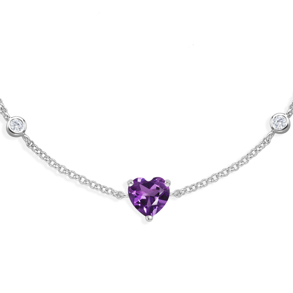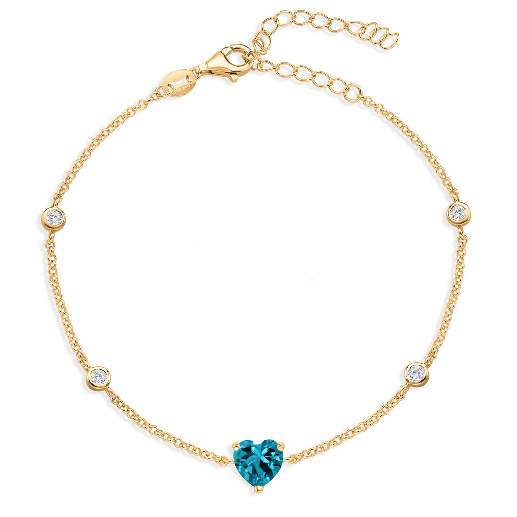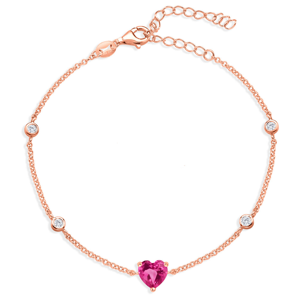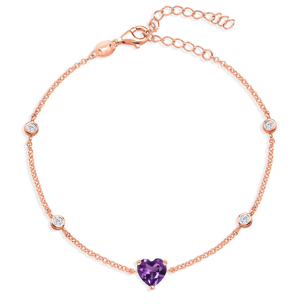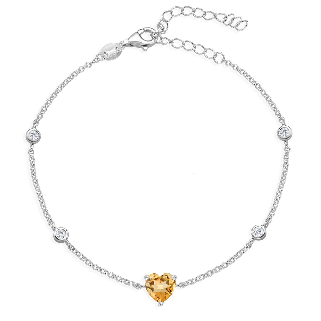 7MM Heart Shape Gemstone Birthstone and White Moissanite Bracelet For Women | 925 Sterling Silver | 7 Inch With 1.5 Inch Extender | Fine Jewelry Gifts for Her Mom Women Wife