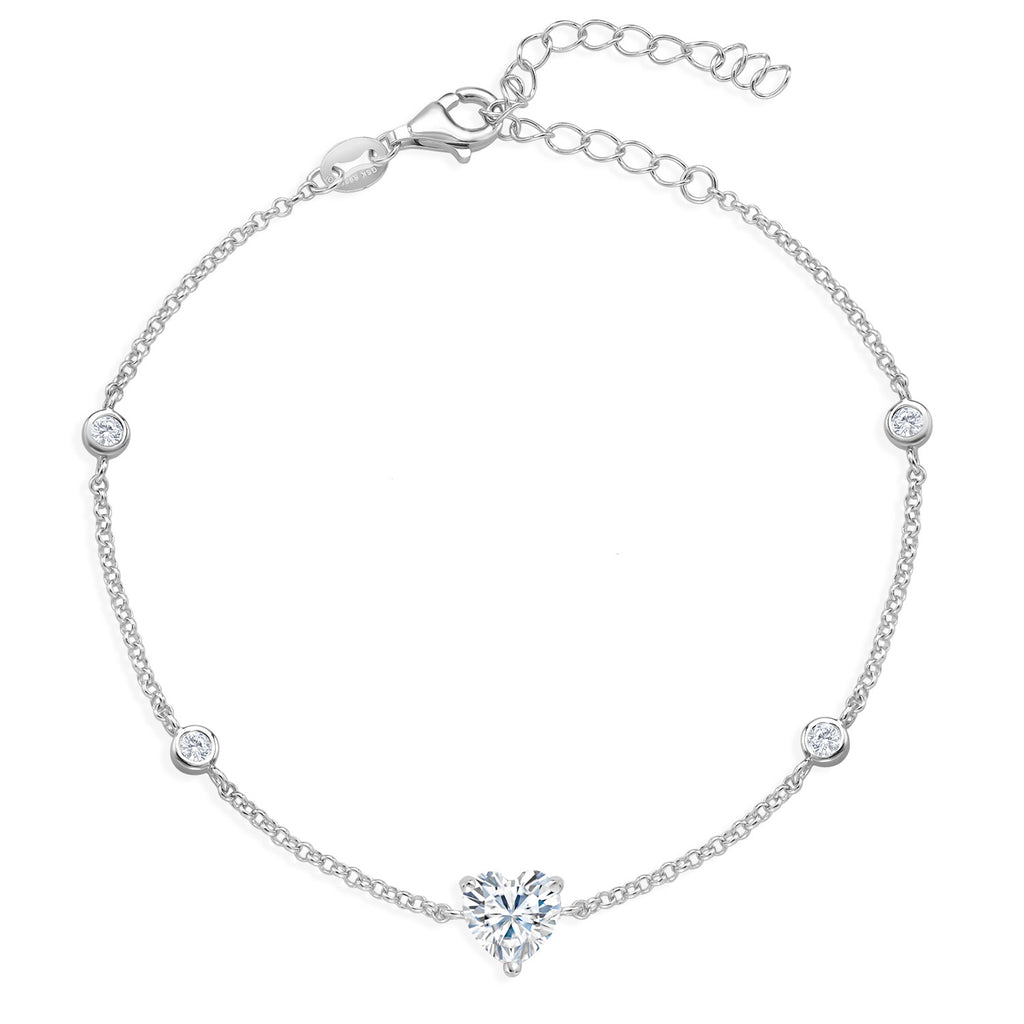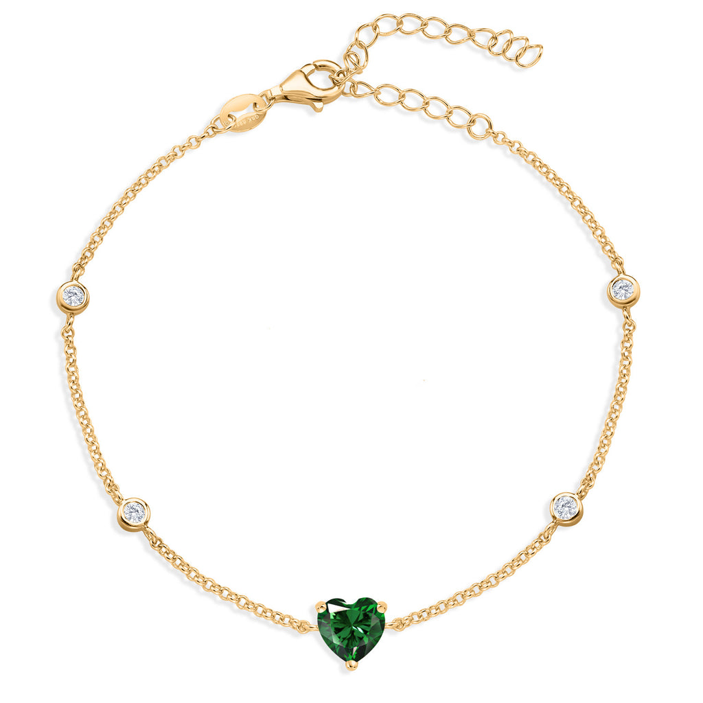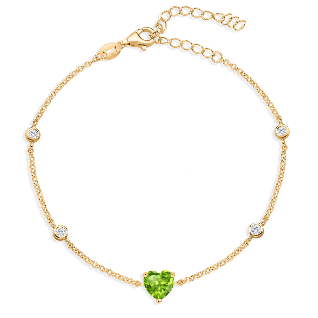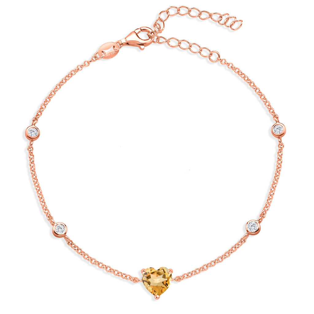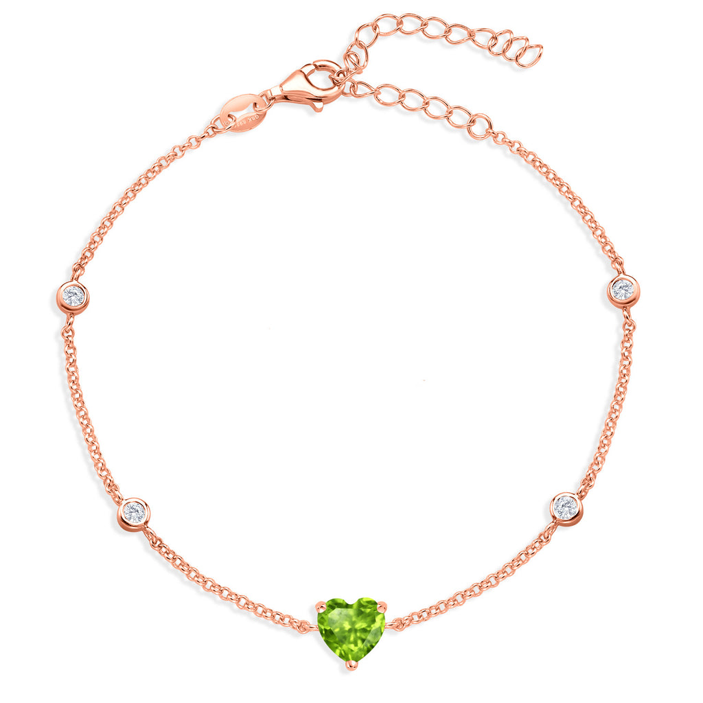 7MM Heart Shape Gemstone Birthstone and White Moissanite Bracelet For Women | 925 Sterling Silver | 7 Inch With 1.5 Inch Extender | Fine Jewelry Gifts for Her Mom Women Wife