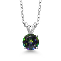Gem Stone King 7MM Round Gemstone Birthstone Solitaire Pendant Necklace For Women | 925 Sterling Silver | With 18 Inches Silver Chain | Fine Jewelry Gifts for Her Mom Women Wife