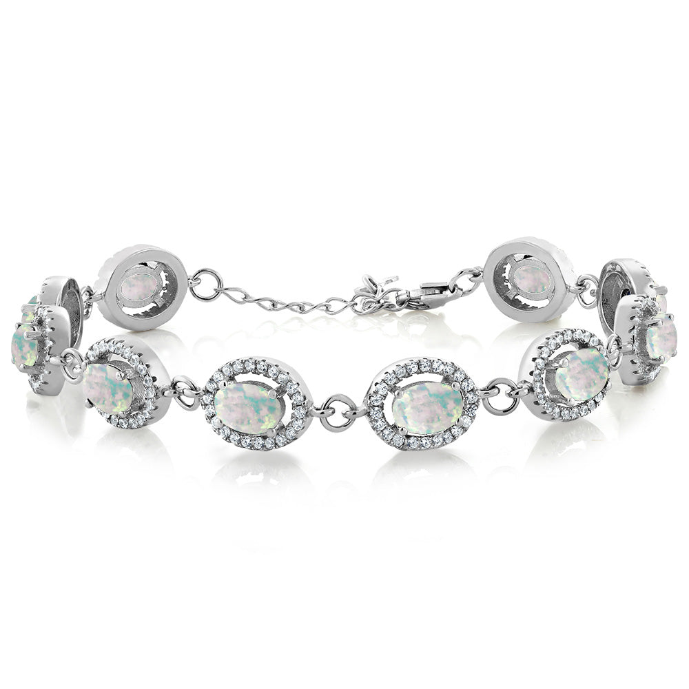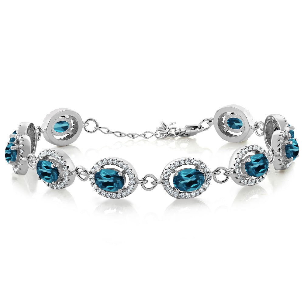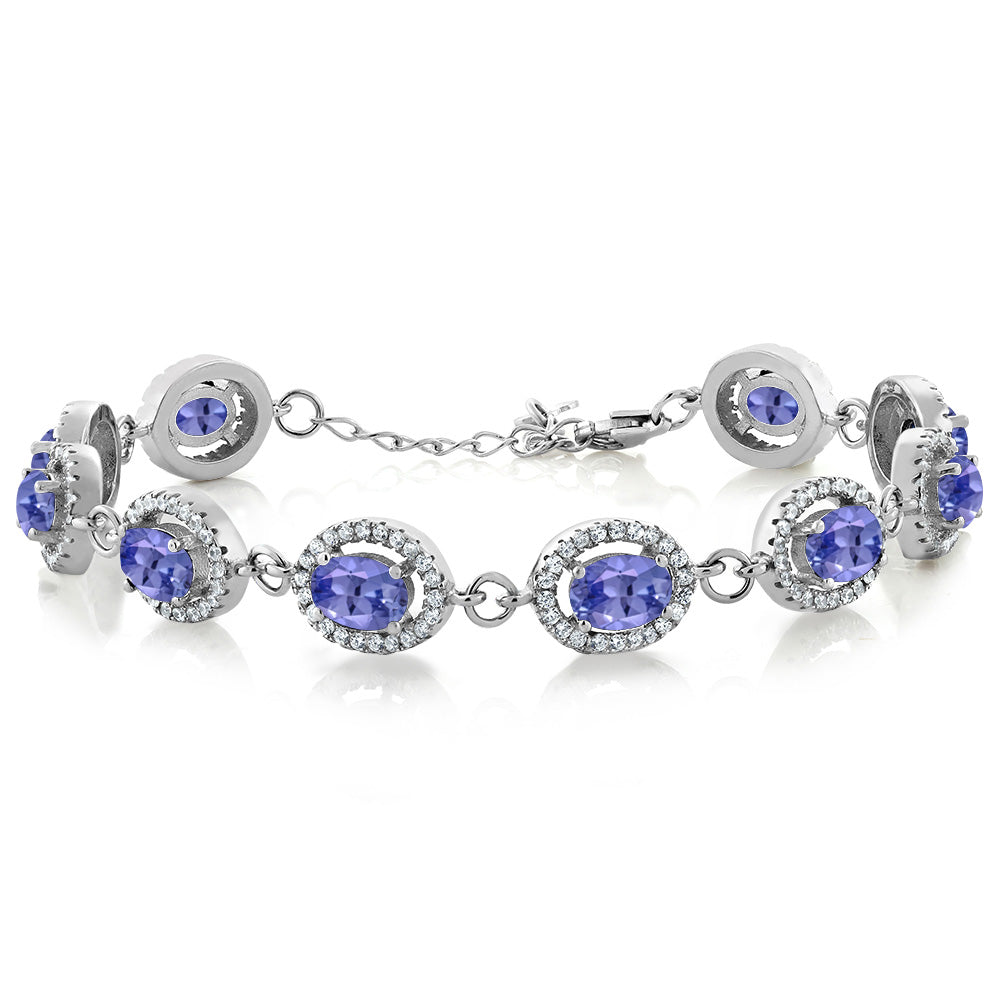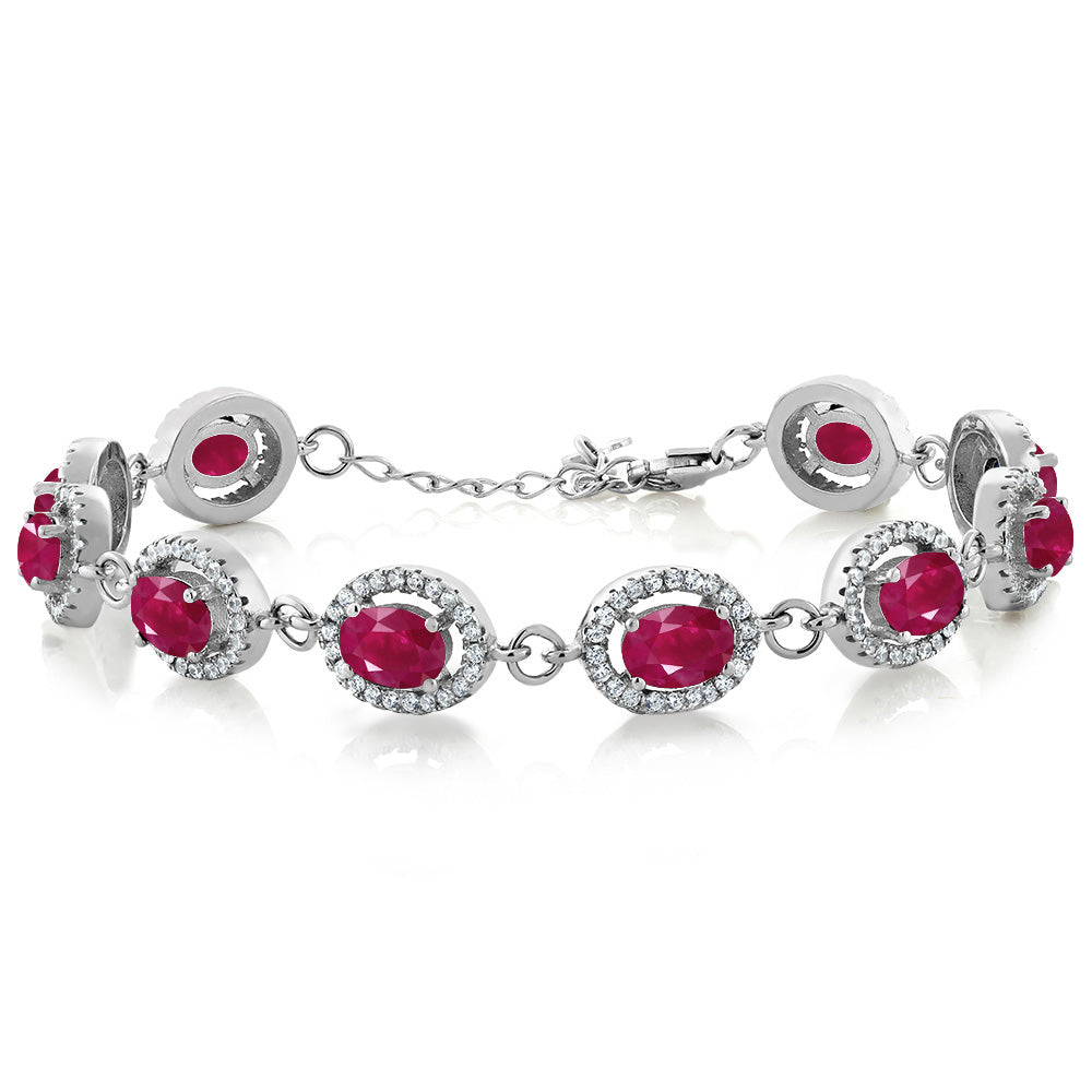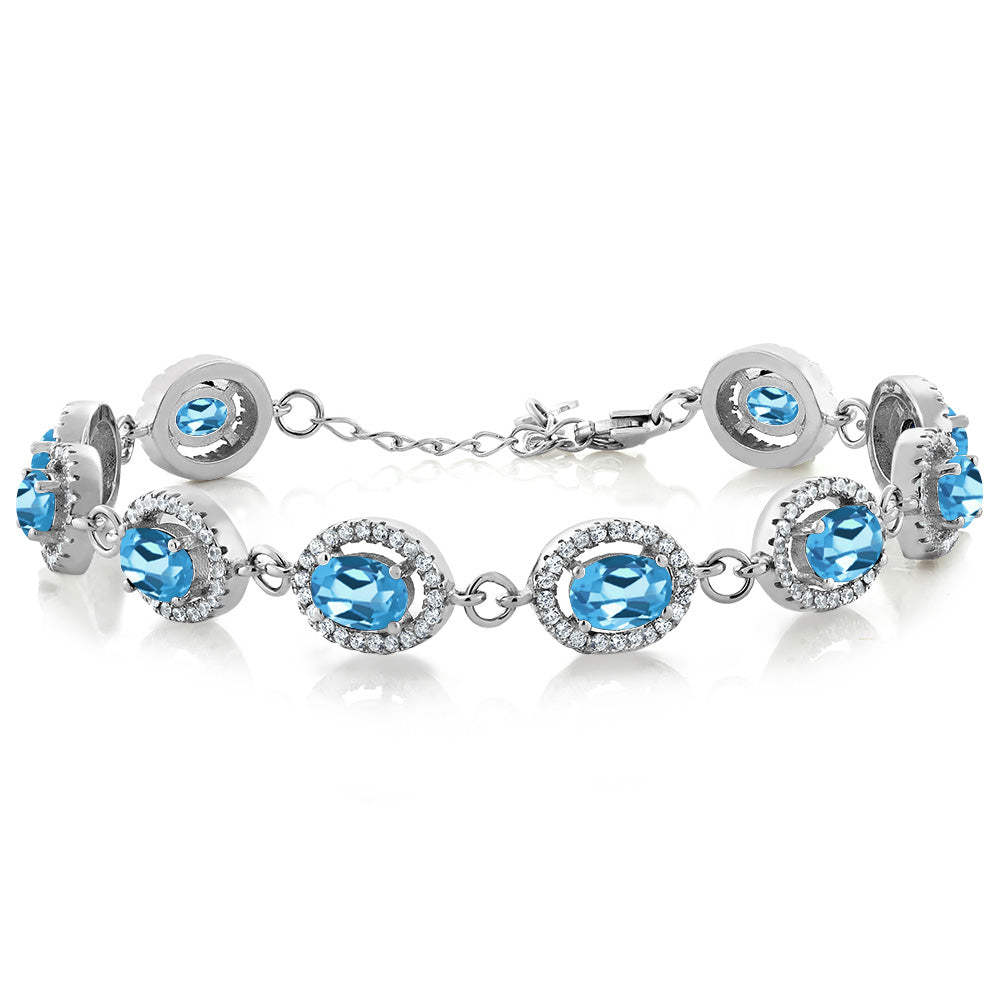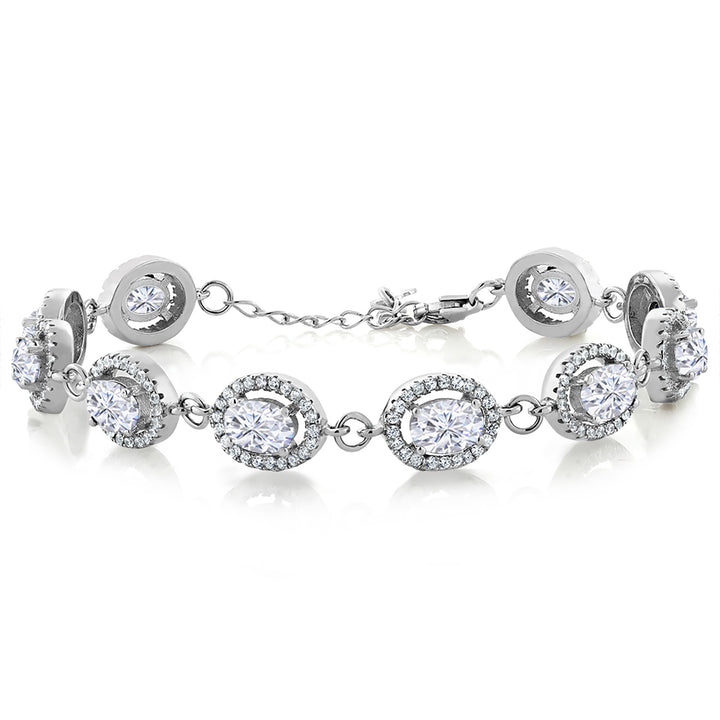 Gem Stone King 8-17 Cttw Oval Halo Statement Tennis Bracelet For Women | 925 Sterling Silver | 7X5MM Oval Gemstone Birthstone | Size 7.5 Inch | Fine Jewelry Gifts for Her Mom Women Wife